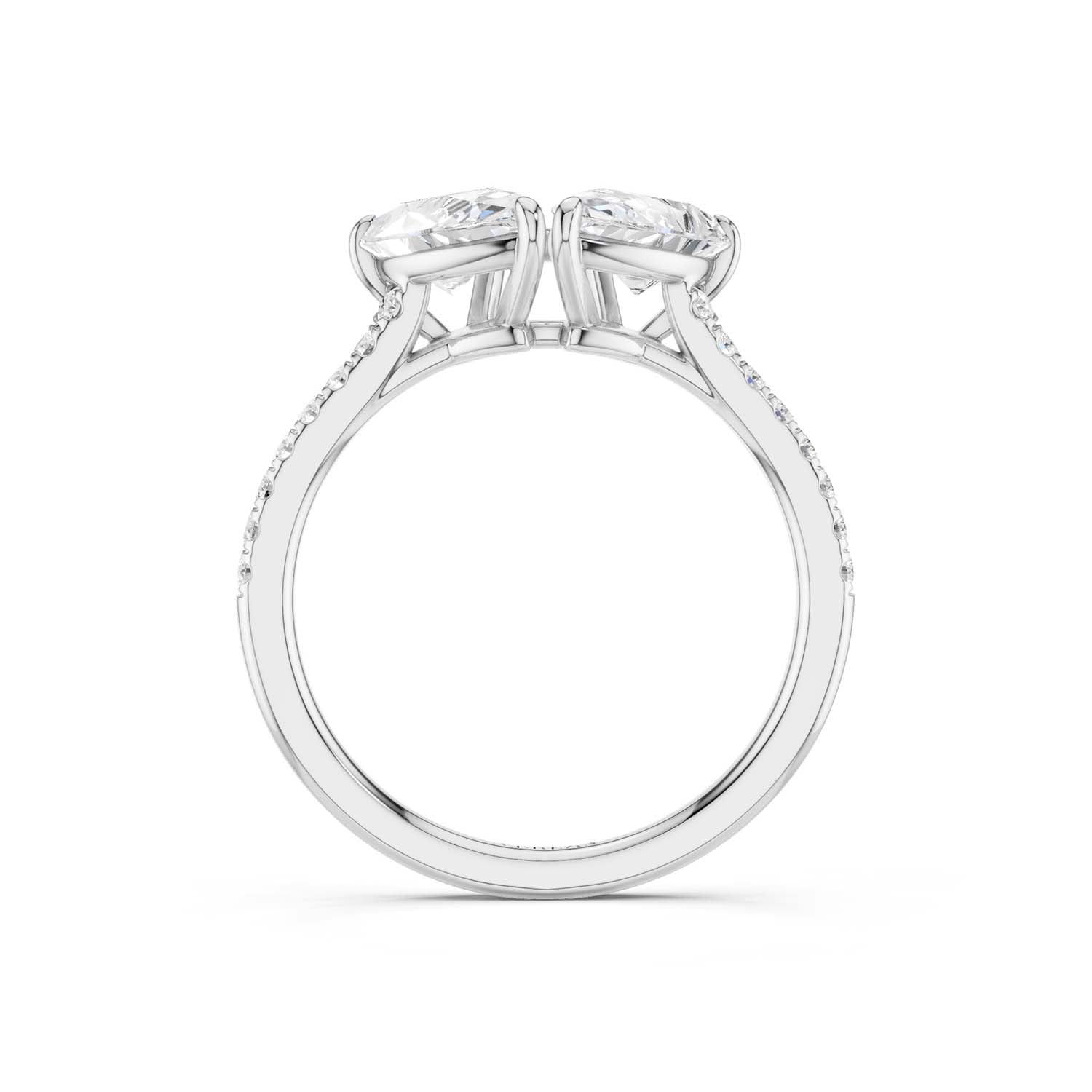 This Toi et Moi r ing beautifully encapsulates the essence of two souls intertwined in an inseparable embrace. Gracefully designed, this ring features two beautiful pear-shaped diamonds that come together to form a heart shape and is delicately set in a band of lustrous round diamonds.