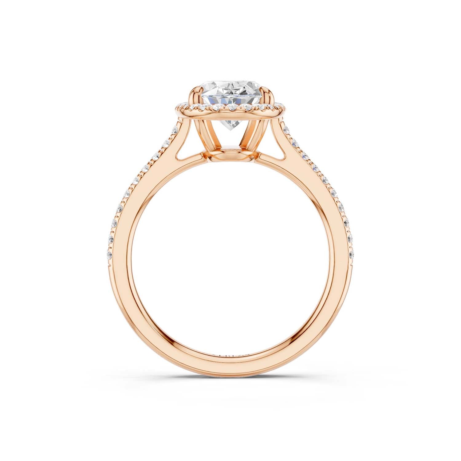 This lab-grown diamond halo ring is a testament to exquisite craftsmanship with carefully placed pave diamonds around the ellipse-cut center stone. With remarkable sparkle and shine, this ring makes for an elegant choice for its modern appeal.