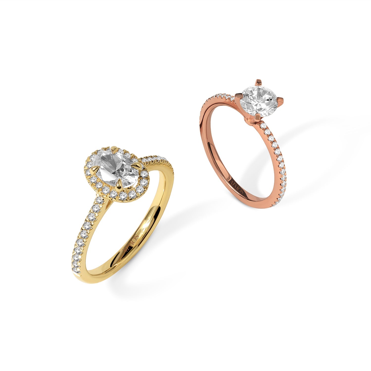 This lab-grown diamond halo ring is a testament to exquisite craftsmanship with carefully placed pave diamonds around the ellipse-cut center stone. With remarkable sparkle and shine, this ring makes for an elegant choice for its modern appeal.