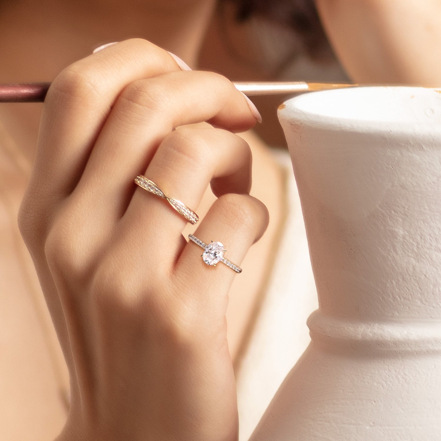 Read MoreThis dainty lab-created oval diamond engagement ring features lab-grown diamonds with sheer sparkle that extends halfway around the ring. The prong-set center diamond is complemented by glittering micro pave diamonds along the shank, giving it an elegant, chic look.