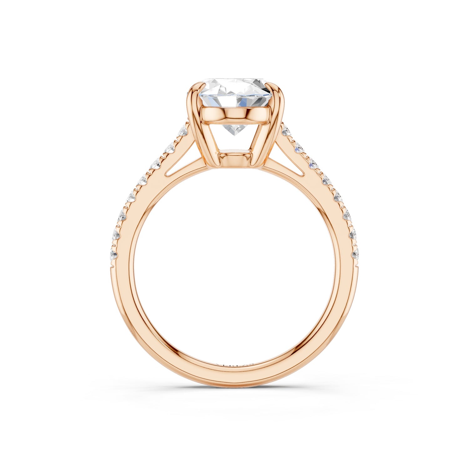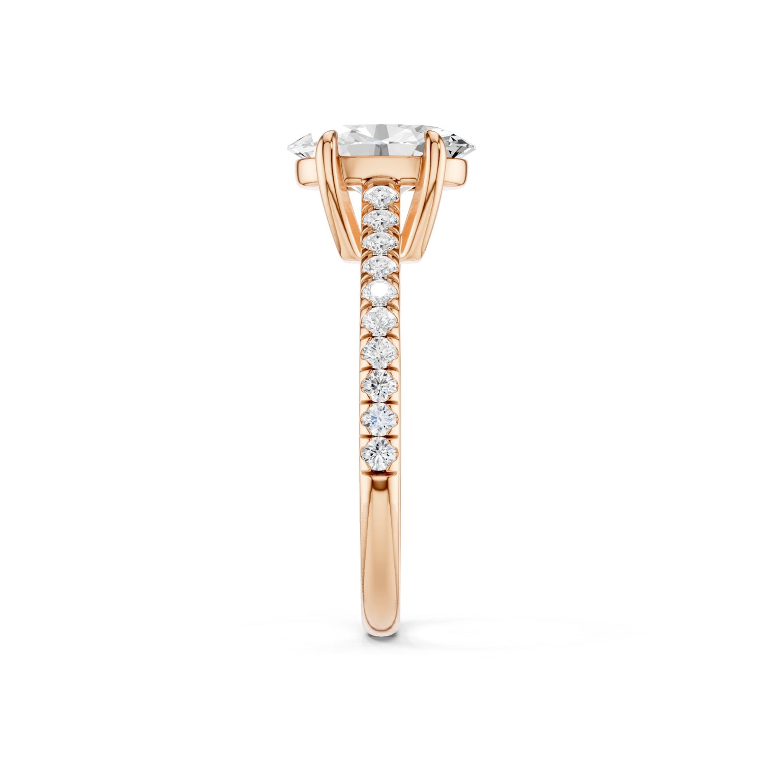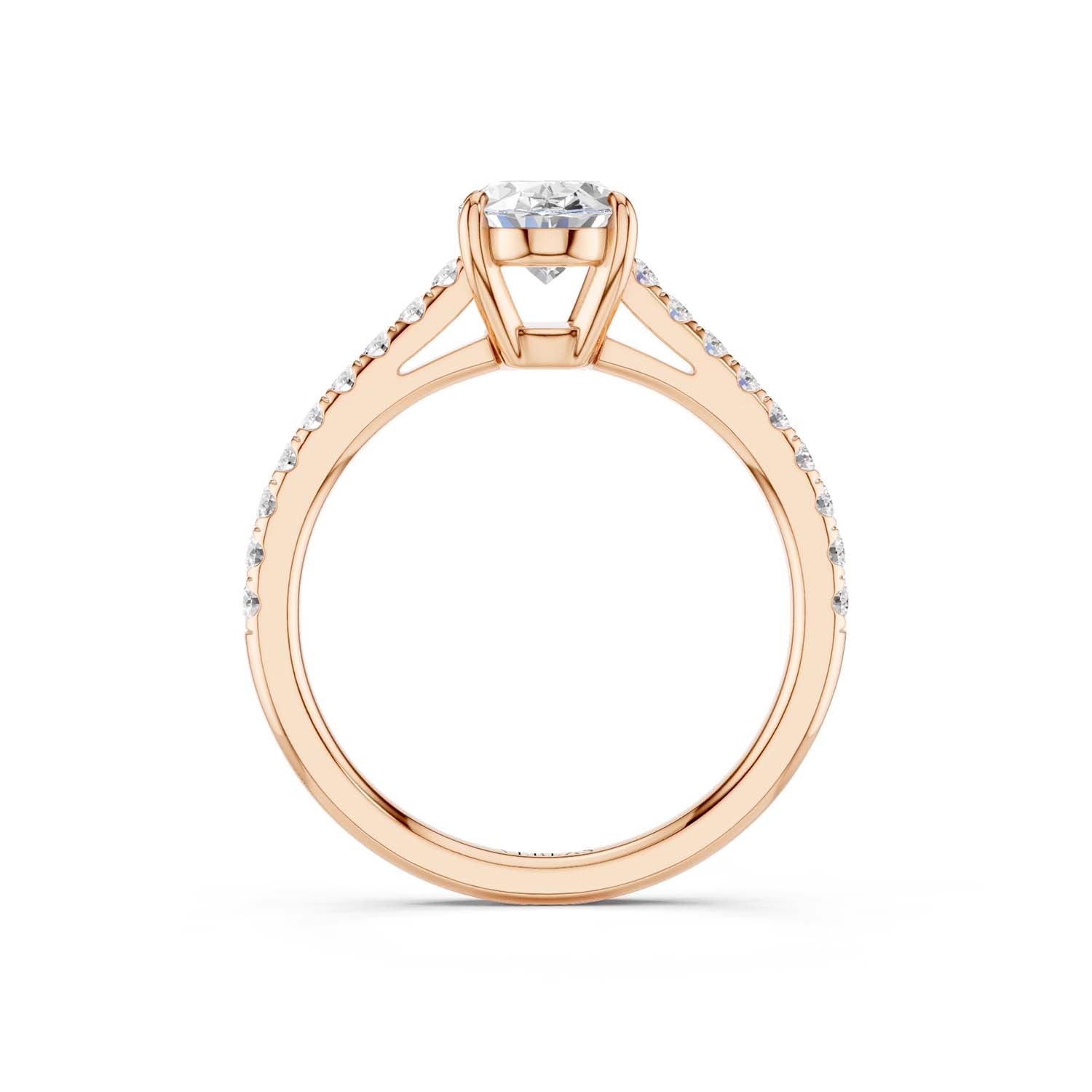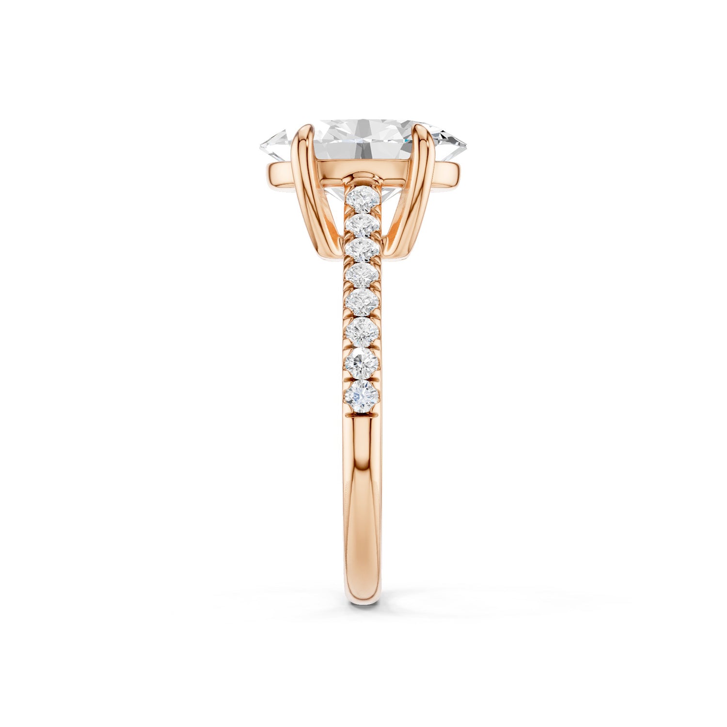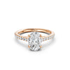 This dainty lab-created oval diamond engagement ring features lab-grown diamonds with sheer sparkle that extends halfway around the ring. The prong-set center diamond is complemented by glittering micro pave diamonds along the shank, giving it an elegant, chic look.