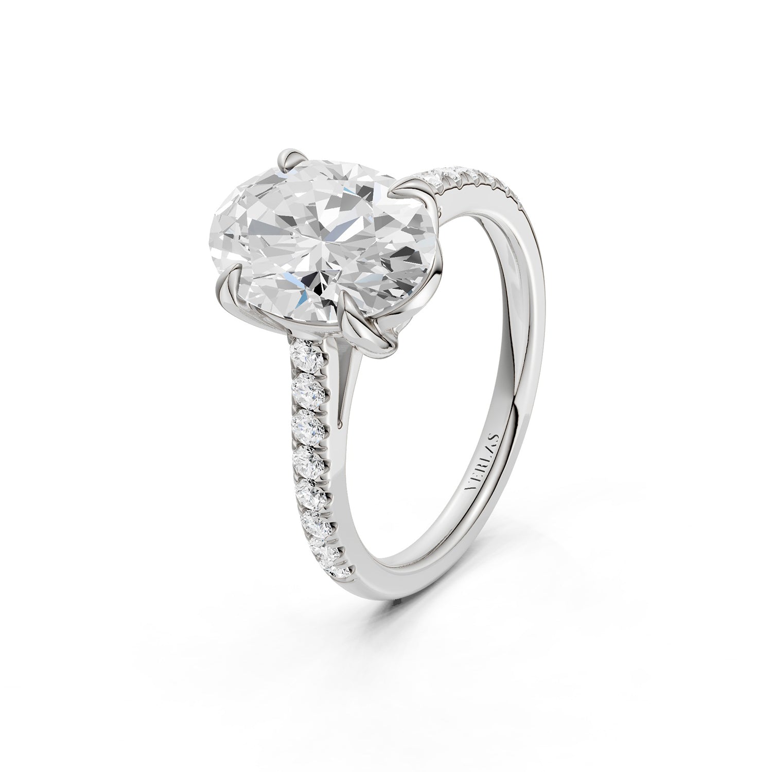 Read MoreThis dainty lab-created oval diamond engagement ring features lab-grown diamonds with sheer sparkle that extends halfway around the ring. The prong-set center diamond is complemented by glittering micro pave diamonds along the shank, giving it an elegant, chic look.