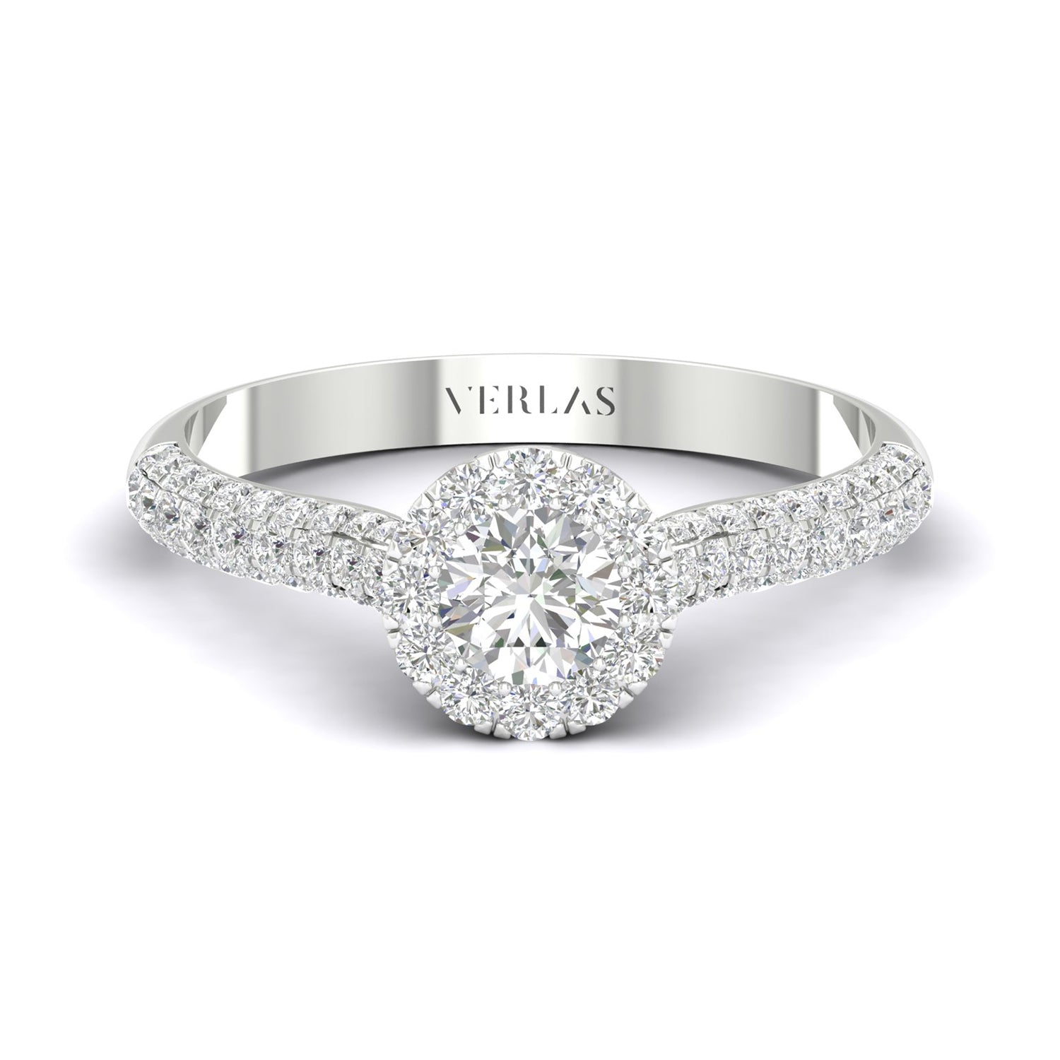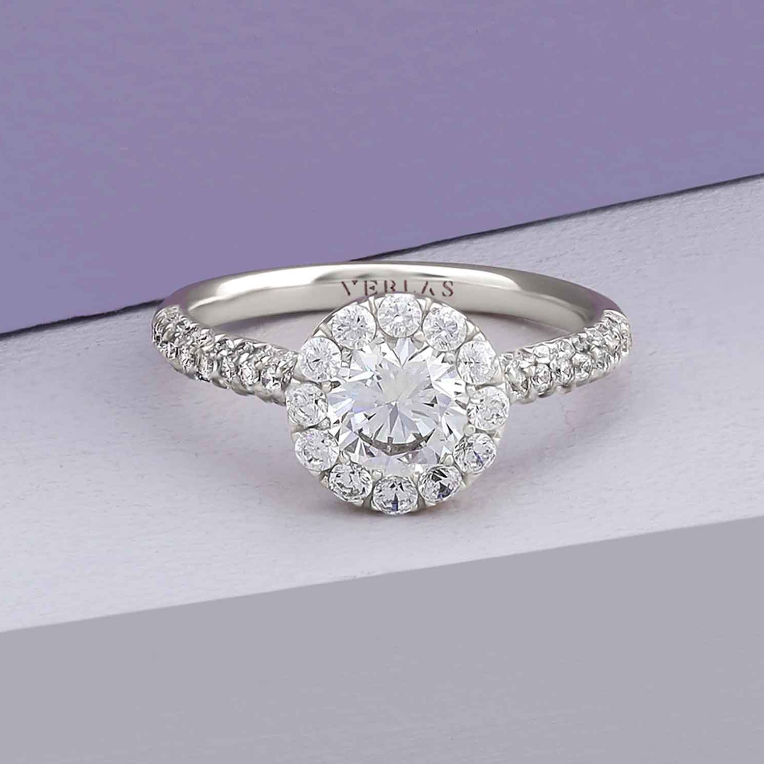 This Embellished Iconic Round Halo Ring showcases a stunning round-cut diamond, embraced by a mesmerizing halo of glistening diamonds. The band of this extraordinary diamond engagement ring is a work of art in itself, embellished with three rows of meticulously set diamond accents. With every glance, it will remind you of the love story you are building together—a story that will stand the test of time.