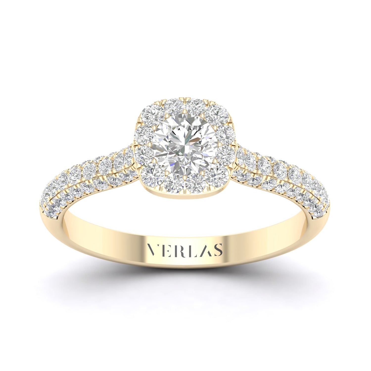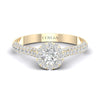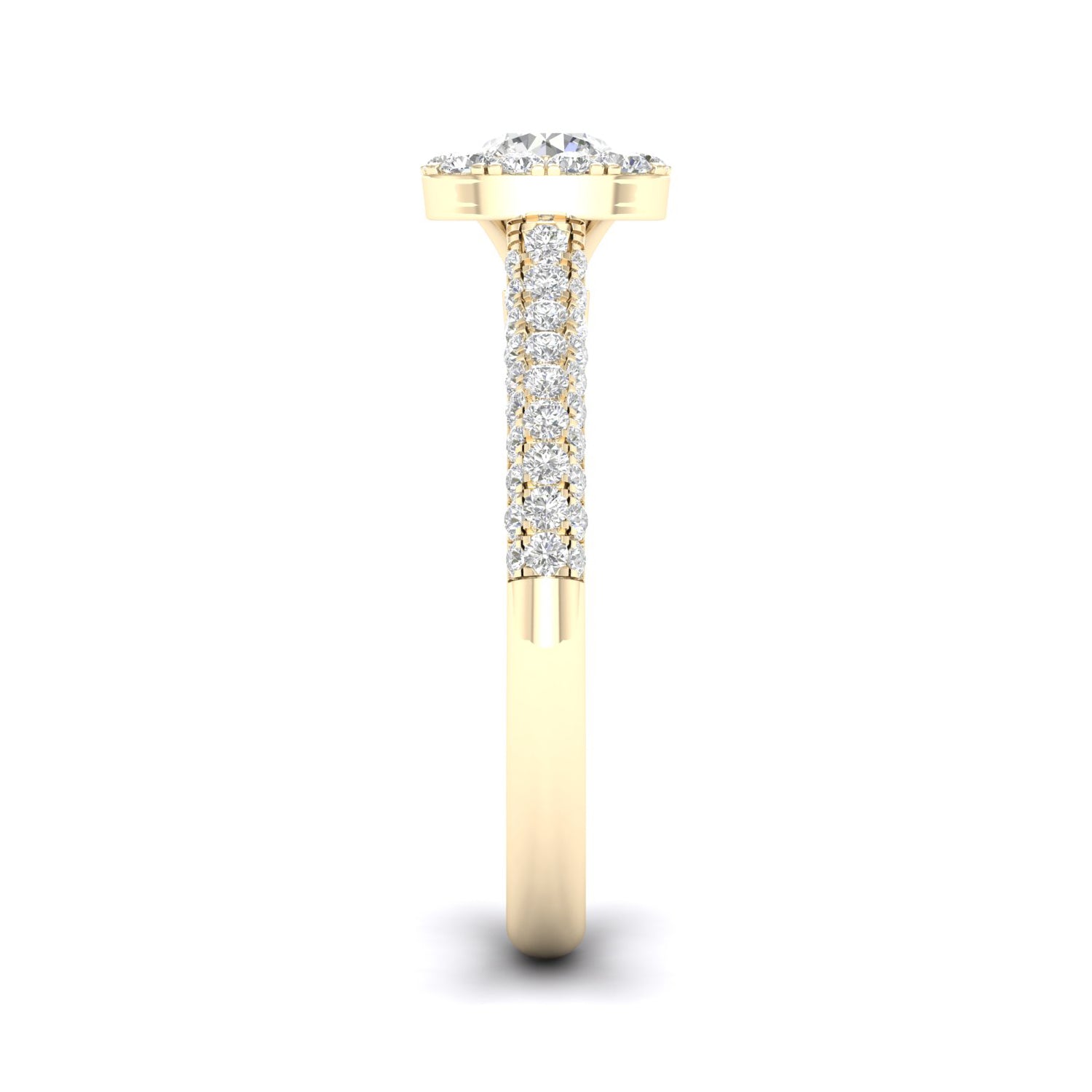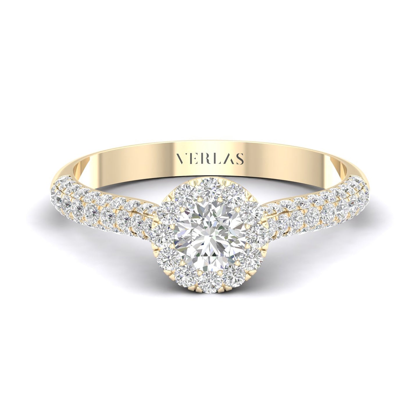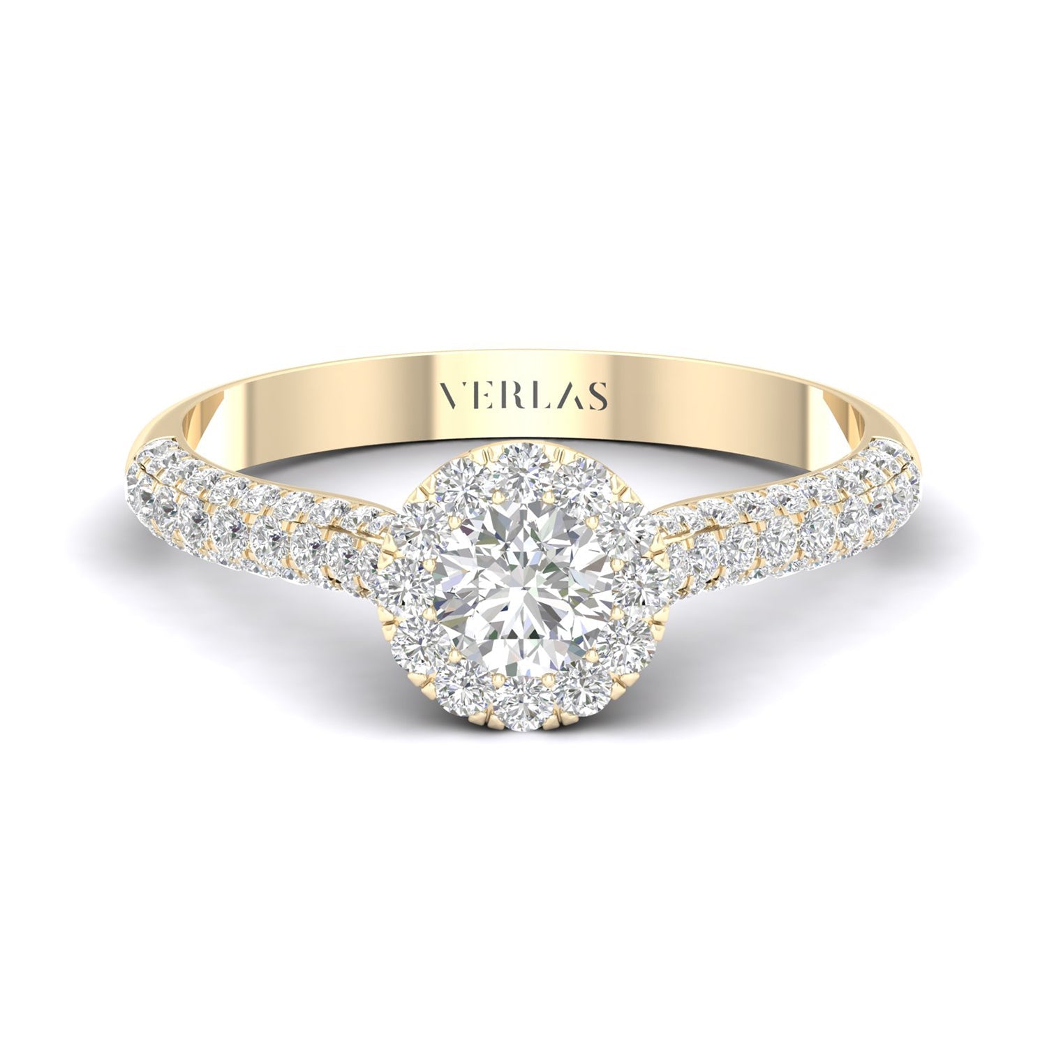 This Embellished Iconic Round Halo Ring showcases a stunning round-cut diamond, embraced by a mesmerizing halo of glistening diamonds. The band of this extraordinary diamond engagement ring is a work of art in itself, embellished with three rows of meticulously set diamond accents. With every glance, it will remind you of the love story you are building together—a story that will stand the test of time.