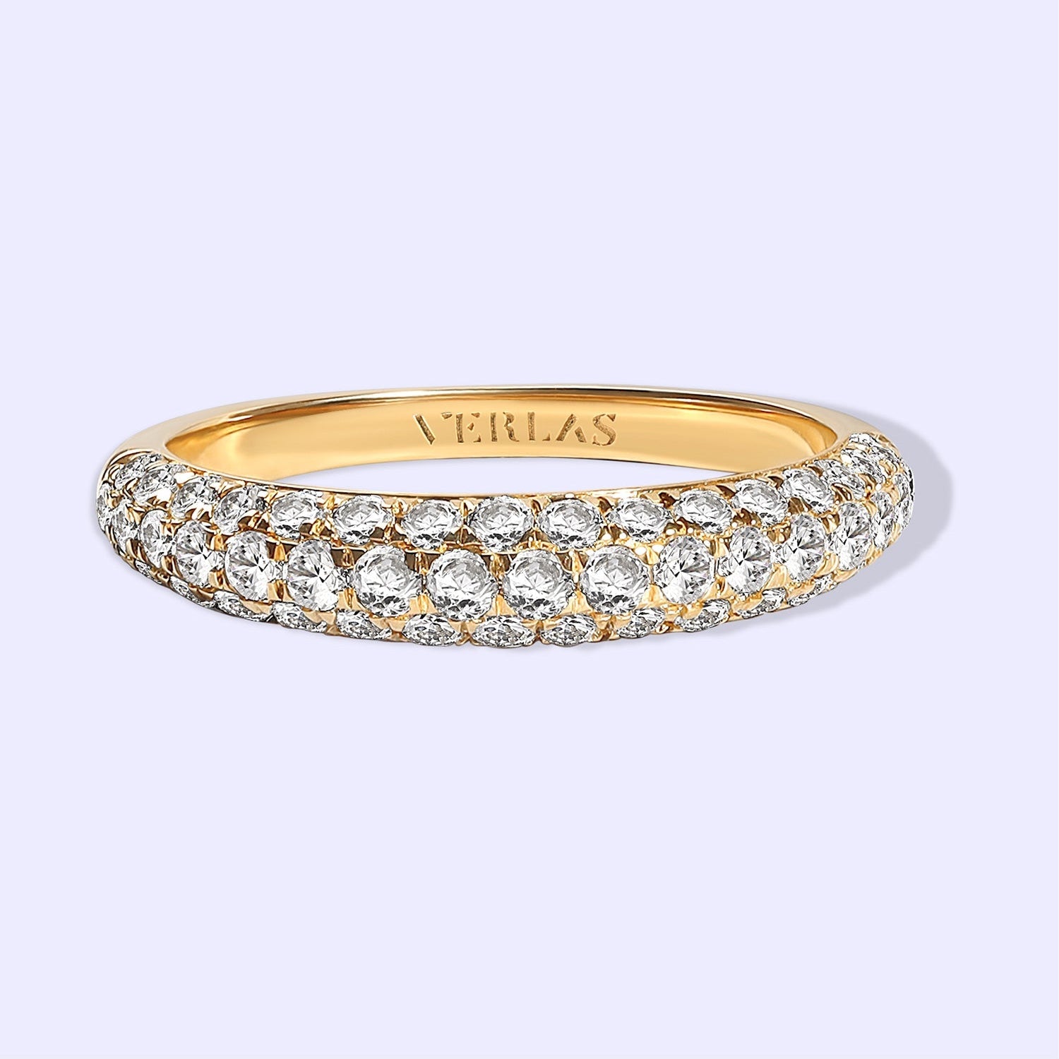 The Embellished Lace Band is not just a ring but a symbol of elegance and refinement. This ring features three rows of stunning round brilliant diamonds that sparkle with every movement. Whether you wear it as an engagement ring, a wedding band, or a fashion accessory, this ring will make you feel like royalty.