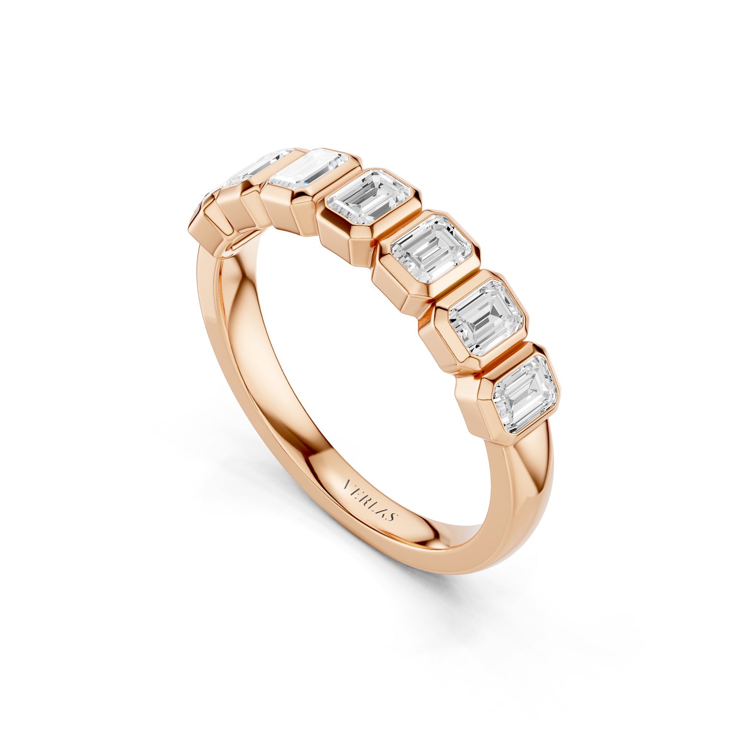 Sleek elegance with a modern edge—this Emerald Bezel-Set Half-Eternity Diamond Band presents lab-grown emerald-cut diamonds beautifully encased in smooth bezels across half the band—perfect as a wedding band, stacking design, or an incredibly c. . . Read More