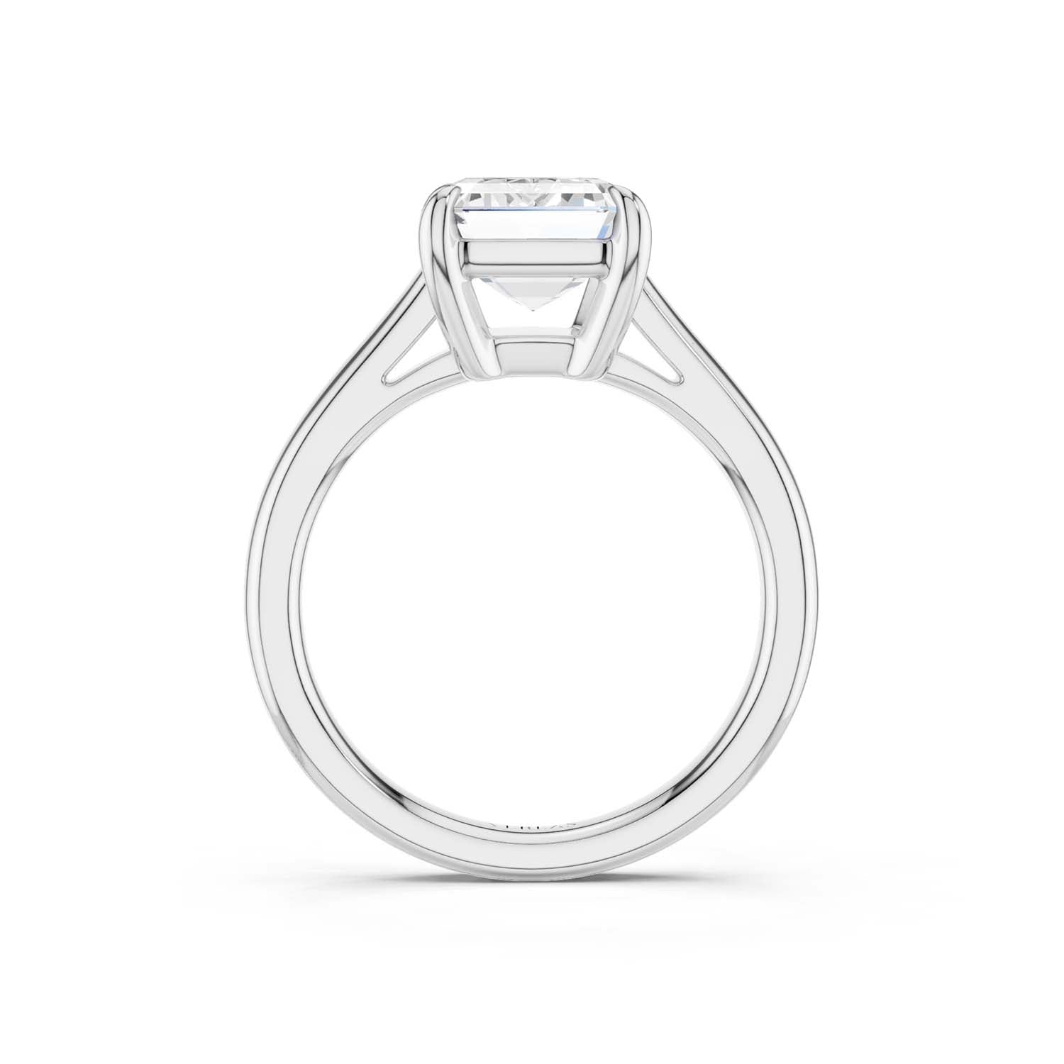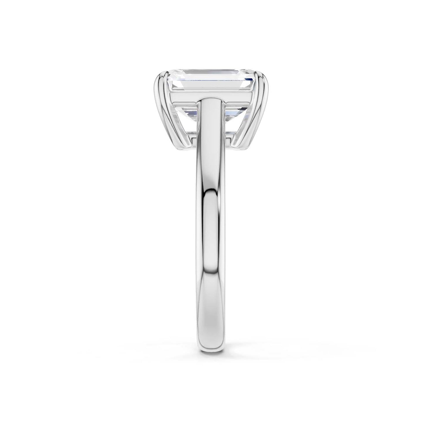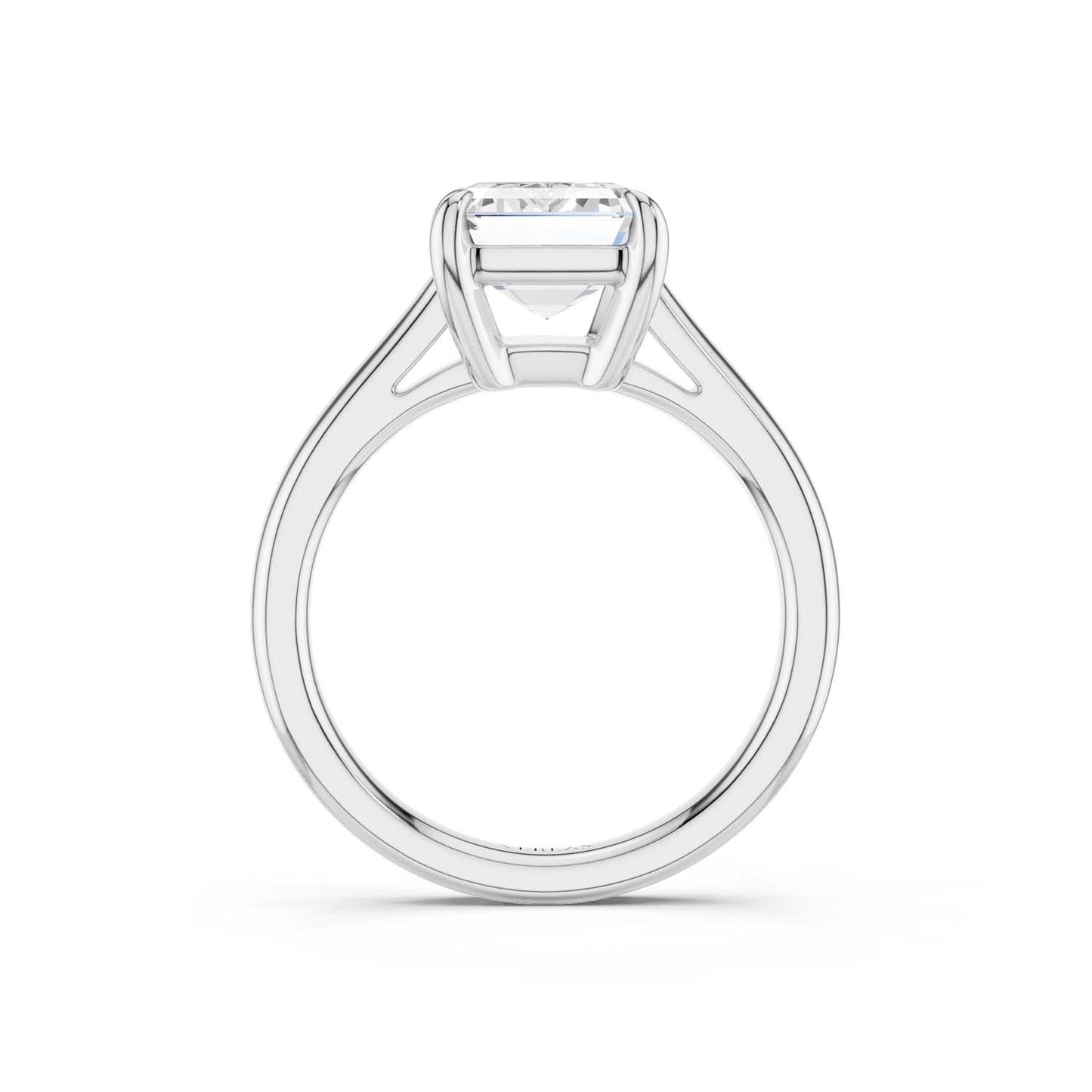 This elegant solitaire ring features an open basket with claw prongs that cradle the center emerald shape lab-grown diamond solitaire. The simple yet classic band style adds to the sleek, contemporary look of the design.