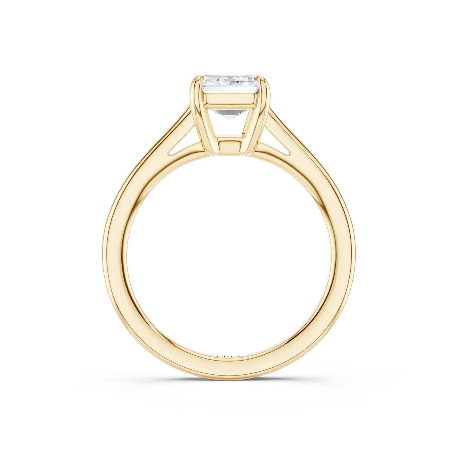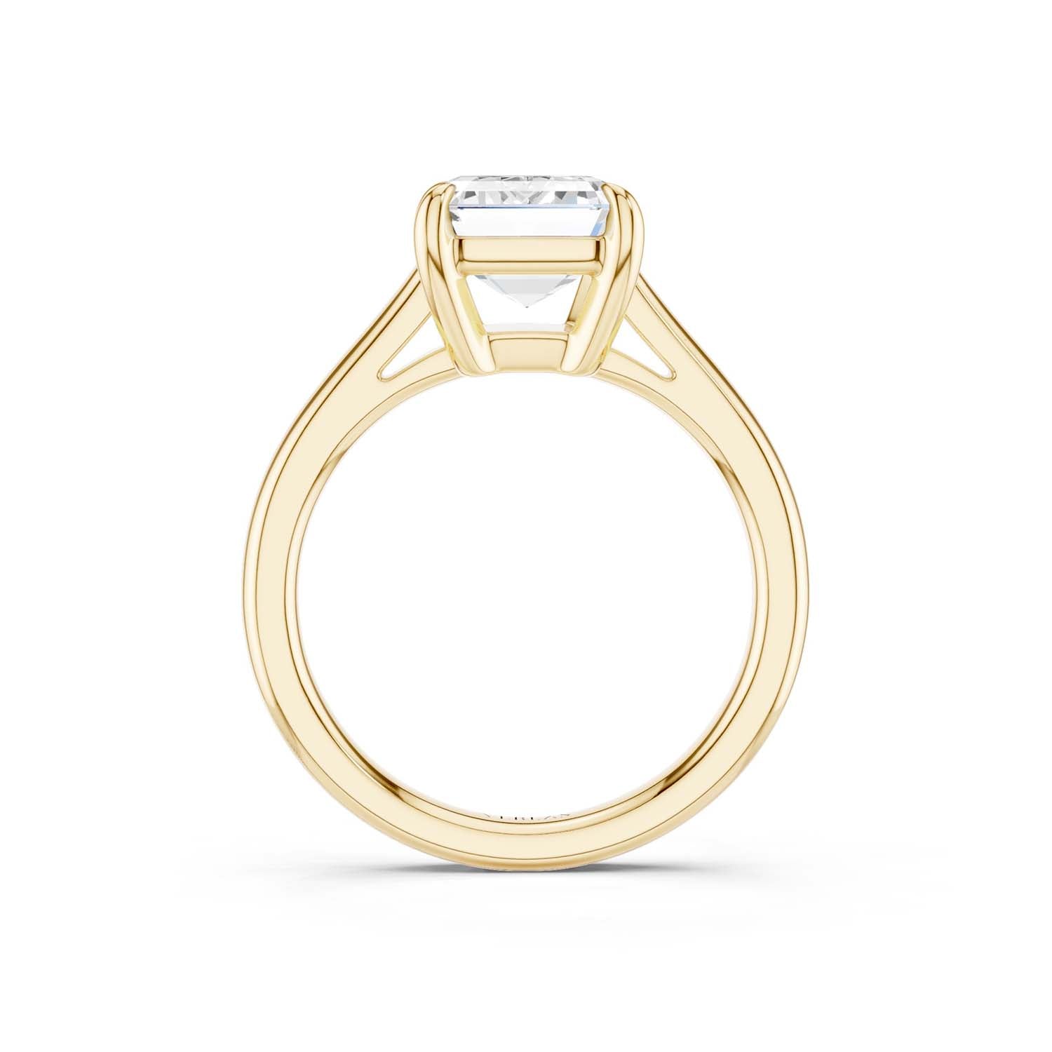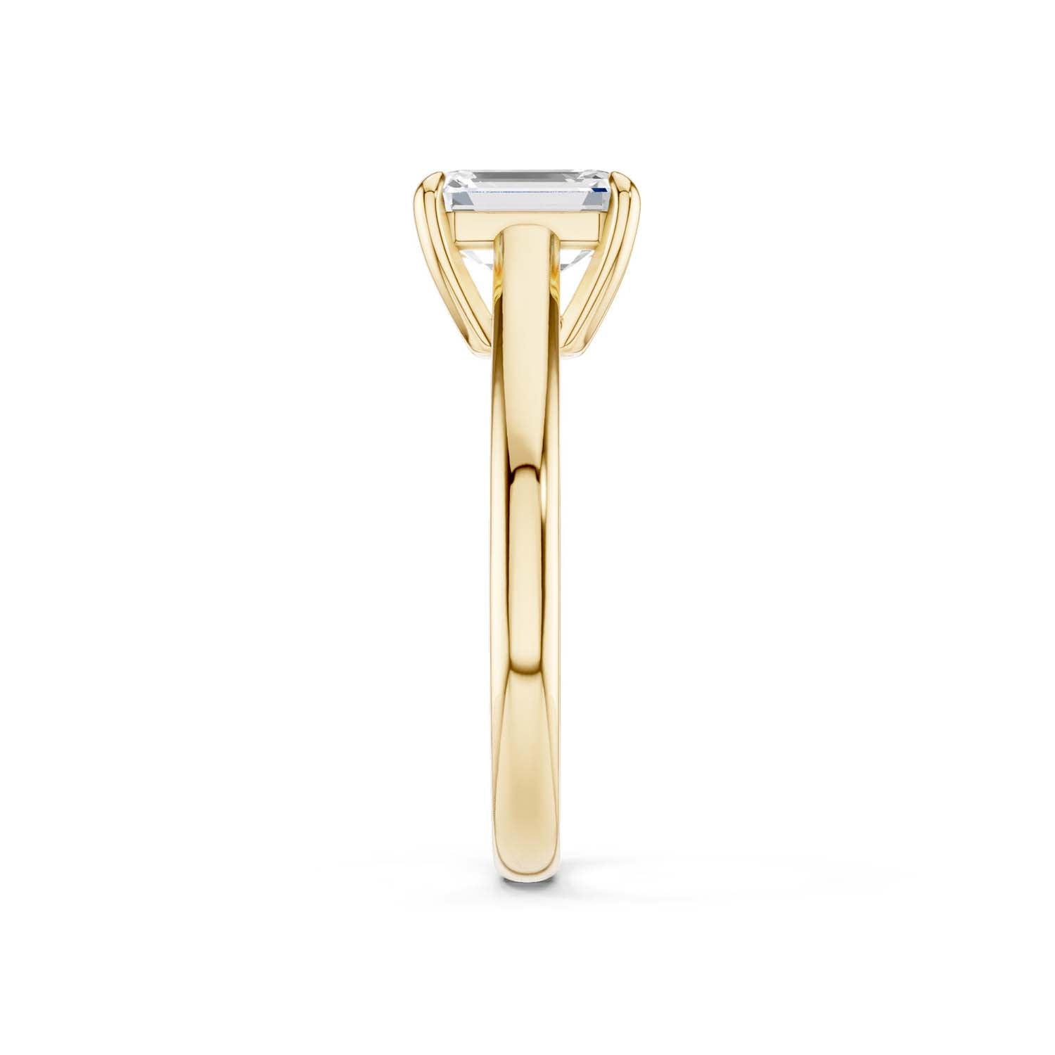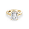 This elegant solitaire ring features an open basket with claw prongs that cradle the center emerald shape lab-grown diamond solitaire. The simple yet classic band style adds to the sleek, contemporary look of the design.