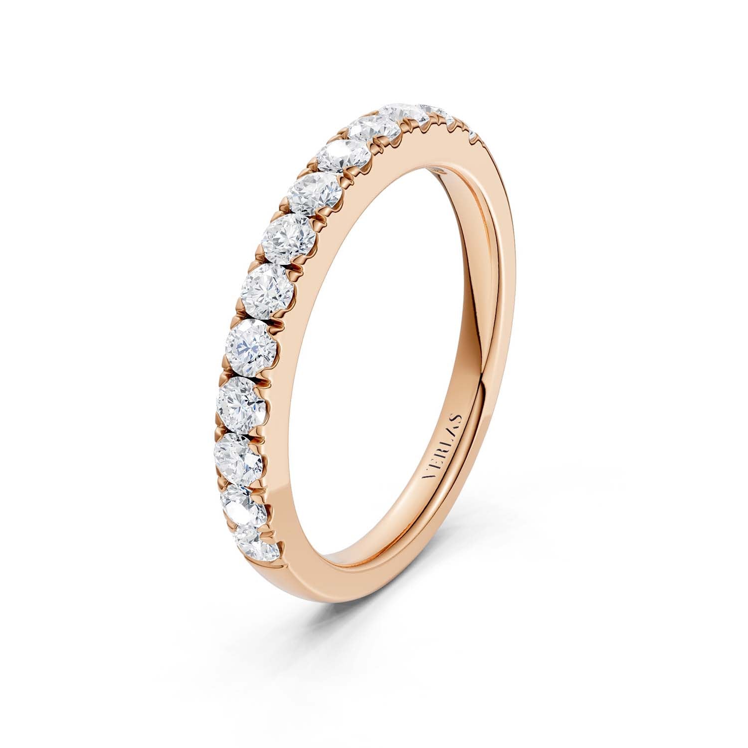 Clarity, one of the “Four C’s,” measures a diamond’s naturally-occuring imperfections (also called ‘inclusions’ or ‘flaws.’). Per gemological standards, diamond clarities are categorized as Flawless (F), Internally Flawless (IF), Very Very Slightly included (VVS), Very Slightly included (VS) and Included (I). Under 10x magnification, Flawless diamonds do not show any inclusions. Higher-clarity diamonds are rarer and pricier. However, many types of inclusions are invisible even to the naked eye, not to mention they give natural diamonds their unique character. Verlas strikes a balance between clarity and price point which is why we offer hand-cut VS and SI clarity diamonds certified by IGI. You can always contact Verlas Concierge for a different diamond clarity on your favorite Verlas designs.