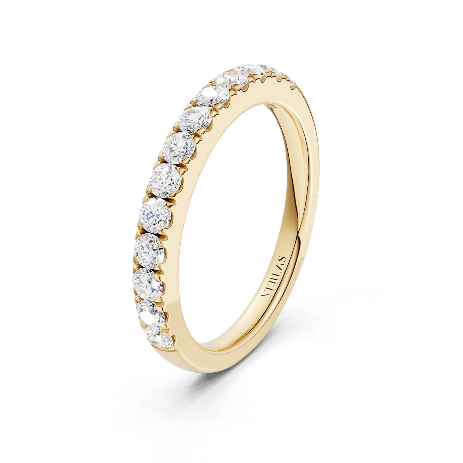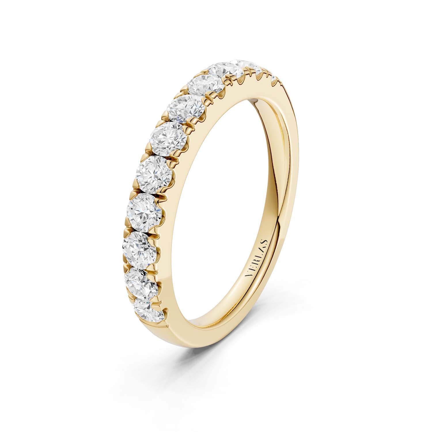 Clarity, one of the “Four C’s,” measures a diamond’s naturally-occuring imperfections (also called ‘inclusions’ or ‘flaws.’). Per gemological standards, diamond clarities are categorized as Flawless (F), Internally Flawless (IF), Very Very Slightly included (VVS), Very Slightly included (VS) and Included (I). Under 10x magnification, Flawless diamonds do not show any inclusions. Higher-clarity diamonds are rarer and pricier. However, many types of inclusions are invisible even to the naked eye, not to mention they give natural diamonds their unique character. Verlas strikes a balance between clarity and price point which is why we offer hand-cut VS and SI clarity diamonds certified by IGI. You can always contact Verlas Concierge for a different diamond clarity on your favorite Verlas designs.