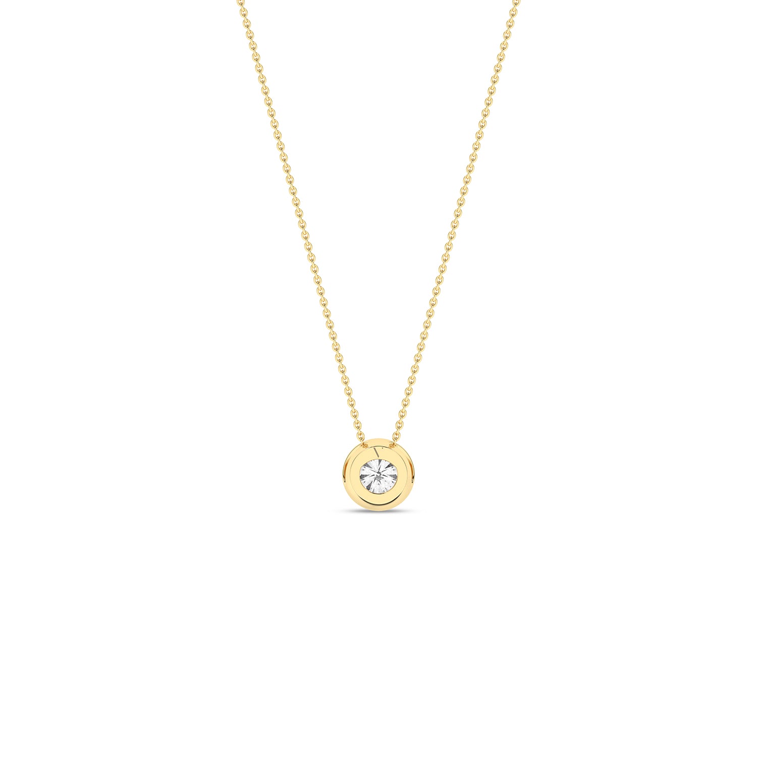Just as stars gather in galaxies, this Encompassing Round Necklace brings together radiant elements in harmonious convergence. The round pendant, a representation of wholeness, cradles the precious diamonds. This piece embodies the artistry of connection, inviting you to wear a universe of stories.
