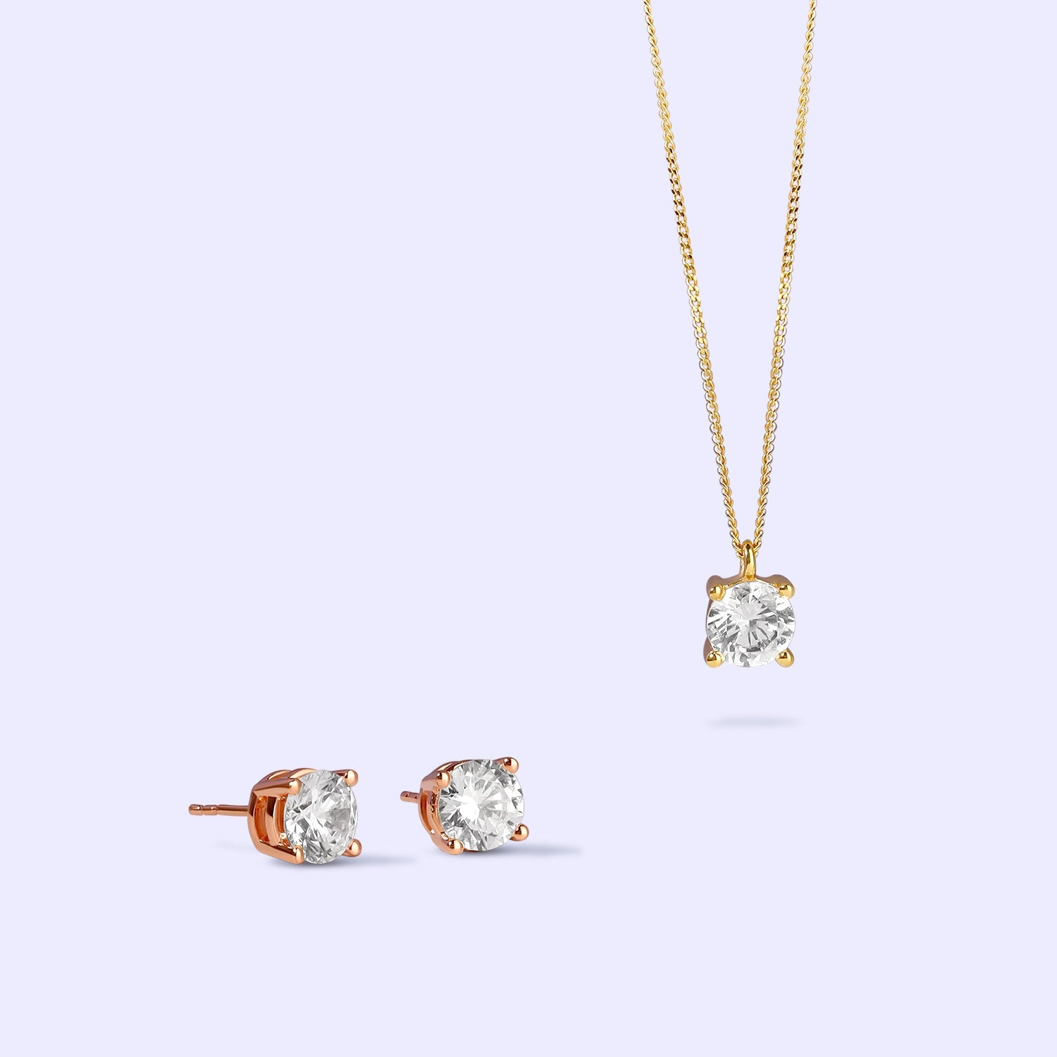 Beautifully crafted in 14K gold, Solitaire & Round Diamonds, this dynamic diamond jewelry set features a Round solitaire pendant necklace and round solitaire studs, making it an excellent choice for gifting or your classic everyday look.