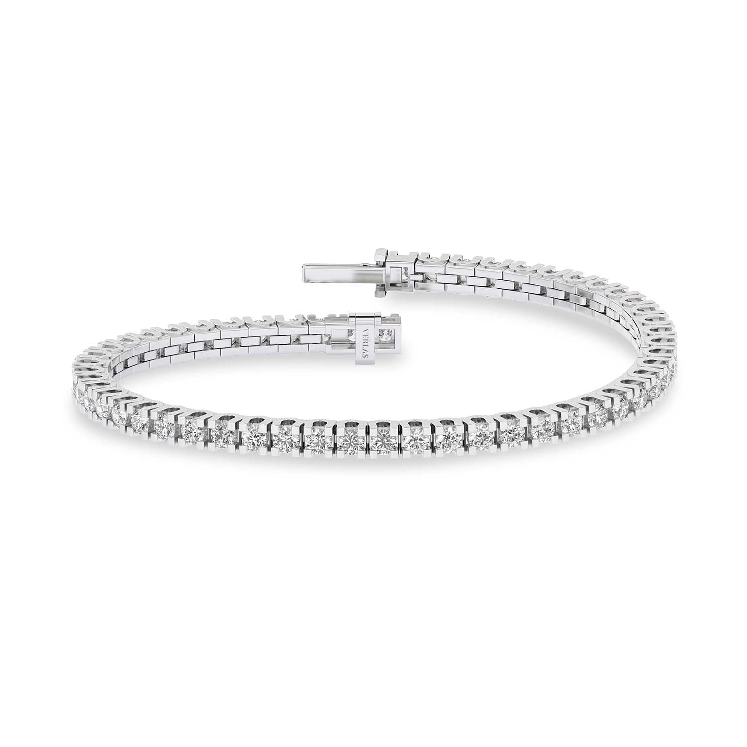 The Essential Tennis Bracelet exemplifies the magnificence of your beauty. Its string of glistening diamonds radiates luxury from every angle, and its minimalistic design makes you shine in all your glory. The diamond bracelet has a secured top GB lock that ensures the bracelet is secured and feels comfortable.
