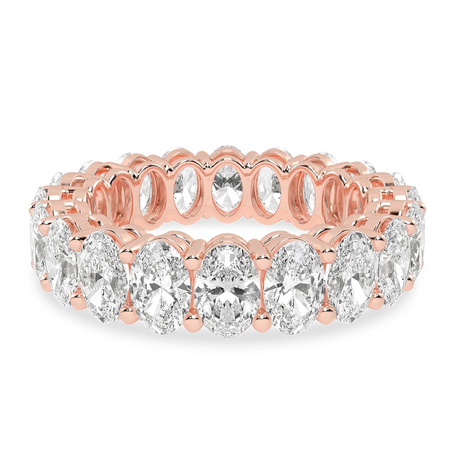 An endless wreath of ellipse shape lab-grown diamonds, this eternity band celebrates the power of love with breathtaking brilliance. This elegant band is a modern adaptation to your traditional band and therefore makes an excellent choice for a wedding band.