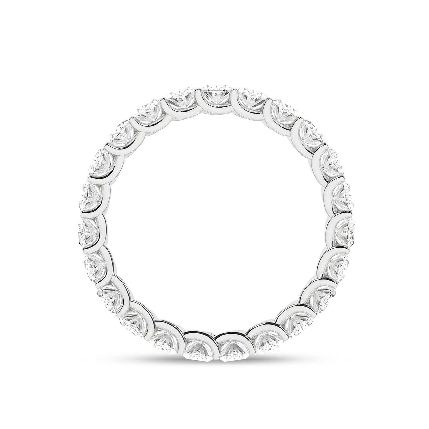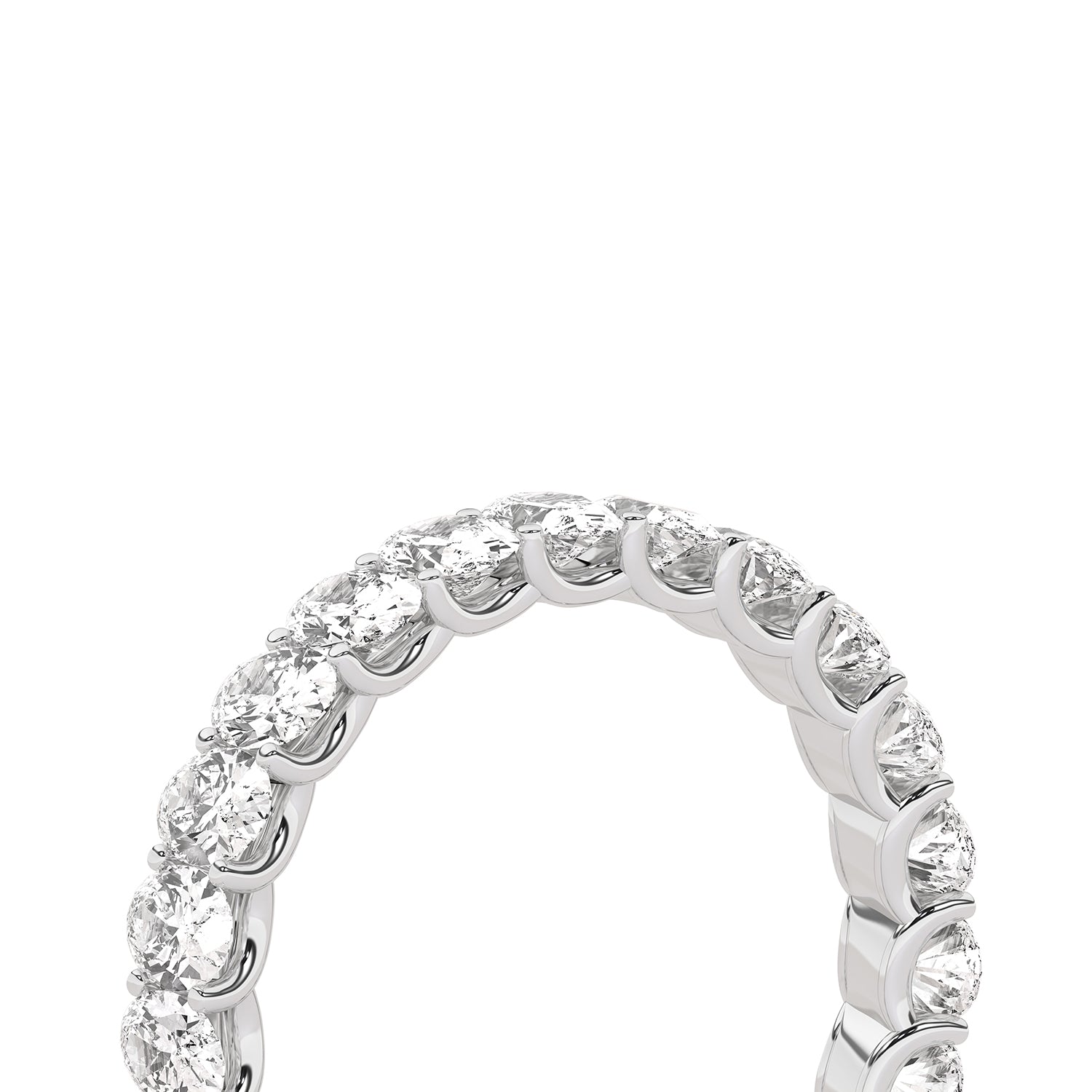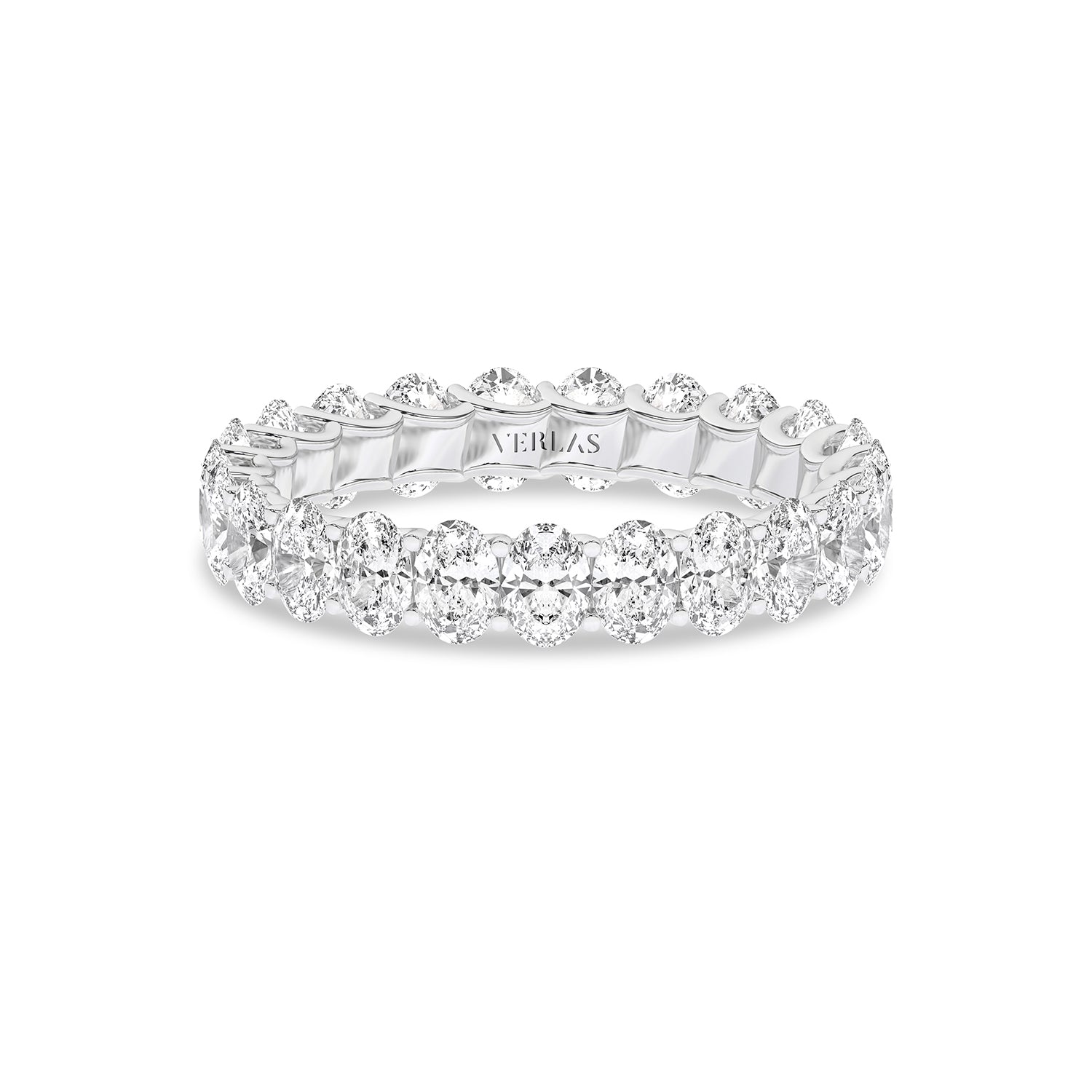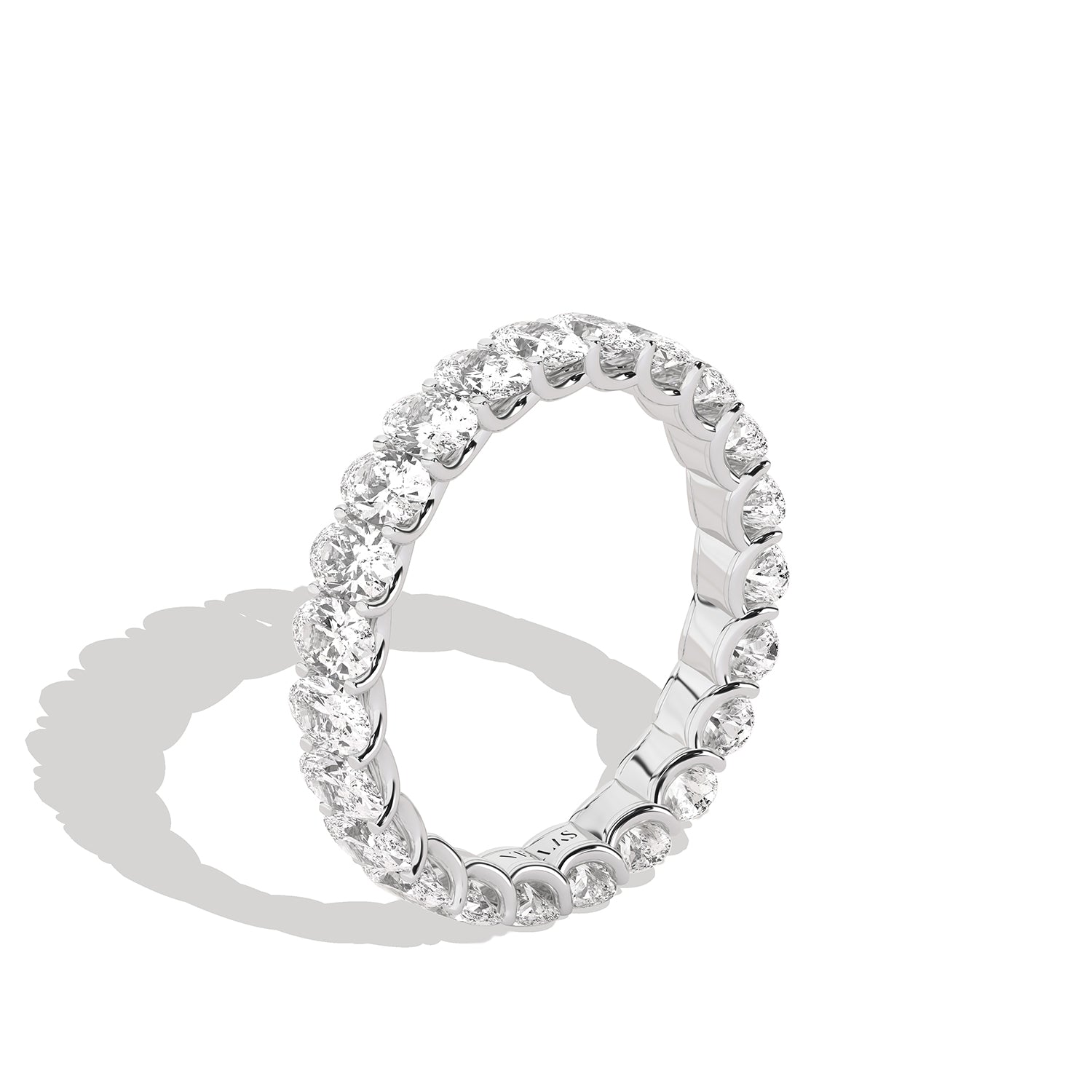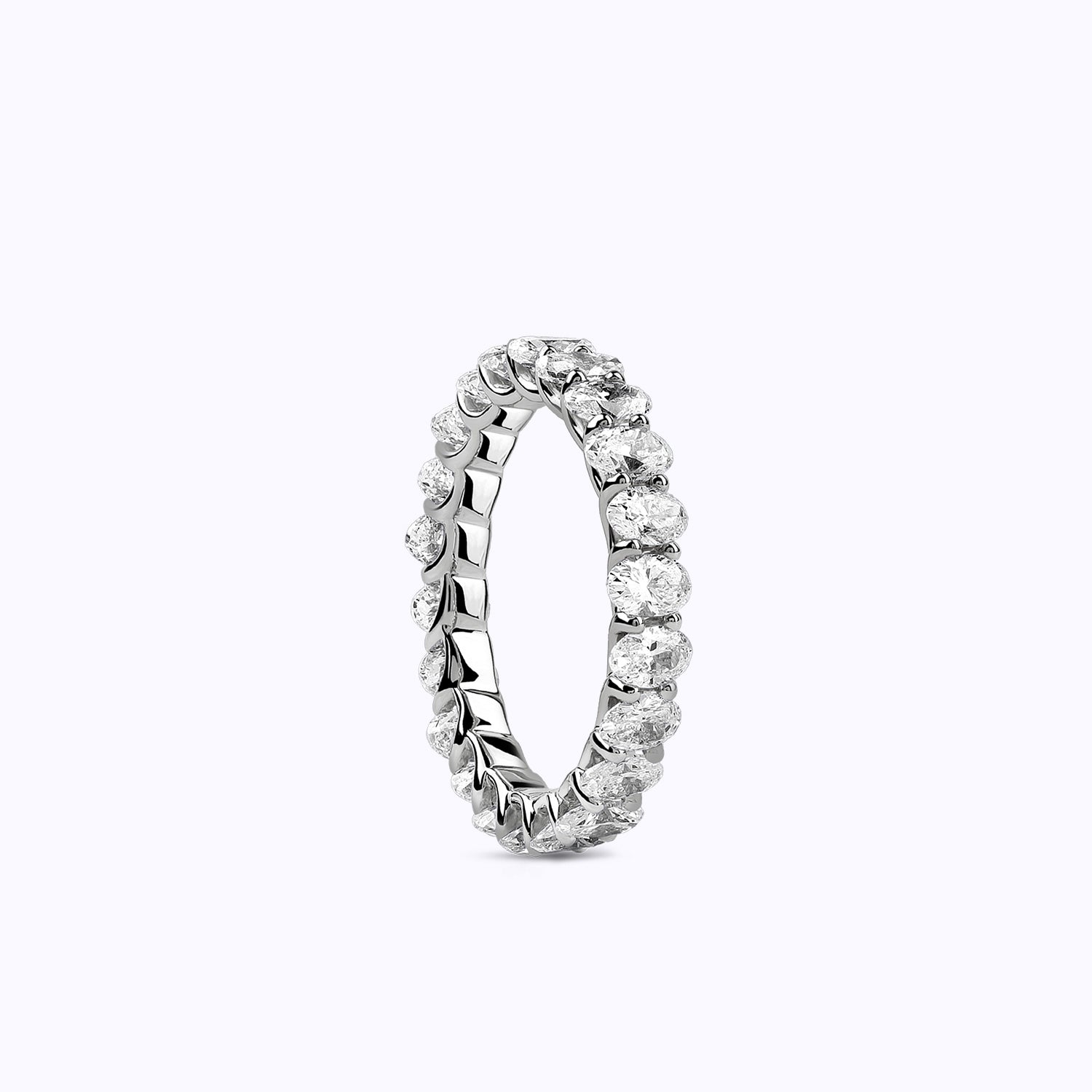 The Eternal Ellipse Band encapsulates the continuum of beauty that shapes our lives. This band is a symphony of 19 oval-shaped brilliant diamonds, each held in a prong setting—an ode to the eternal cycles of life. The design radiates elliptical brilliance from every viewpoint—a timeless choice, perfect for the eternal commitment of love.