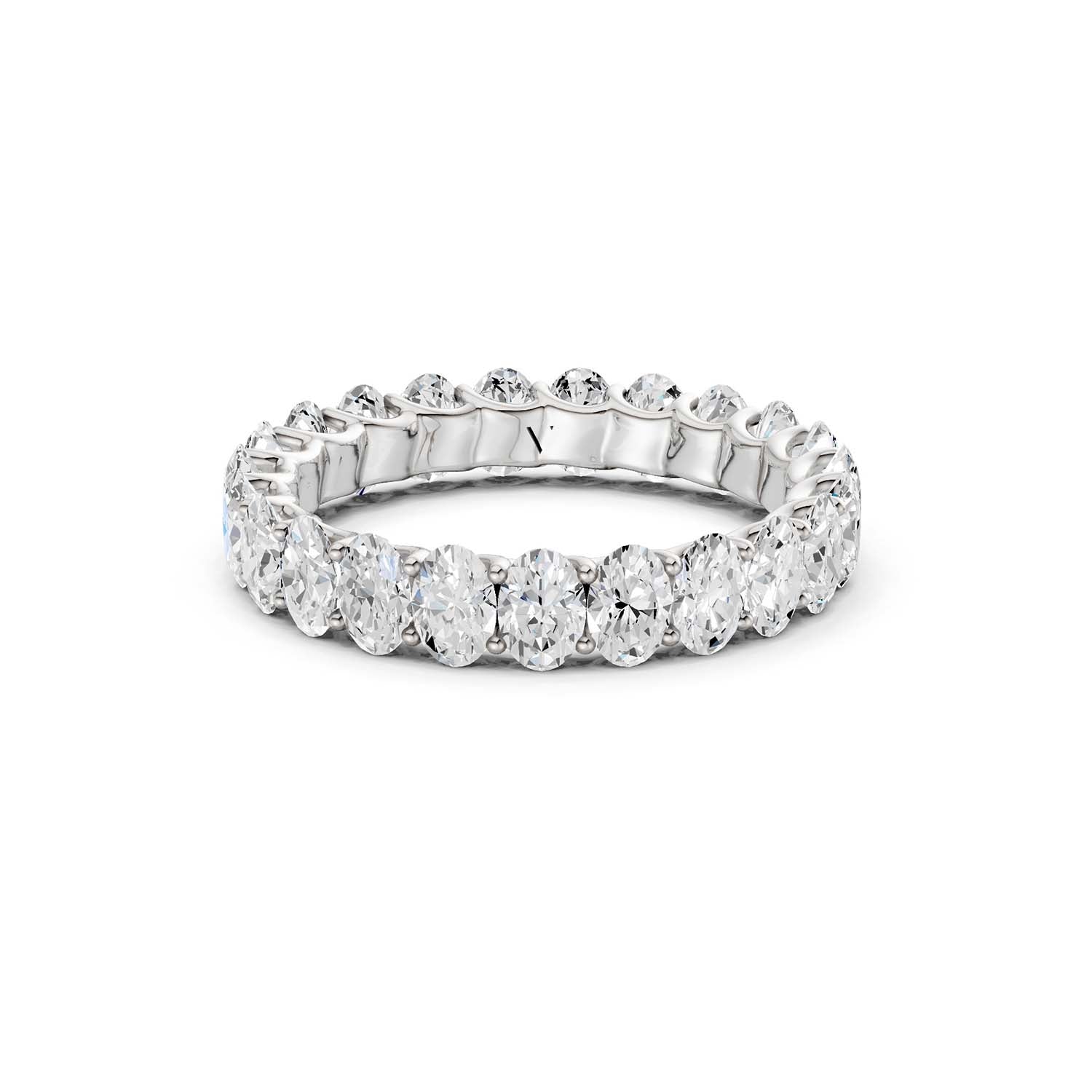 The Eternal Ellipse Band encapsulates the continuum of beauty that shapes our lives. This band is a symphony of 19 oval-shaped brilliant diamonds, each held in a prong setting—an ode to the eternal cycles of life. The design radiates elliptical brilliance from every viewpoint—a timeless choice, perfect for the eternal commitment of love.