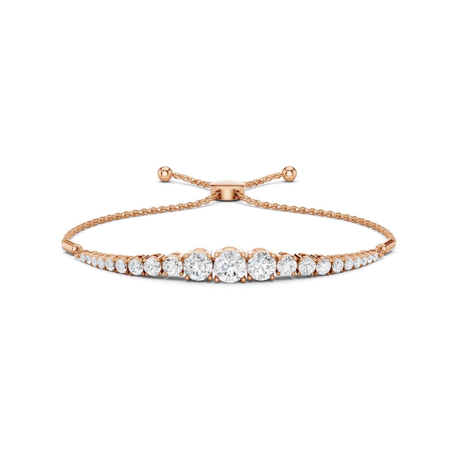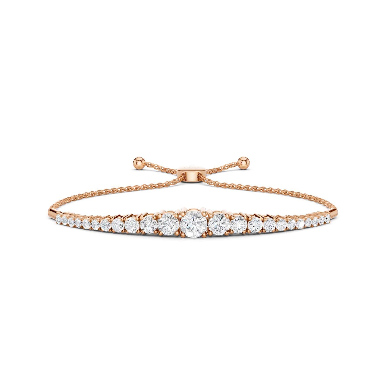 This elegant Graduated Round Bolo Bracelet is embellished with a string of diamonds in graduating sizes, creating a visually appealing design. This diamond cut bracelet features a bolo closure that can be easily adjusted to fit any wrist size. The graduated design adds a. . . Read More