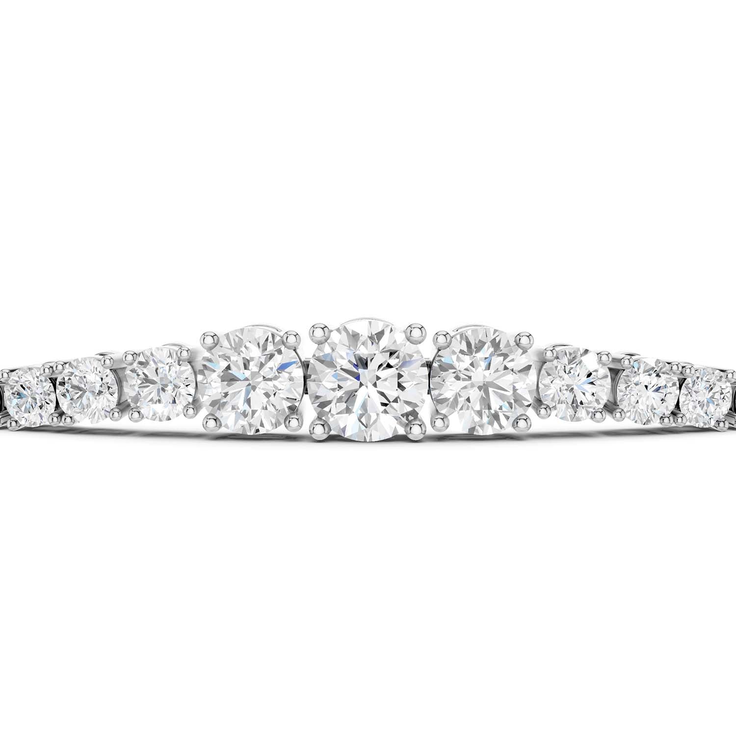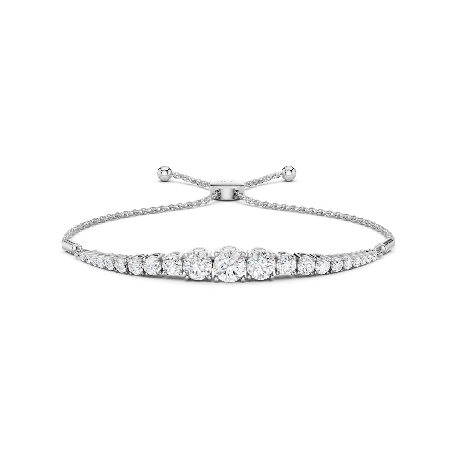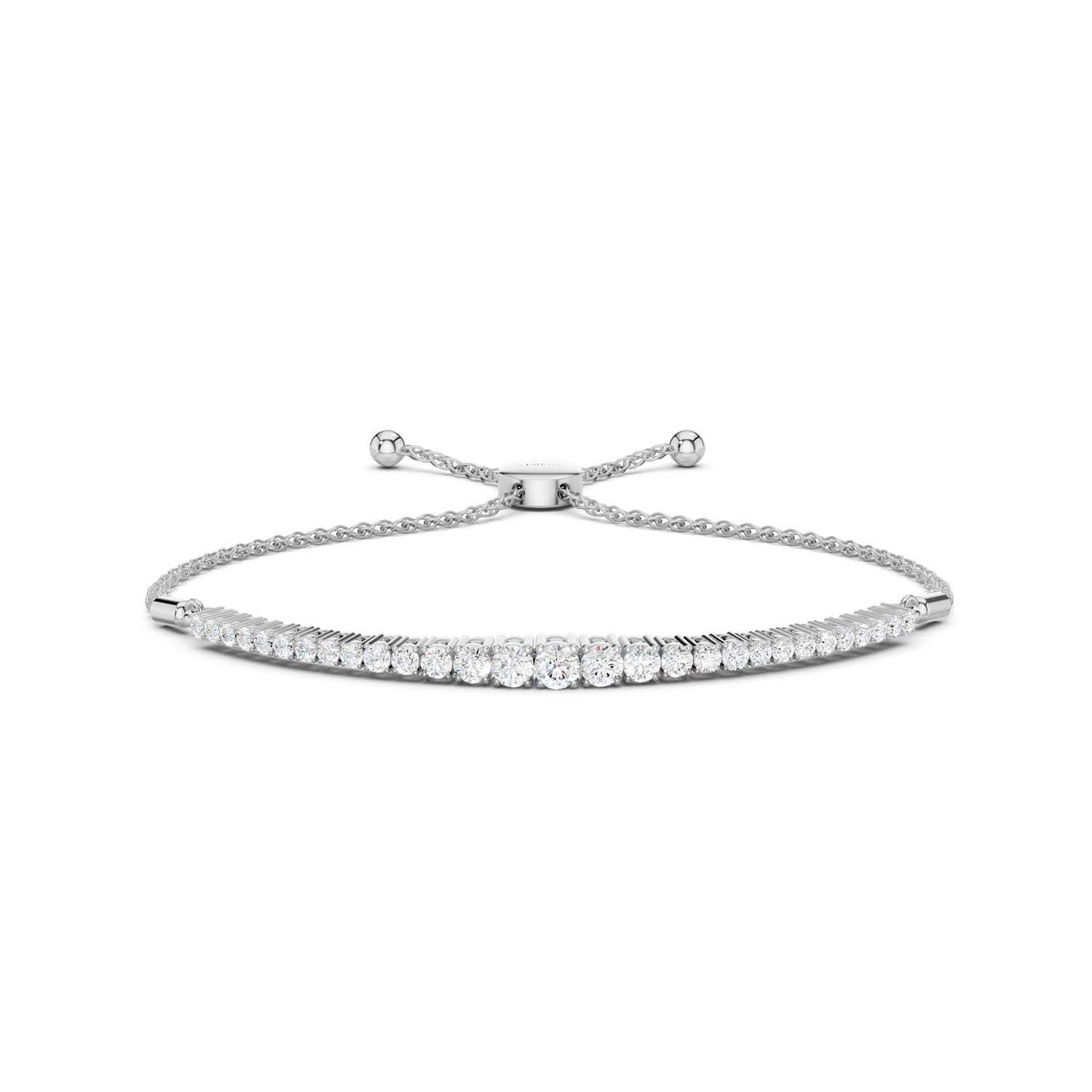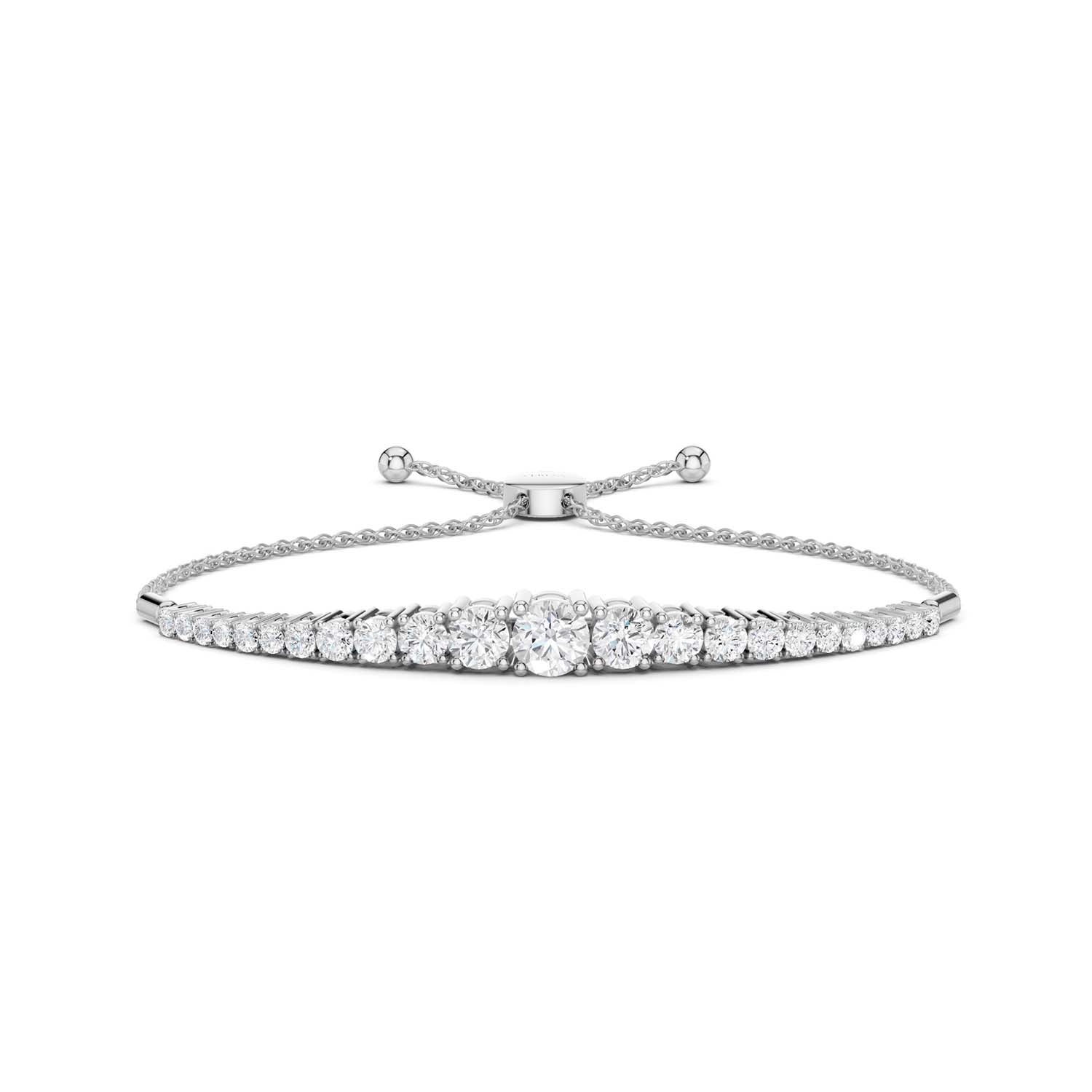 This elegant Graduated Round Bolo Bracelet is embellished with a string of diamonds in graduating sizes, creating a visually appealing design. This diamond cut bracelet features a bolo closure that can be easily adjusted to fit any wrist size. The graduated design adds a. . . Read More