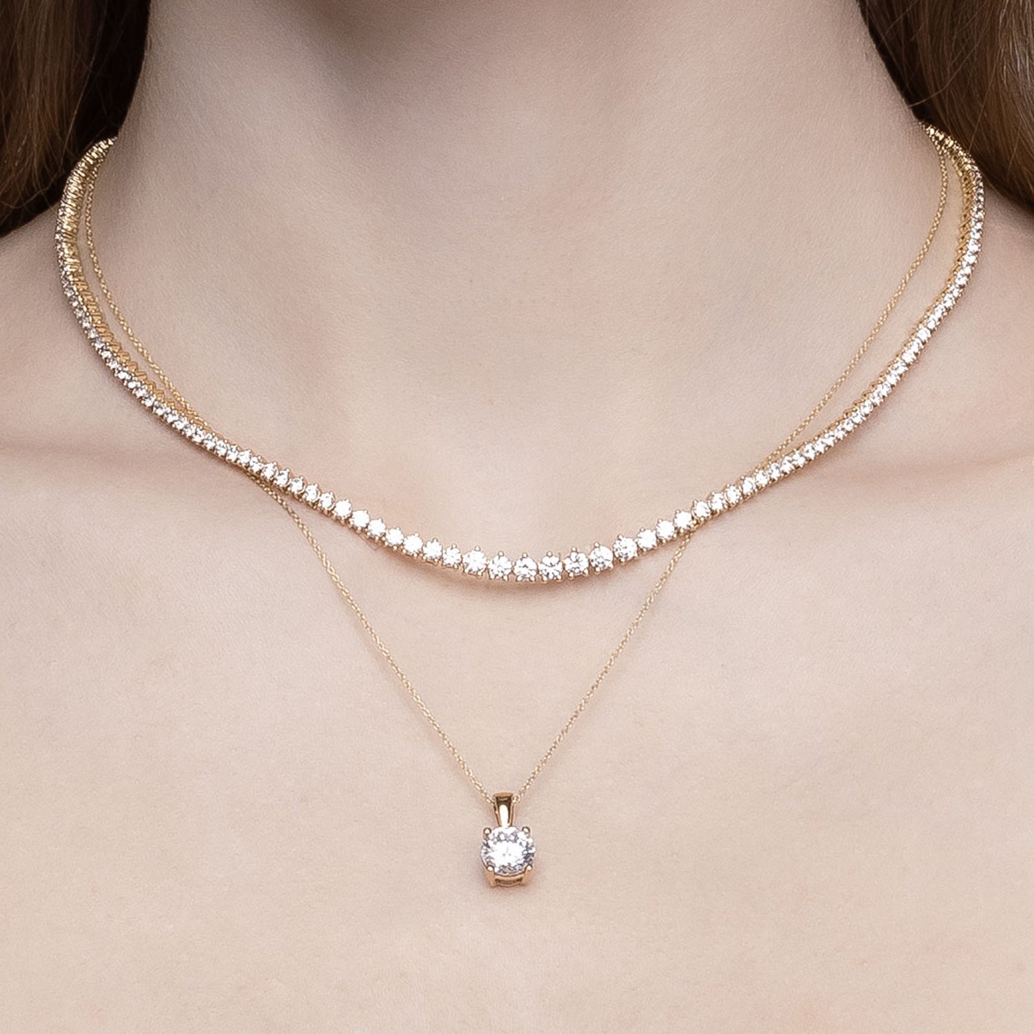 A dazzling array of lab-grown diamonds gracefully graduate toward the necklace's center. This luxurious and elegant tennis necklace gives exceptional sparkle from every angle and is a perfect choice to make any occasion special.