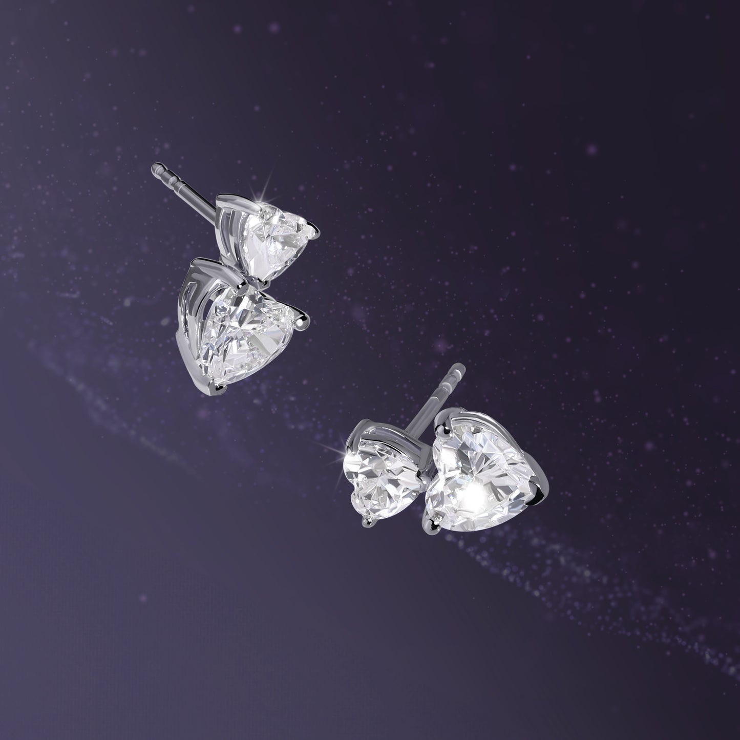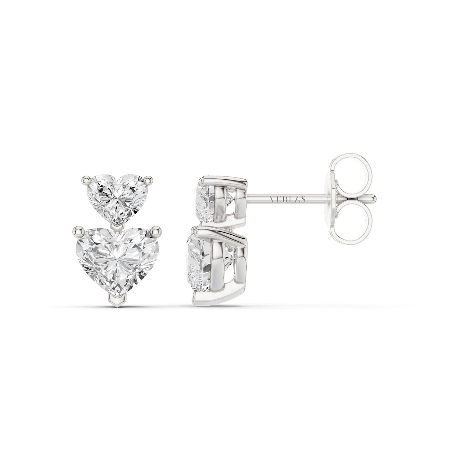 Add a touch of romance to your look with these Heart Drop Earrings, featuring two lab-grown diamonds in a vertical design. The smaller heart delicately complements the larger one, both set in secure prong settings, creating a timeless symbol of love and elegance.