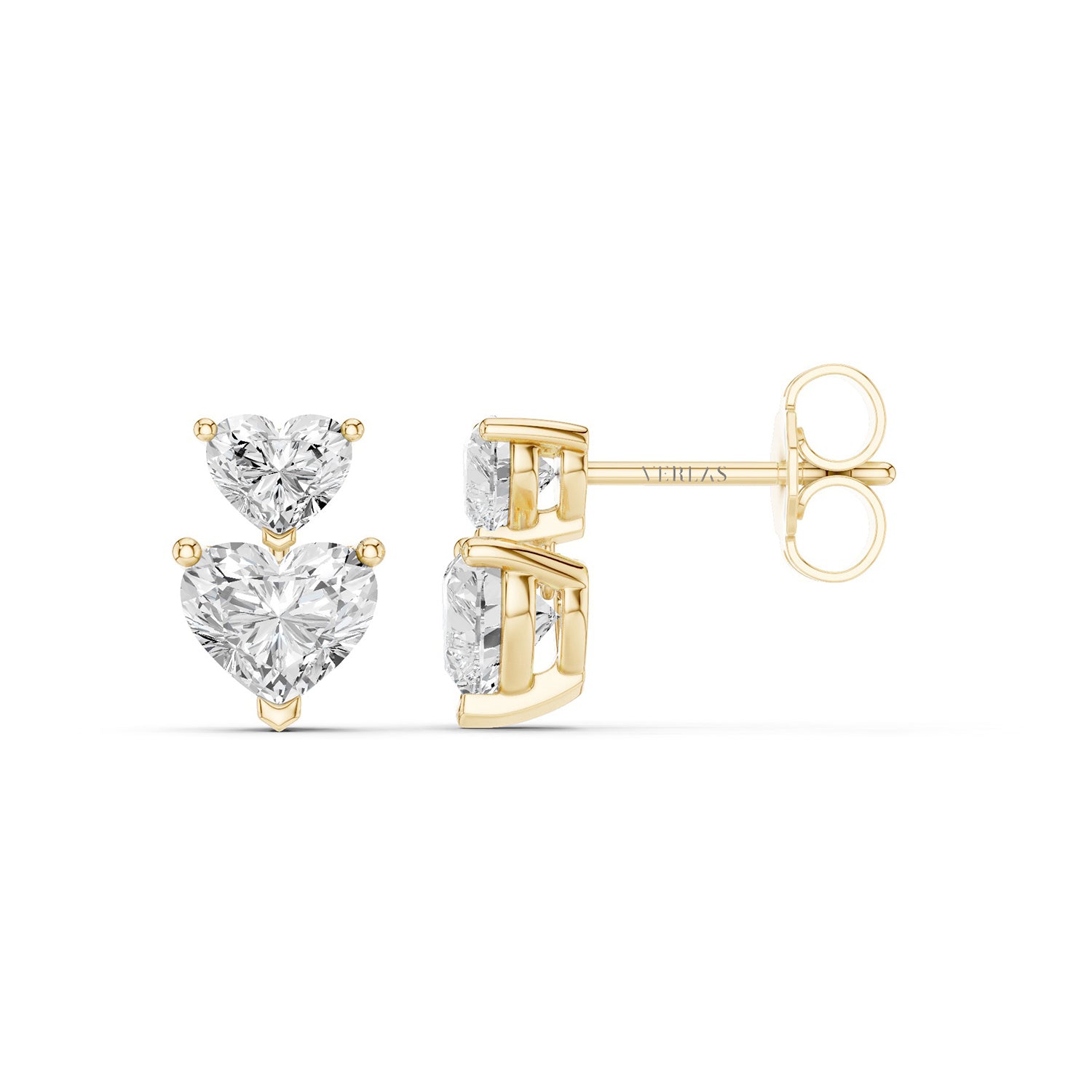 Add a touch of romance to your look with these Heart Drop Earrings, featuring two lab-grown diamonds in a vertical design. The smaller heart delicately complements the larger one, both set in secure prong settings, creating a timeless symbol of love and elegance.