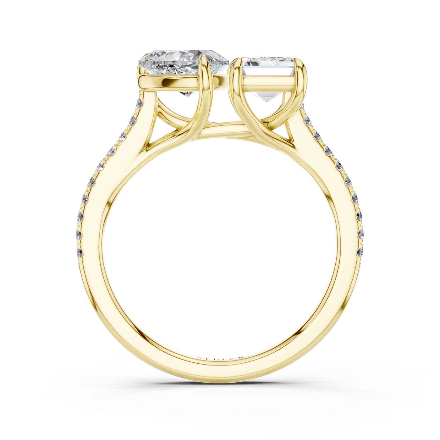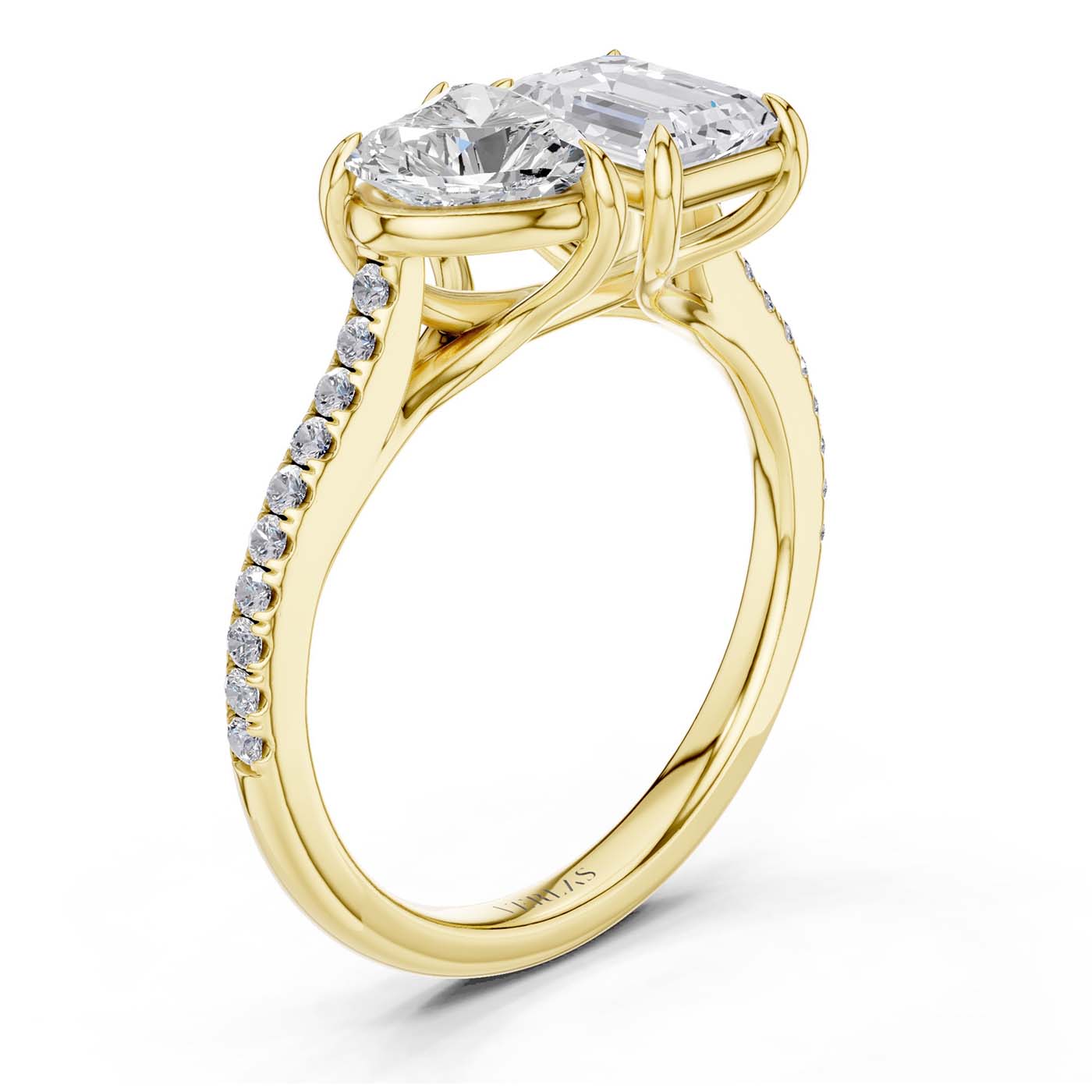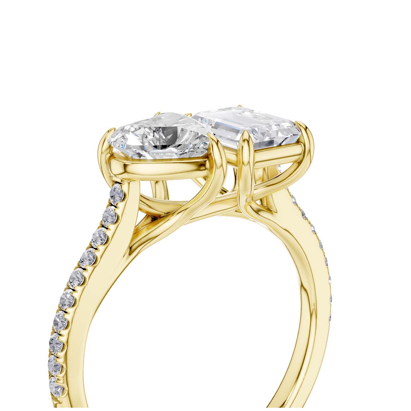 Every facet of this Toi et Moi ring is a testament to the harmonious bond created when two distinct. personalities unite in love. This ring features the heart and emerald diamonds nestling upon the diamond-studded shank, just like the love and support surrounding and nurturing your connection.