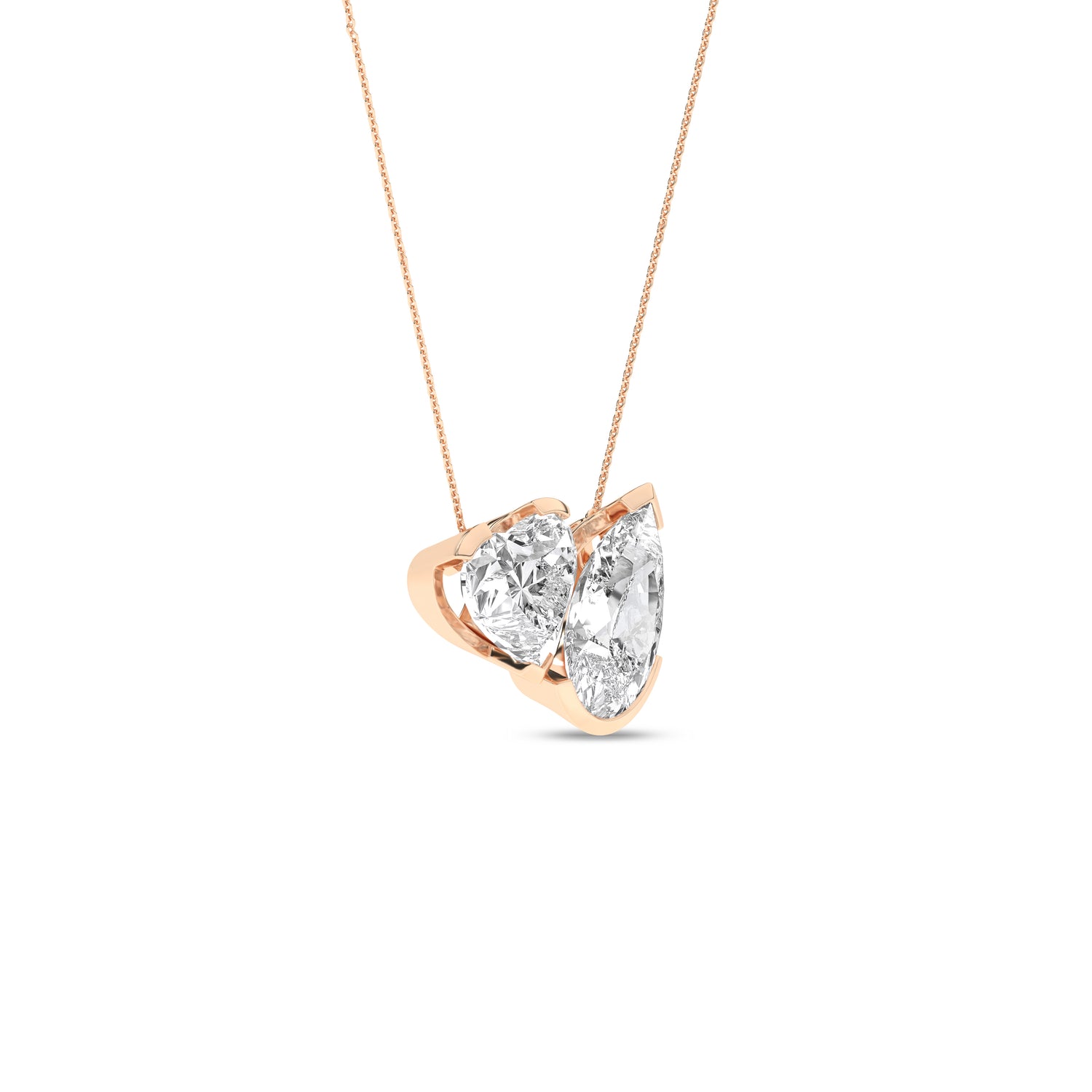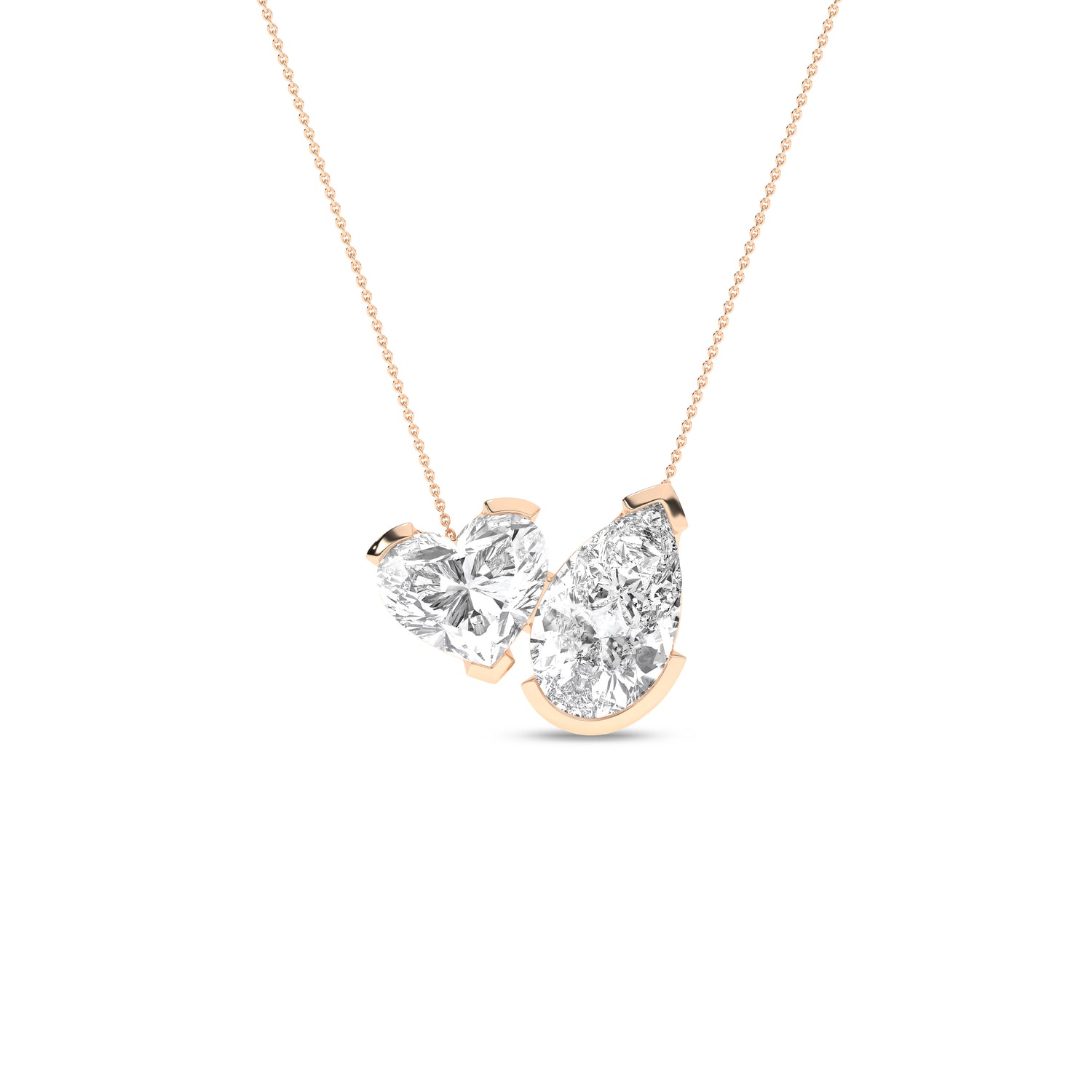 This enchanting necklace captures the essence of "Toi et Moi," French for "you and me," in an elegant and enduring way. Crafted with utmost precision, this beautiful necklace showcases a stunning interplay of heart and pear-cut diamonds while the delicate chain, designed for comfort, gracefully drapes around the neck.