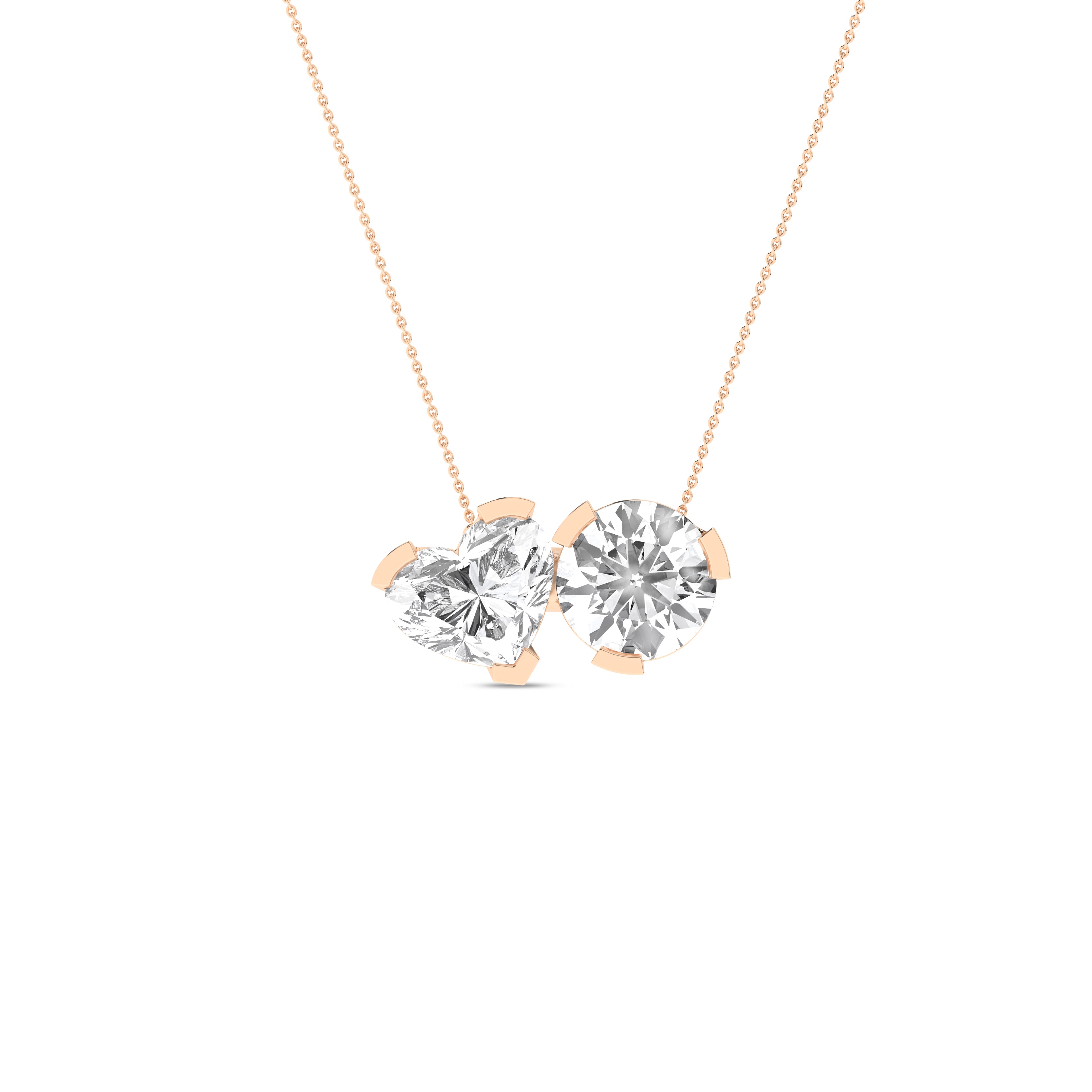 Heart Round Diamond Two-Stone Necklace