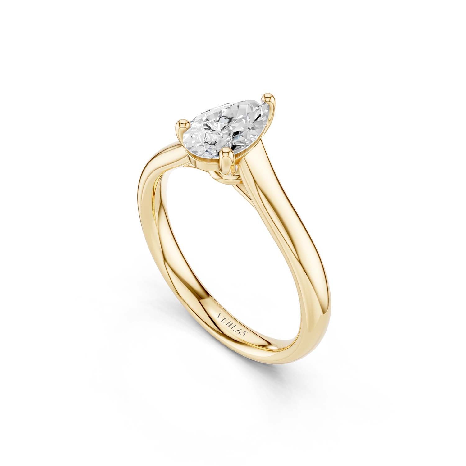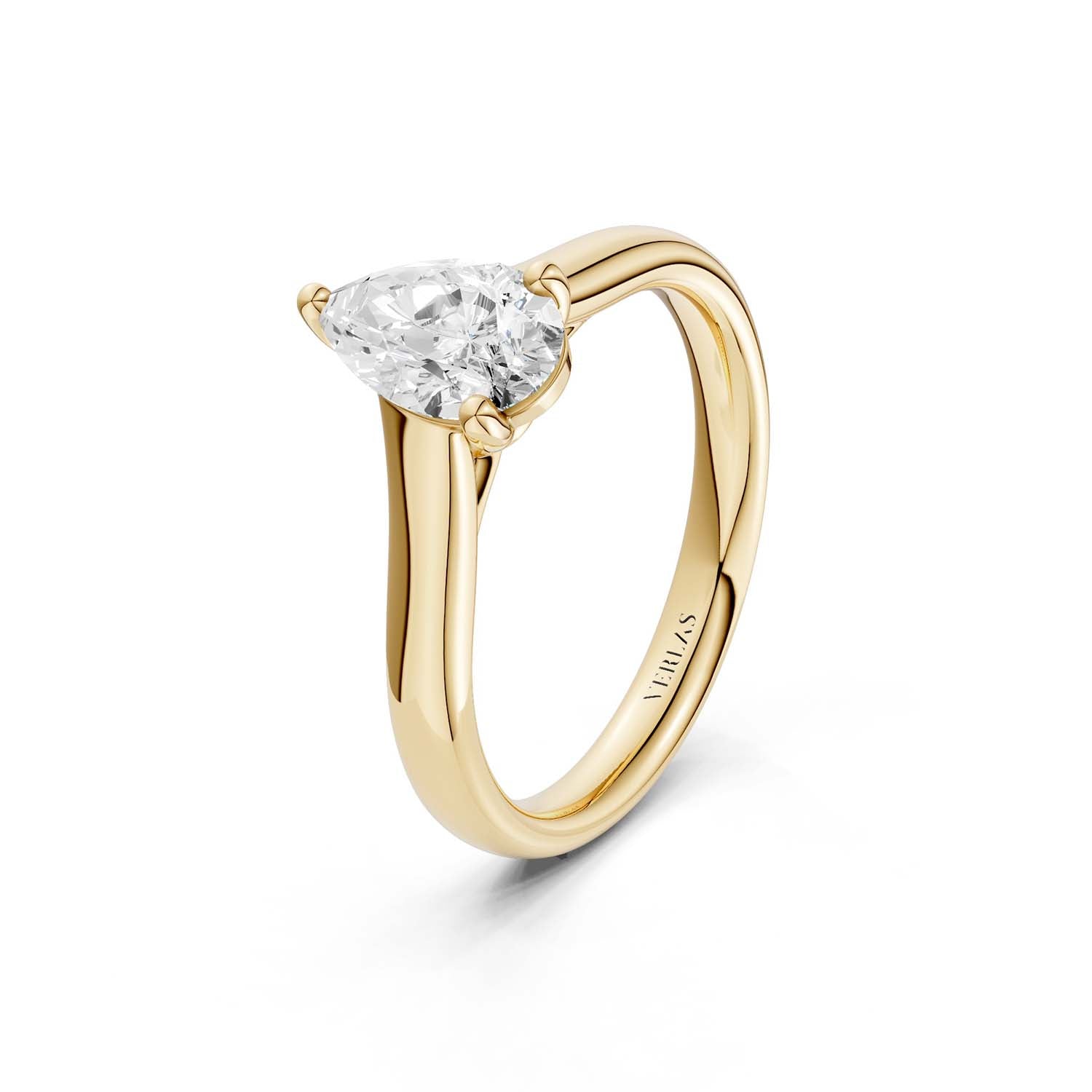 The Iconic Dewdrop Ring is a minimalist engagement ring featuring a dewdrop diamond set in gold. The dewdrop design symbolizes purity and simplicity, making it an ideal choice for those who appreciate understated elegance.