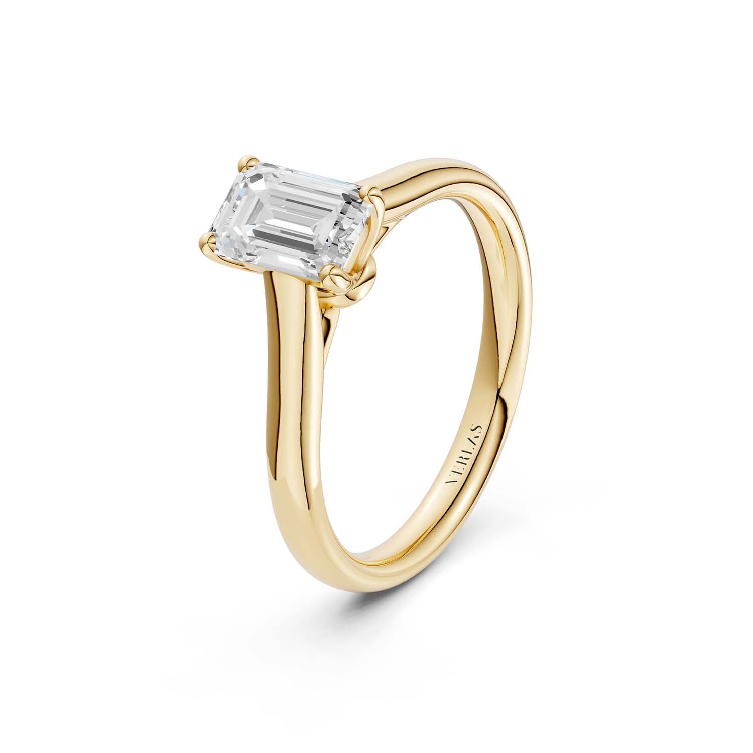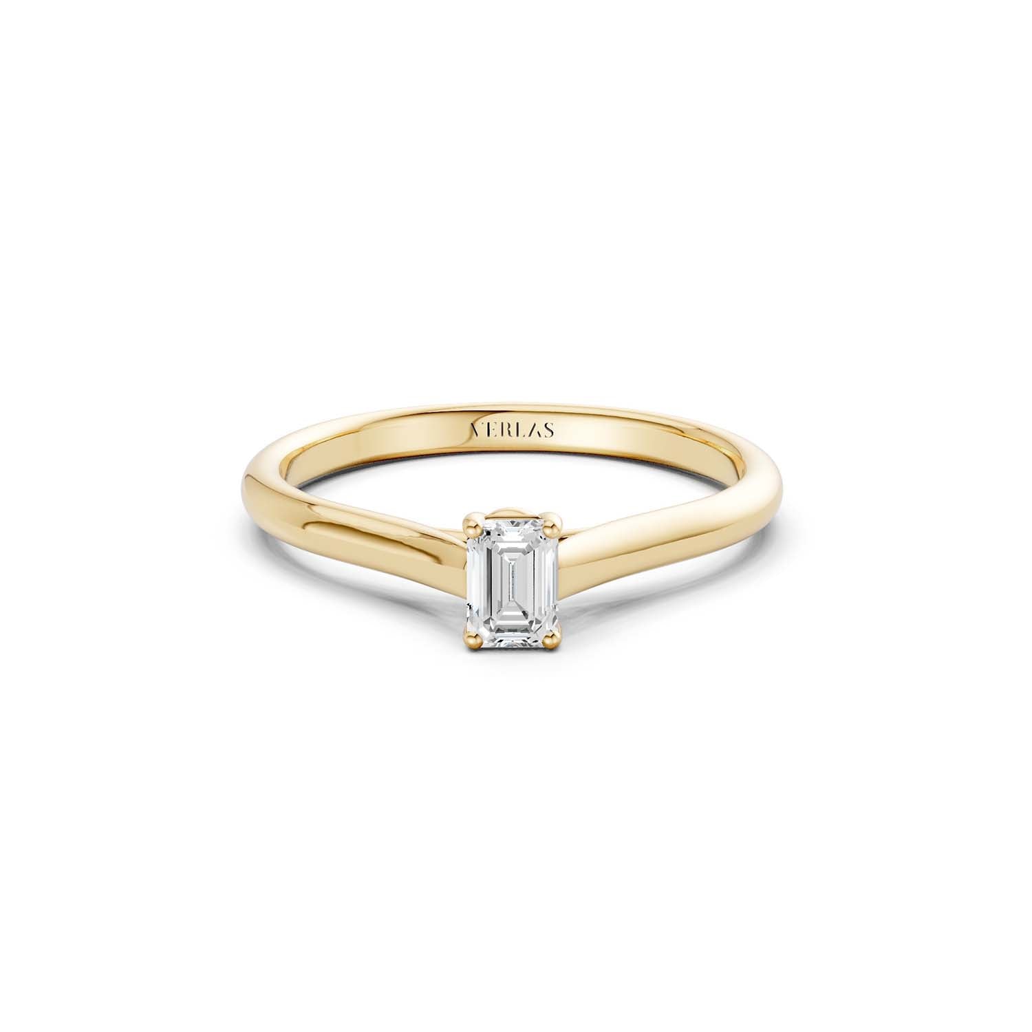 The Iconic Emerald Ring is a true showstopper. The captivating emerald-cut diamond set in a 4-prong setting on a sleek gold band creates a mesmerizing allure. This ring exudes elegance and sophistication and is a piece of timeless beauty that will make a statement on any occasion.
