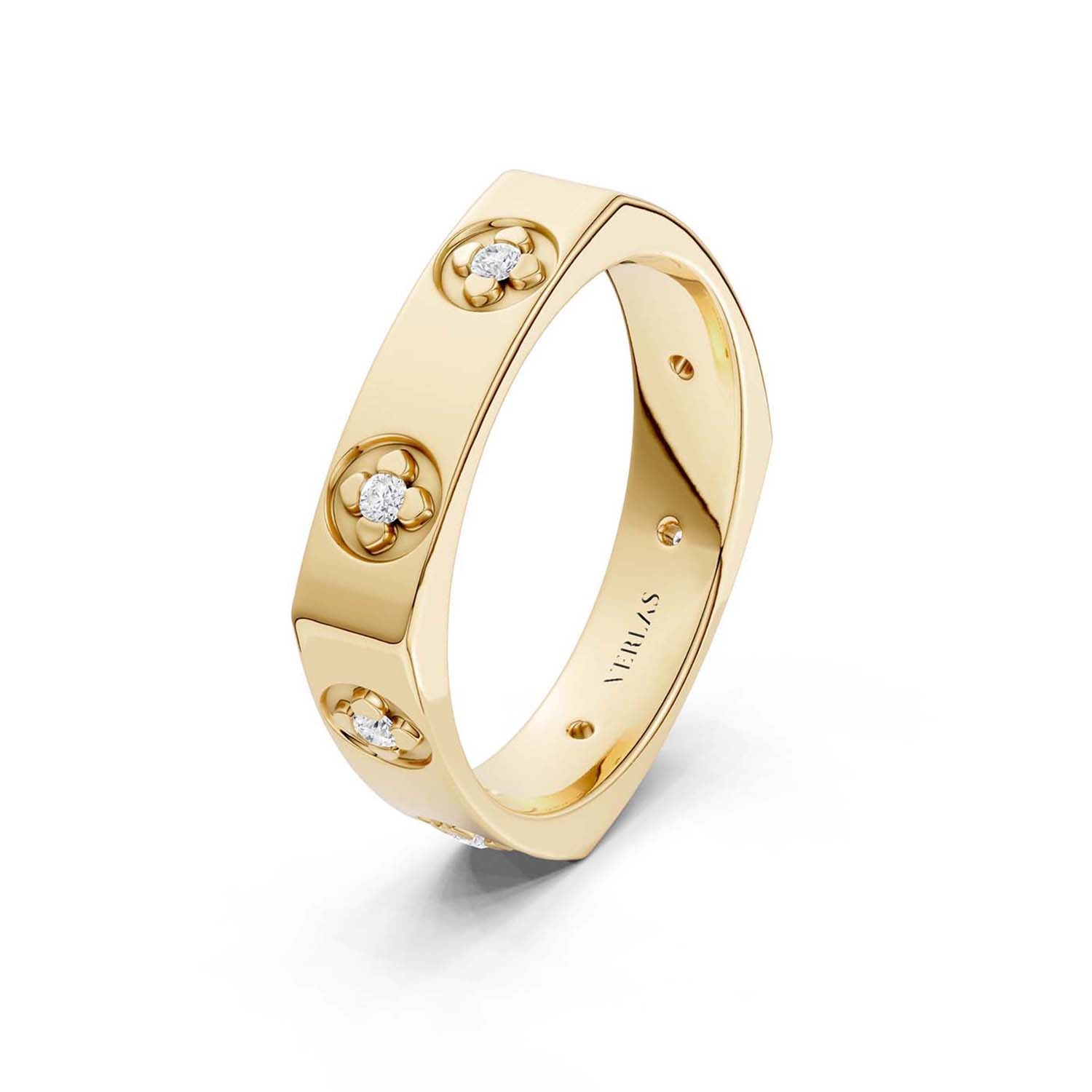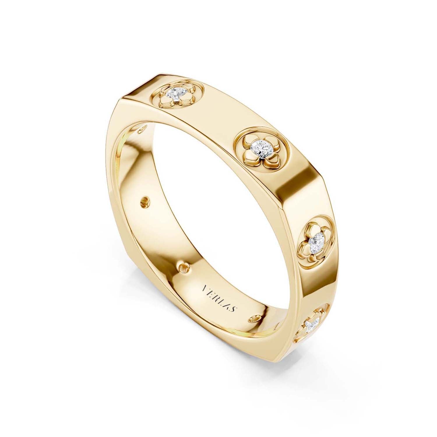 Elevate your style with the stunning La Fleur 4.10mm 6-Diamonds Square Band. Featuring six dazzling diamonds, this band showcases La Fleur's floral motif in a sleek and modern design. Crafted in solid gold, it exudes luxury and versatility. Perfect for stacking with other La Fleur bands or wearing alone, it adds a touch of glamour to any ensemble.