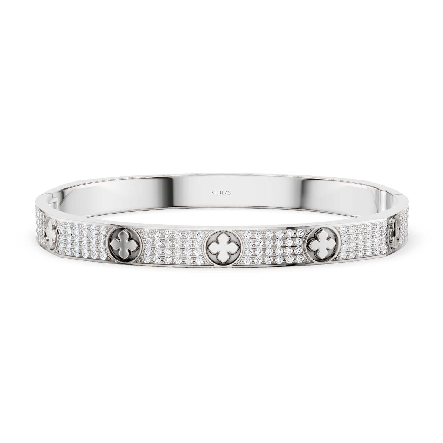 Make a bold fashion statement with the La Fleur 4 Diamond Rows Square Bangle. This exquisite bangle features four rows of diamonds that exude luxury and opulence. The square shape adds a modern twist to the classic design, making it a perfect accessory for any occasion. With its impeccable craftsmanship and attention to detail, this bangle is a true masterpiece. Timeless classics unconstrained by gender, La Fleur bangles and bands add brilliance to your everyday expression. Wear these on their own or stack this bangle with other La Fleur bangle& bracelets for a powerful look.