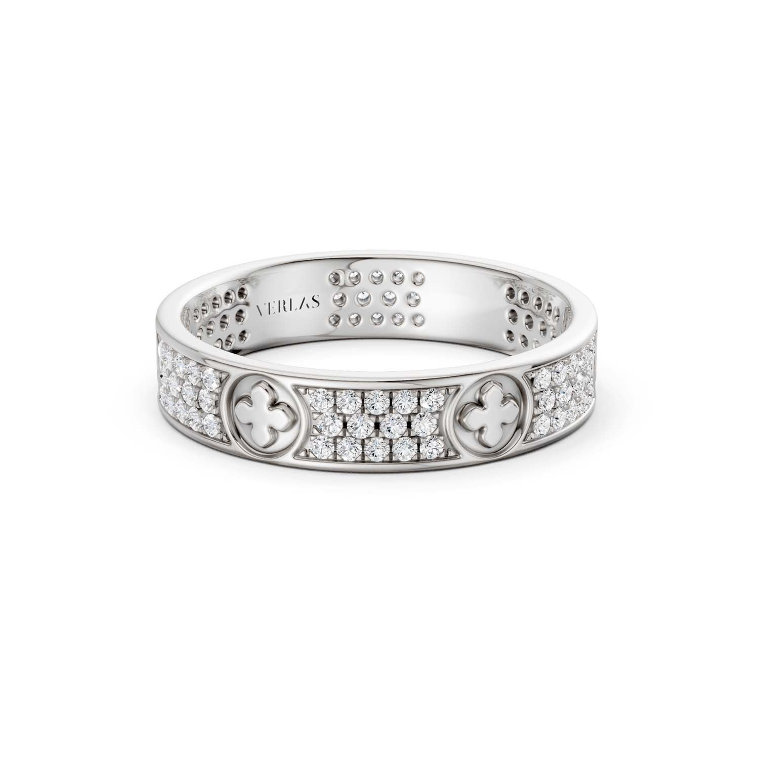 Platinum is an exceptionally durable, bright white, hypoallergenic metal that’s 30 times rarer than gold. At 95% purity, Verlas platinum is the ideal canvas to make diamonds and intricate engravings pop to the fullest.