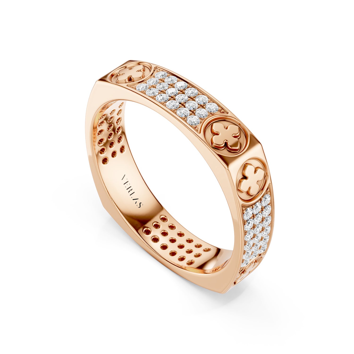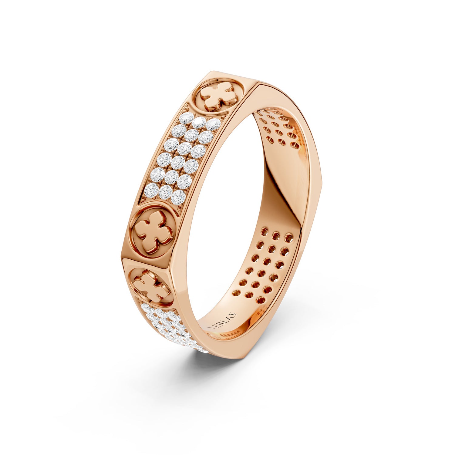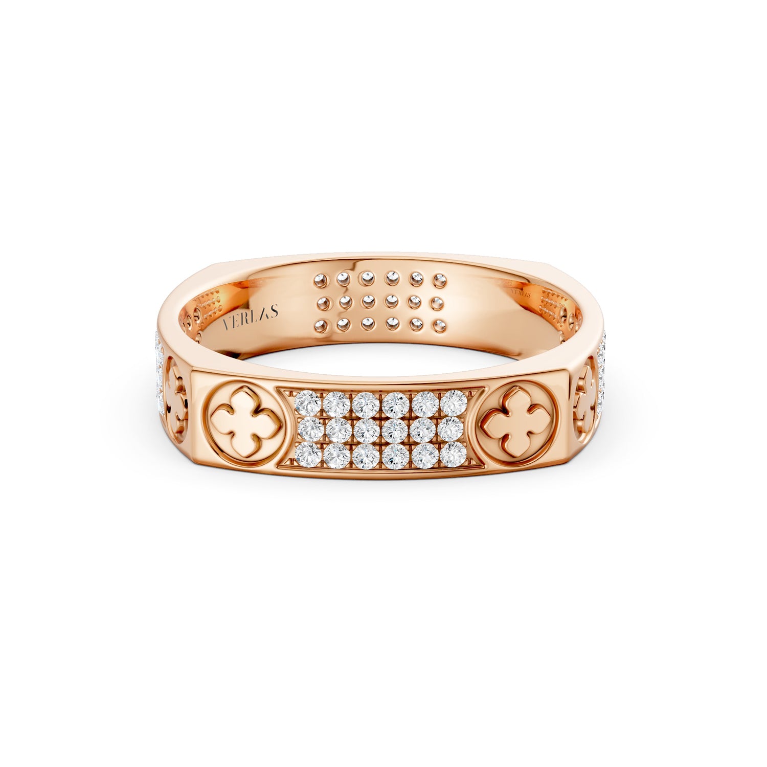 Introducing the La Fleur 4mm 4-Diamond Rows Square Band. This exquisite solid gold band showcases La Fleur's signature floral motif in a stunning design. Versatile and timeless, this band can be worn on its own or stacked with other La Fleur bands for a powerful and personalized look. Elevate your everyday expression with the brilliance of La Fleur.
