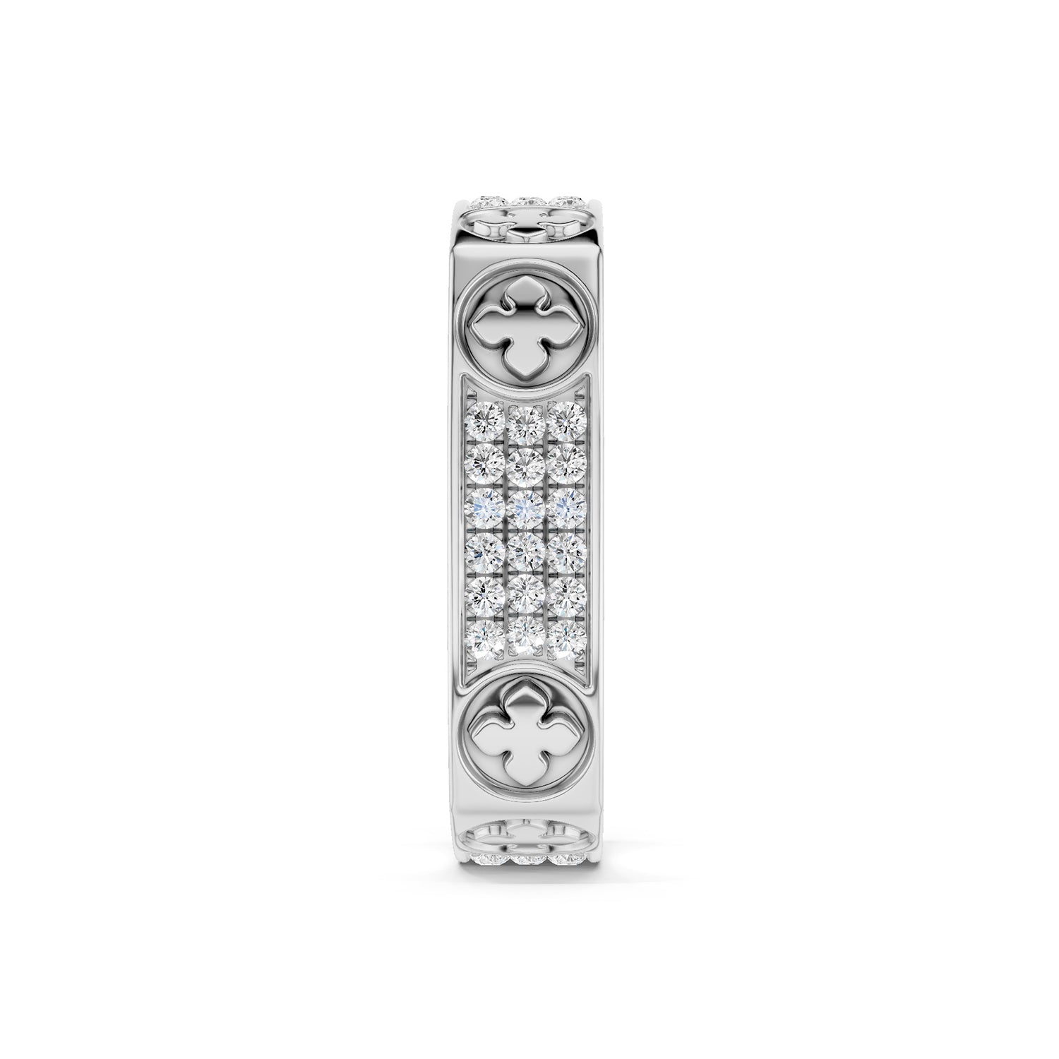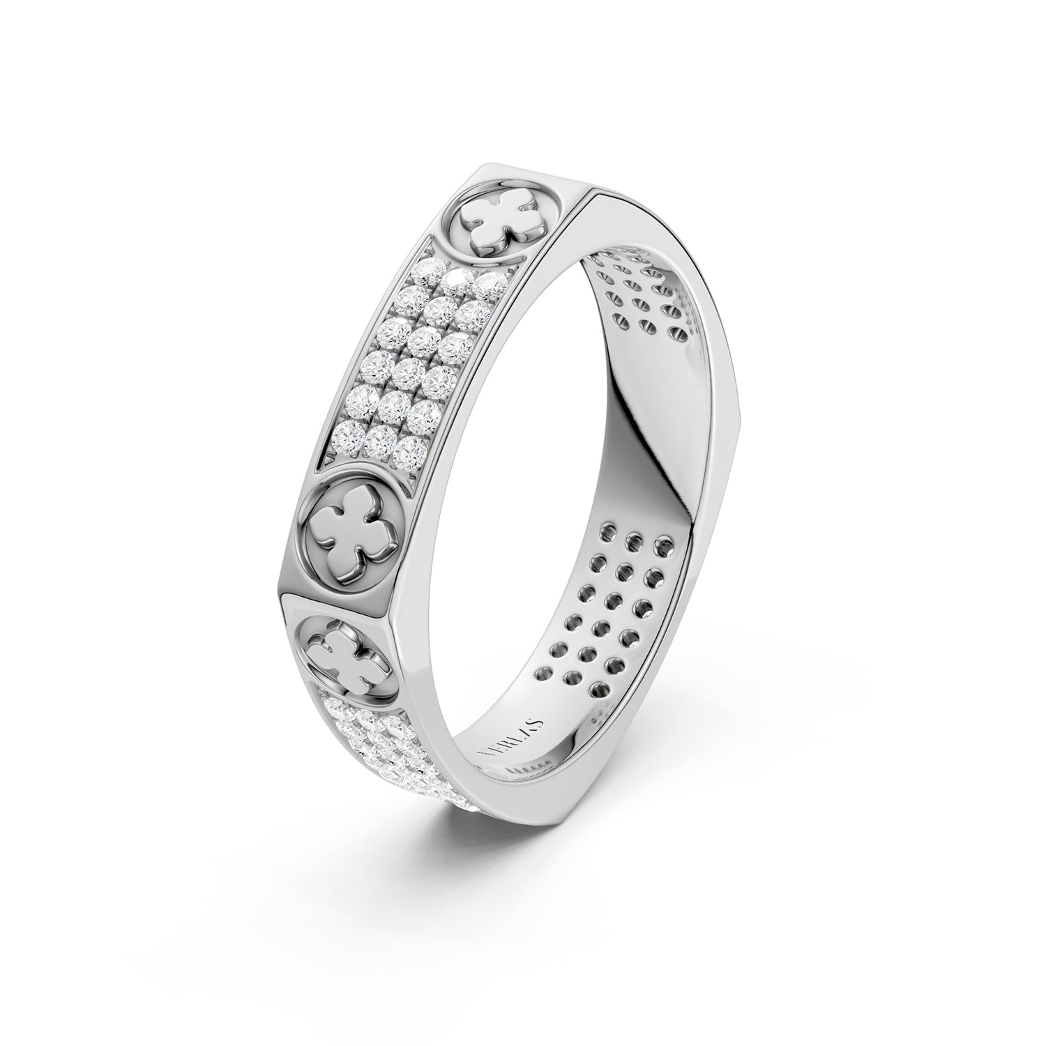 Introducing the La Fleur 4mm 4-Diamond Rows Square Band. This exquisite solid gold band showcases La Fleur's signature floral motif in a stunning design. Versatile and timeless, this band can be worn on its own or stacked with other La Fleur bands for a powerful and personalized look. Elevate your everyday expression with the brilliance of La Fleur.