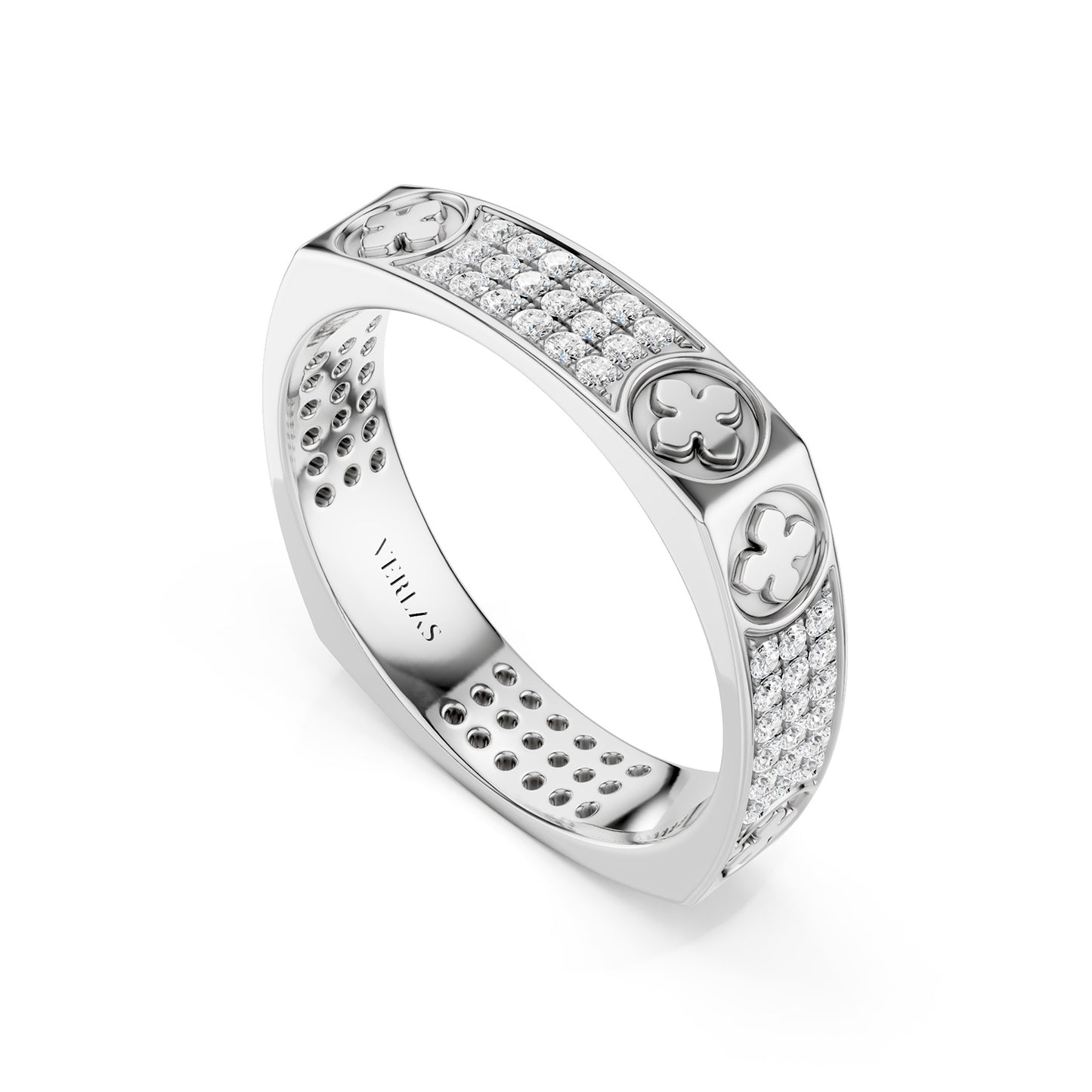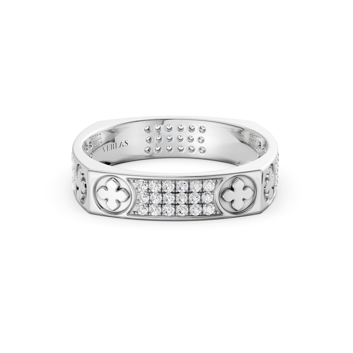 Platinum is an exceptionally durable, bright white, hypoallergenic metal that’s 30 times rarer than gold. At 95% purity, Verlas platinum is the ideal canvas to make diamonds and intricate engravings pop to the fullest.