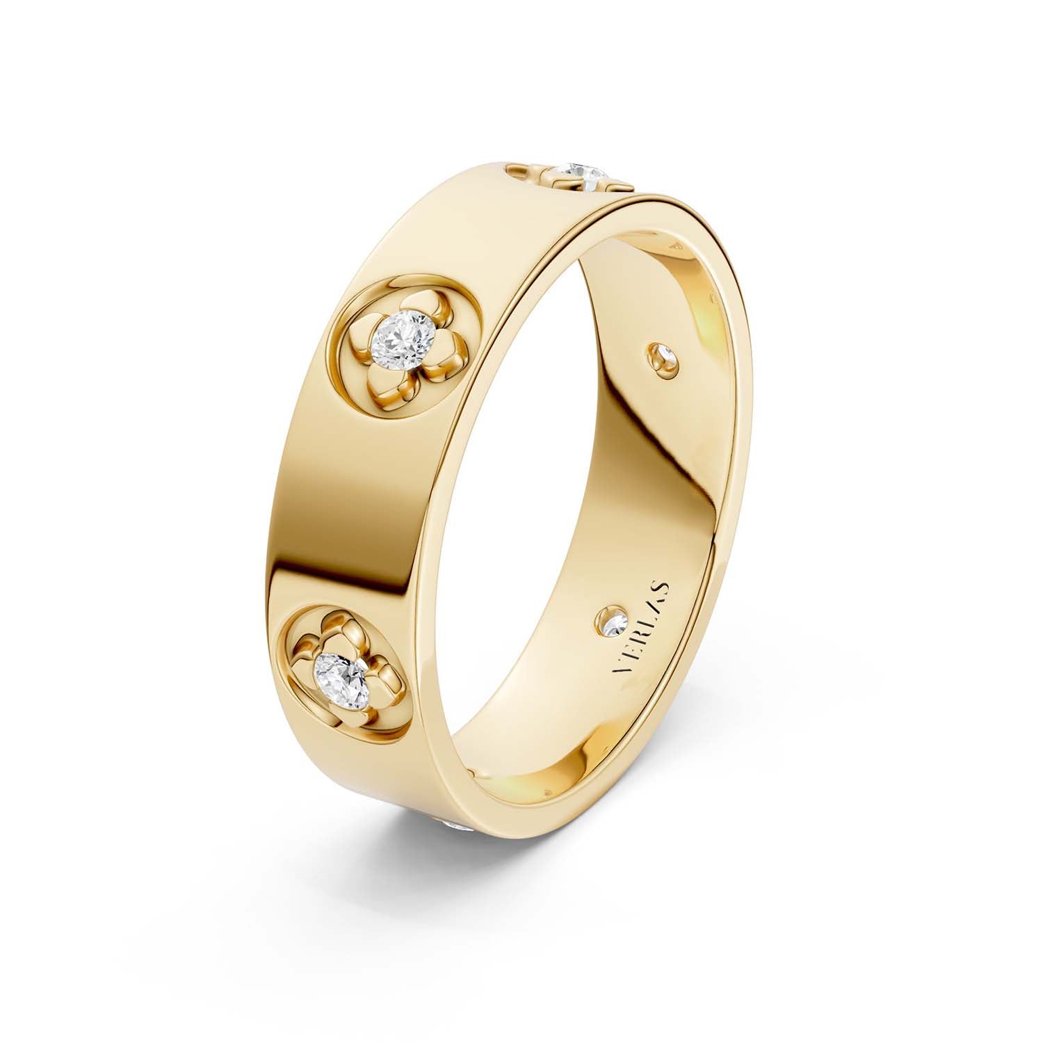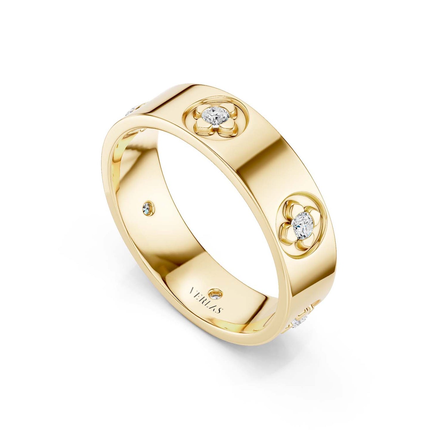 Read MoreMake a bold statement with this La Fleur 5.10mm 6 Diamonds Round Band. Crafted from 14K/18K solid gold, this band features a unique floral design and six dazzling diamonds. The combination of elegance and contemporary style makes this band a showstopper.