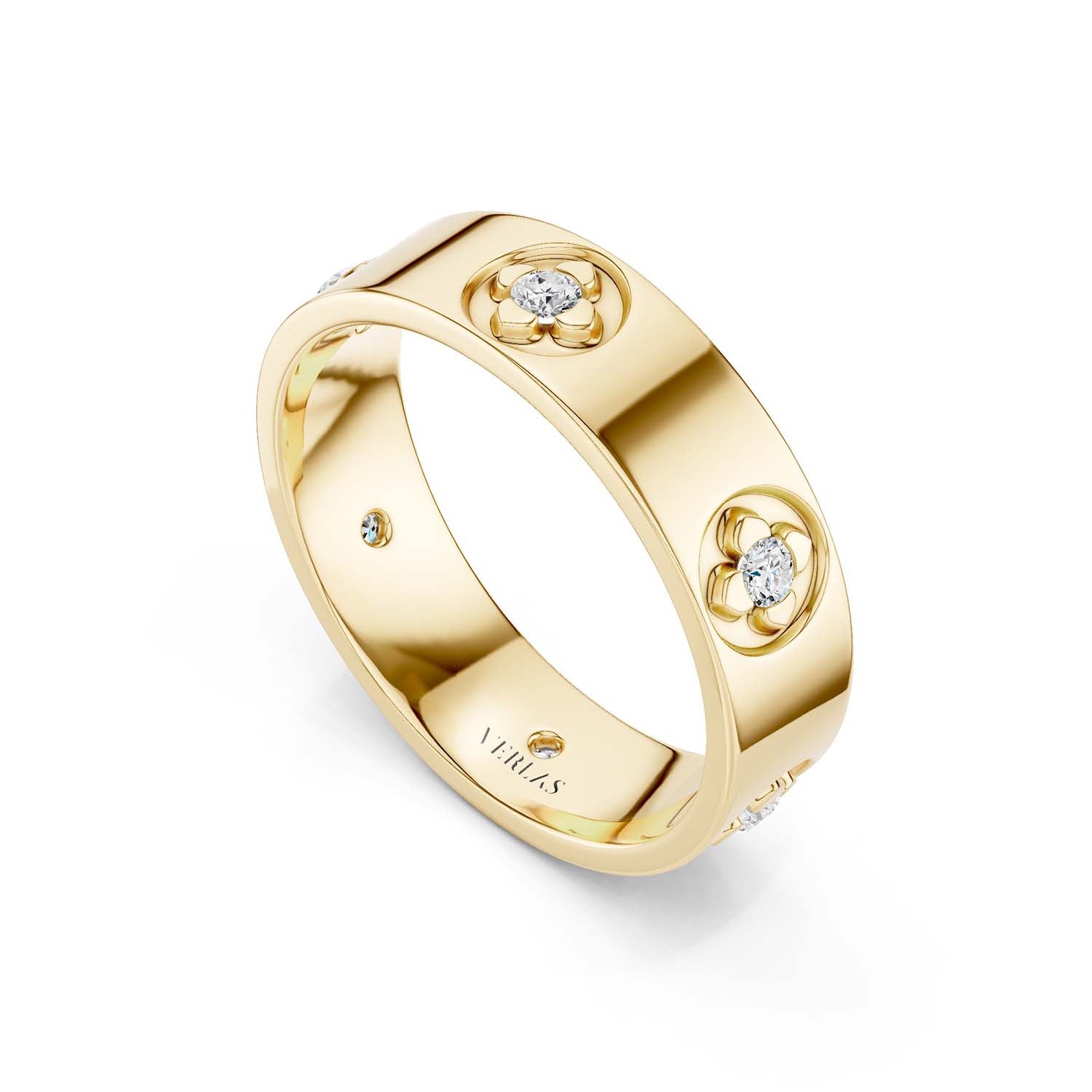 Make a bold statement with this La Fleur 5.10mm 6 Diamonds Round Band. Crafted from 14K/18K solid gold, this band features a unique floral design and six dazzling diamonds. The combination of elegance and contemporary style makes this band a showstopper.