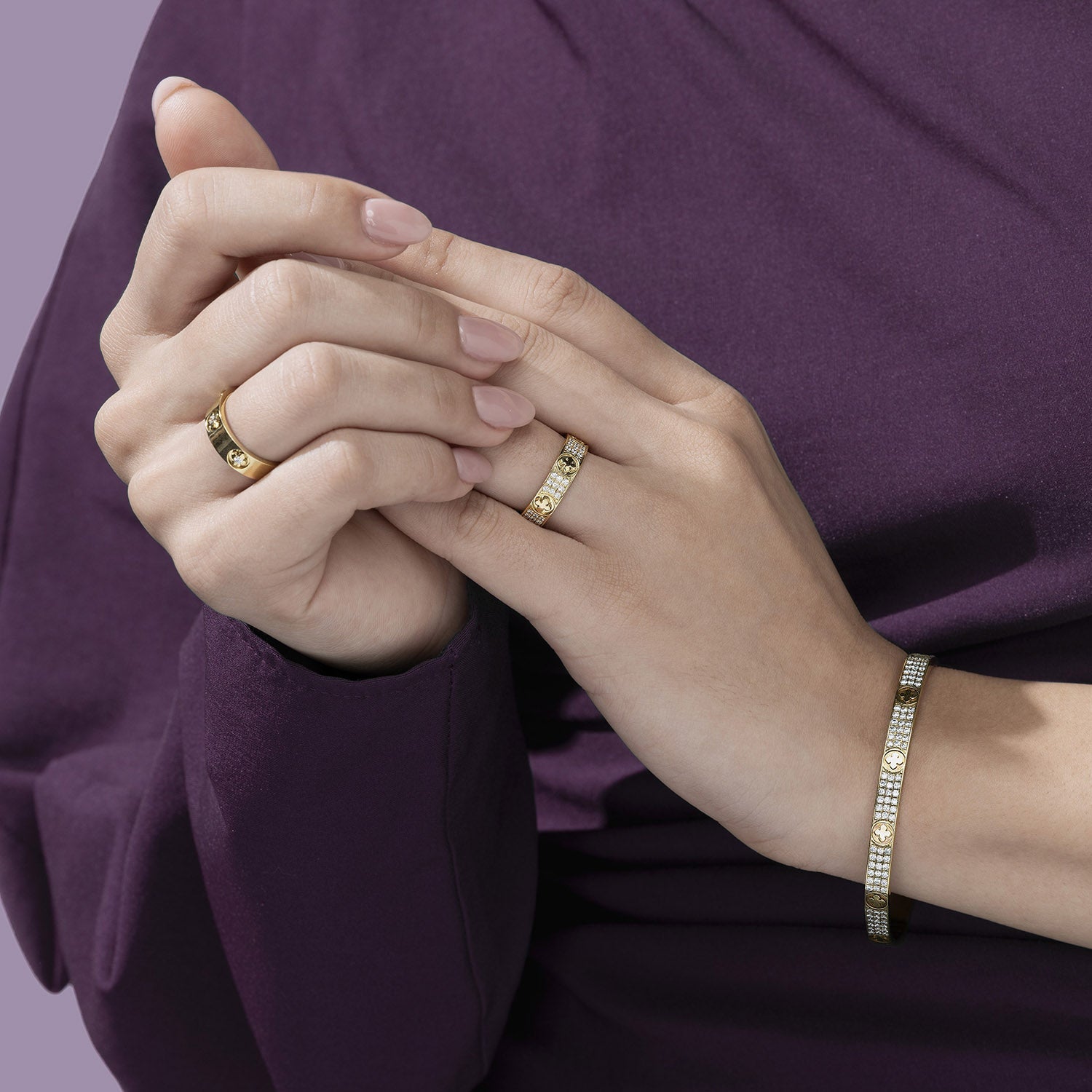 This La Fleur 5mm 4-Diamond Rows Square Band consists of four sets of tiny brilliant-cut diamonds artfully nestled between delicate floral motifs. Its square shape sets it apart, providing a modern twist to a classic concept. A stunning masterpiece unconstrained by gende. . . Show More