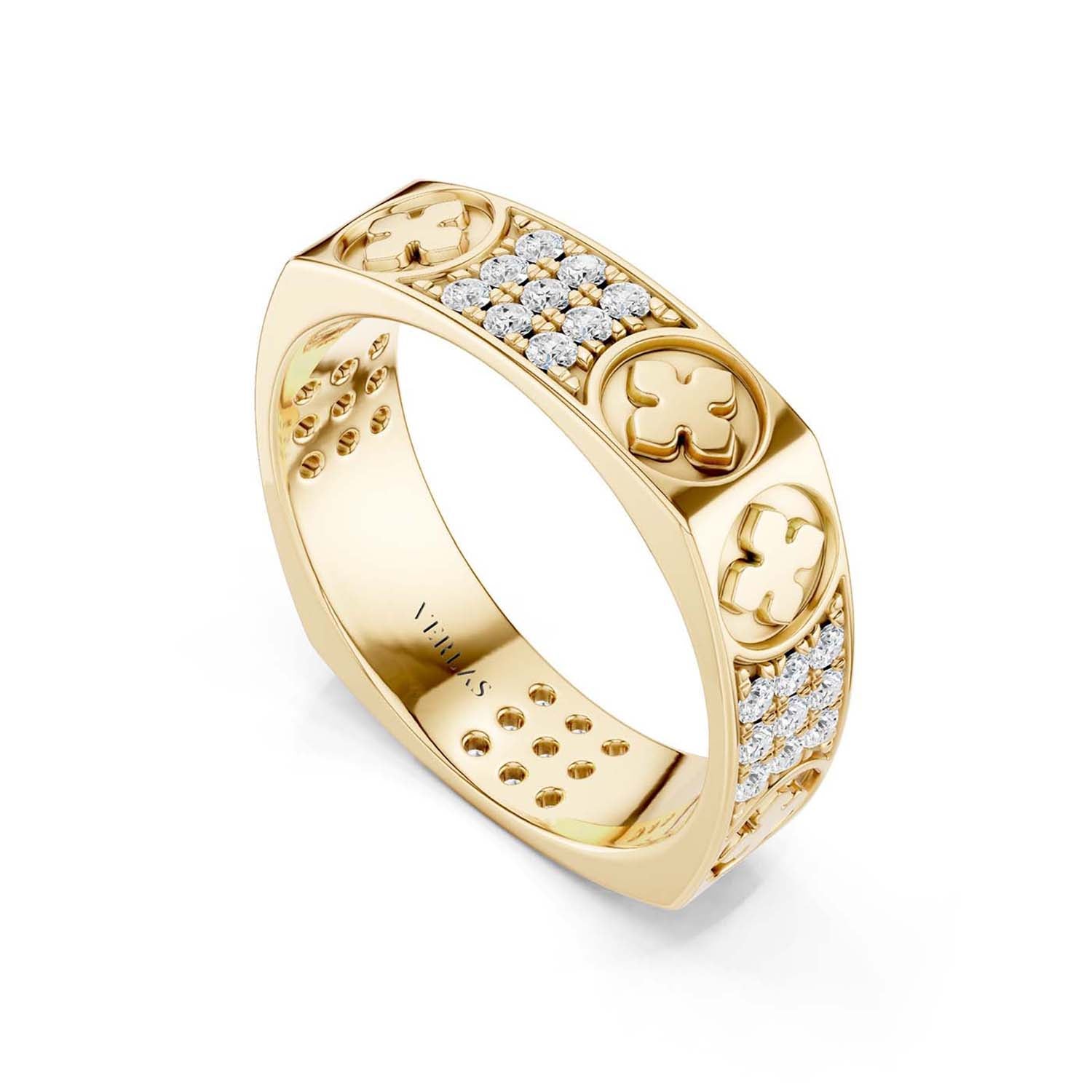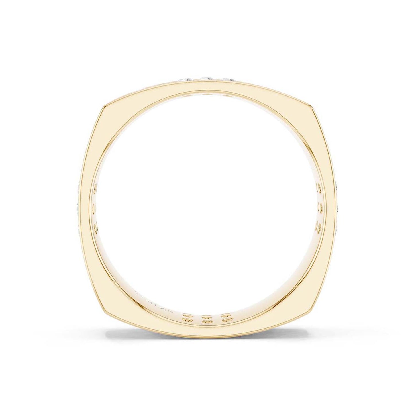 This La Fleur 5mm 4-Diamond Rows Square Band consists of four sets of tiny brilliant-cut diamonds artfully nestled between delicate floral motifs. Its square shape sets it apart, providing a modern twist to a classic concept. A stunning masterpiece unconstrained by gender,, it makes for a perfect choice for those looking for unique diamond wedding rings.