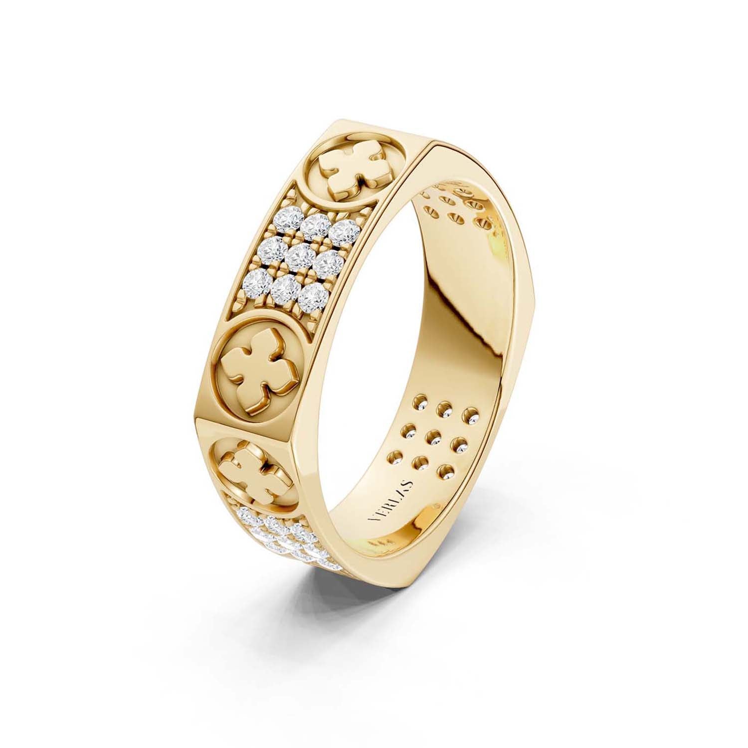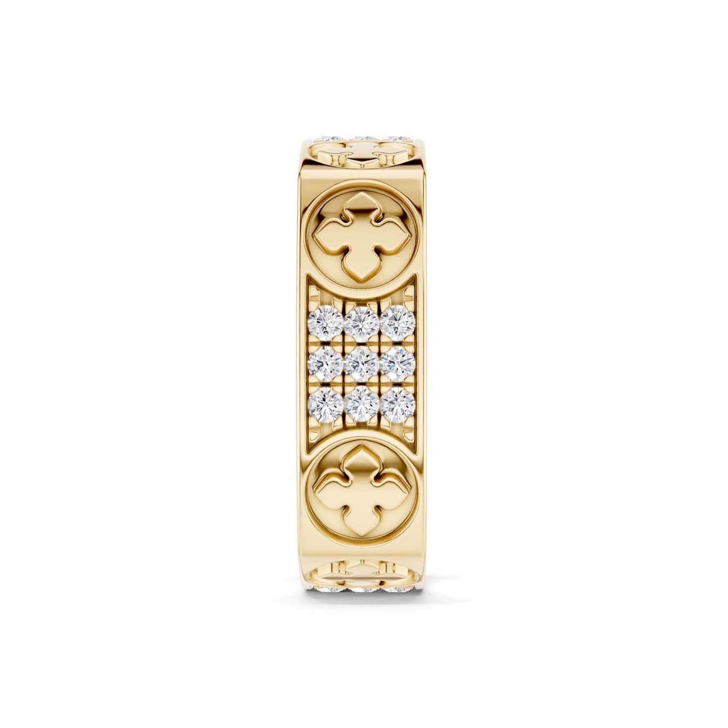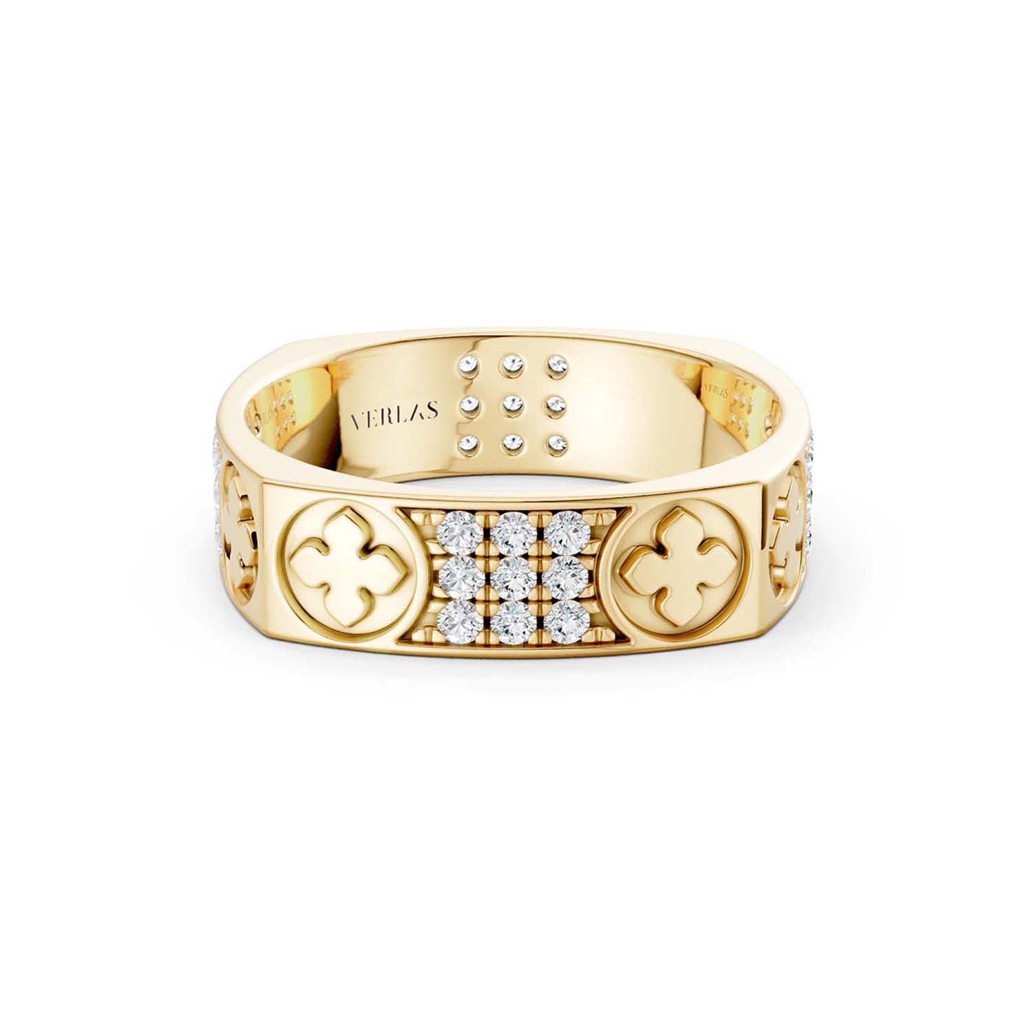 This La Fleur 5mm 4-Diamond Rows Square Band consists of four sets of tiny brilliant-cut diamonds artfully nestled between delicate floral motifs. Its square shape sets it apart, providing a modern twist to a classic concept. A stunning masterpiece unconstrained by gende. . . Read More