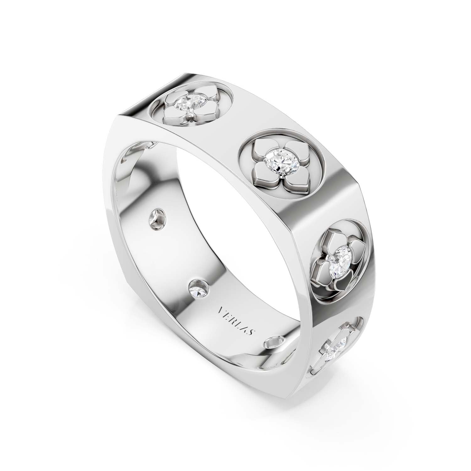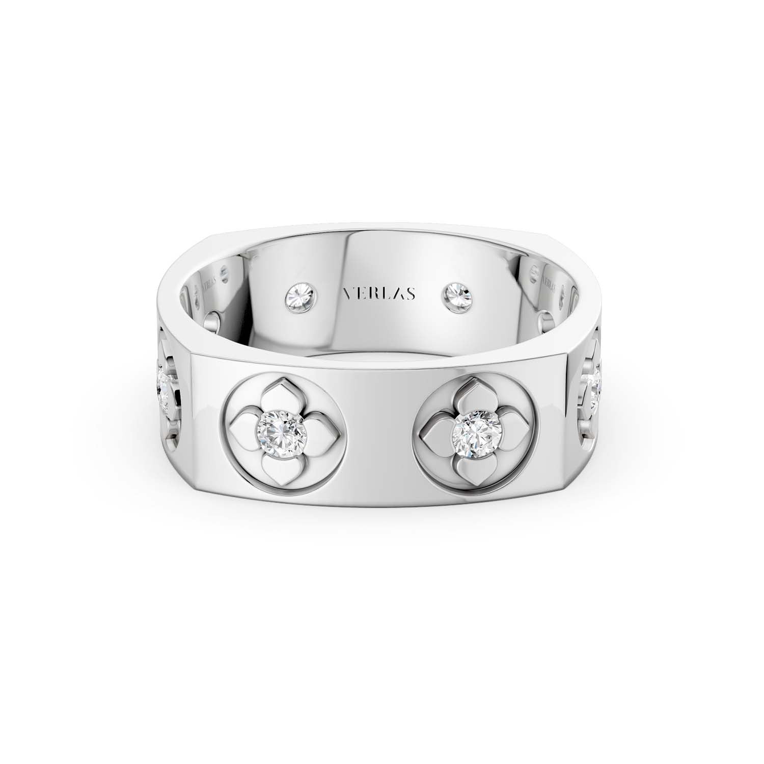 Platinum is an exceptionally durable, bright white, hypoallergenic metal that’s 30 times rarer than gold. At 95% purity, Verlas platinum is the ideal canvas to make diamonds and intricate engravings pop to the fullest.