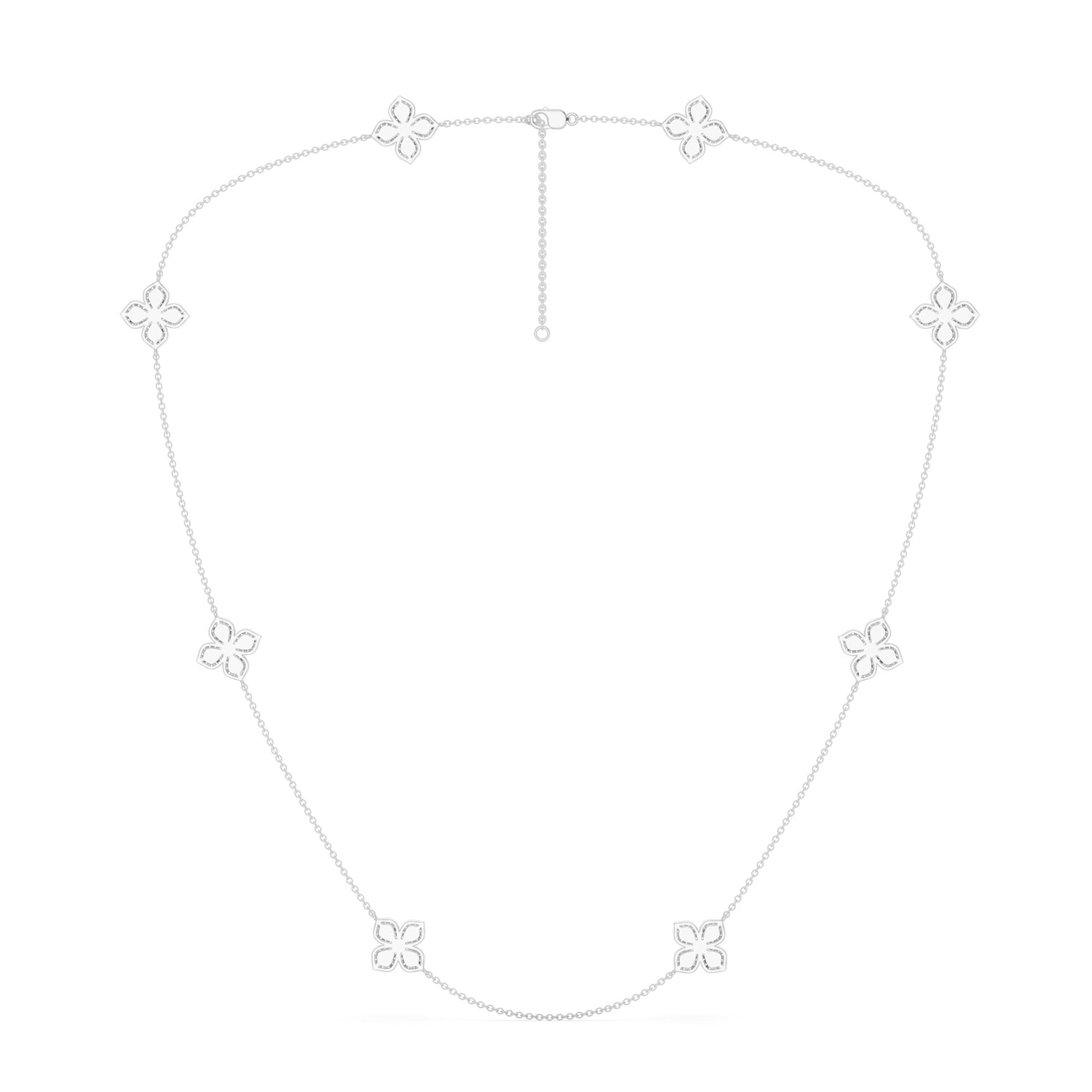 This La Fleur Diamond Contour Stationed Necklace showcases captivating floral motifs, meticulously crafted and accented by a delicate edge of shimmering diamonds. Each petal of the floral design is brought to life by these brilliant diamonds. Whether you're attending a f. . . Read More