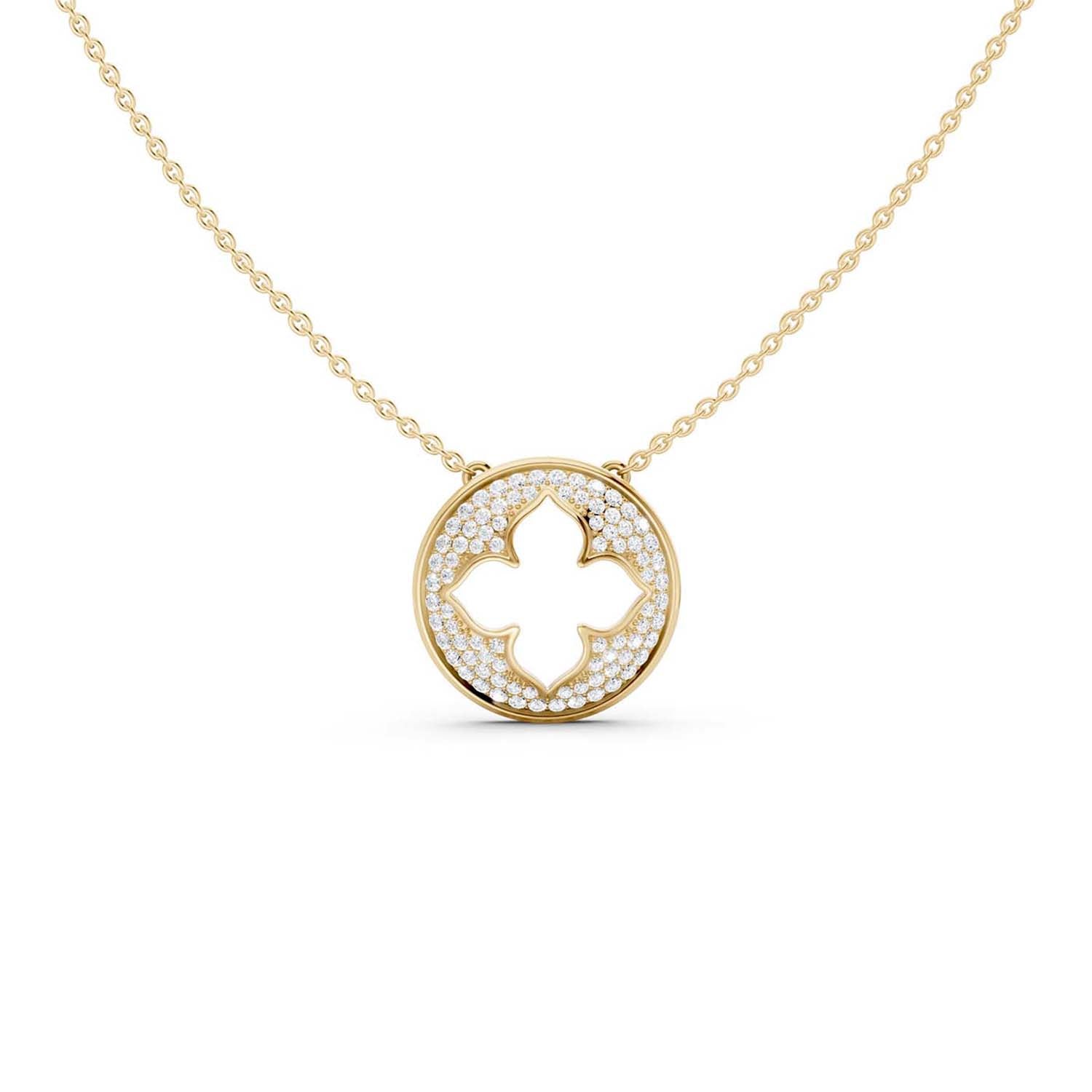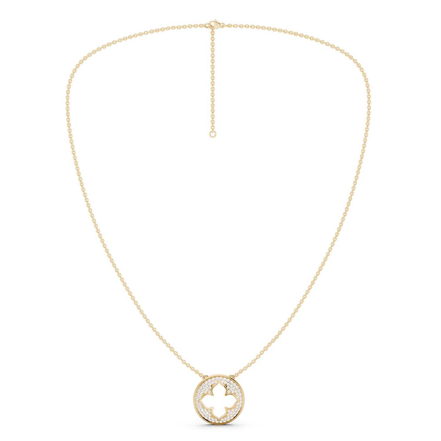 This La Fleur Diamond Groove Necklace features a circular pendant, adorned with a delicate floral silhouette that exudes grace and sophistication. What truly sets this diamond pendant necklace apart is the dazzling array of diamond accents that encircle the pendant's circumference. It's a statement design that not only celebrates your unique style but also your appreciation for the finer things in life.