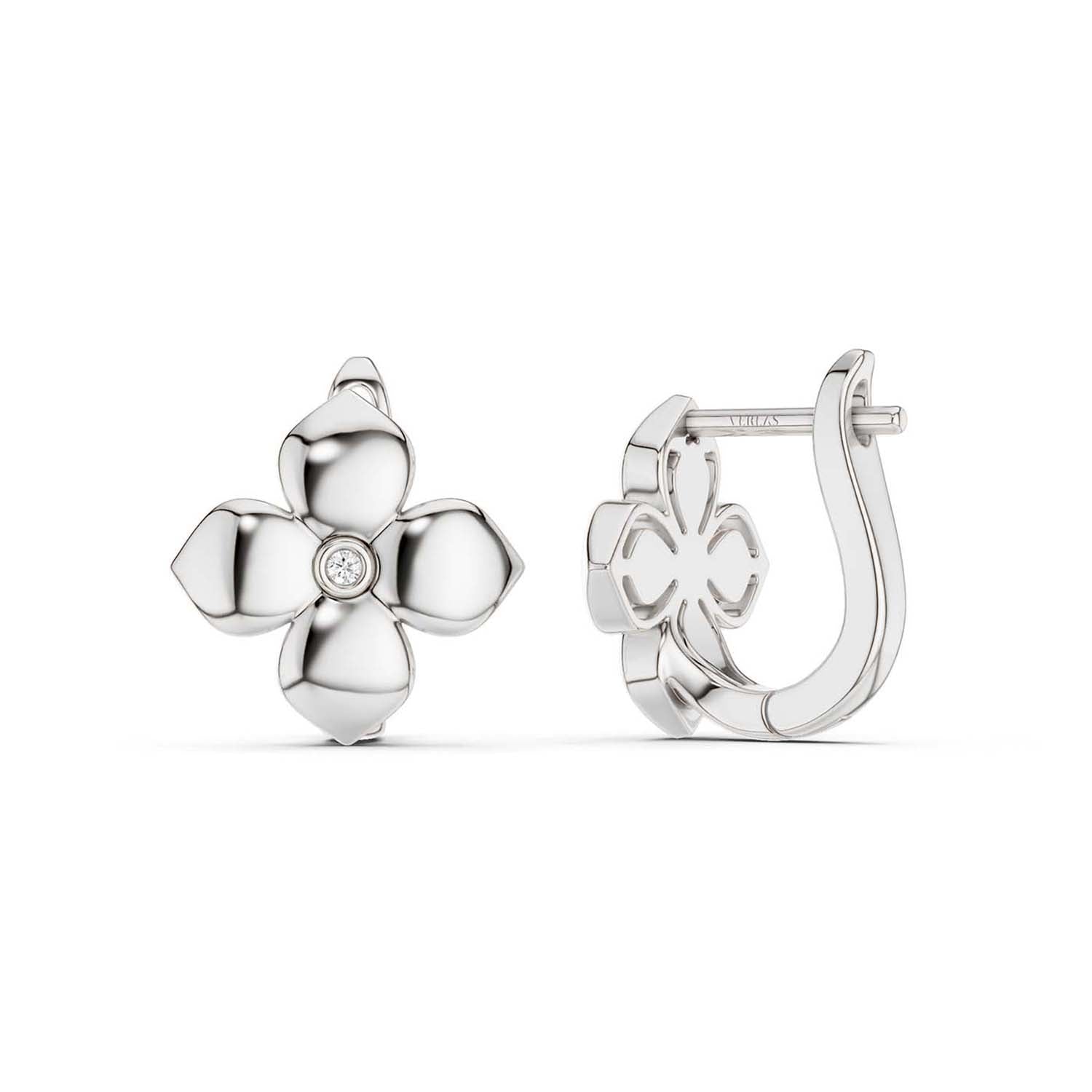 At the core of these La Fleur Diamond Huggie Hoops lies a radiant single bezel-set diamond surrounded by delicately crafted gold petals, reminiscent of a blooming flower in full bloom. These petals add a touch of nature-inspired charm to the design that effortlessly transitions from day to night. This makes the diamond-cut hoop earrings a must-have accessory for any fashion-forward individual.