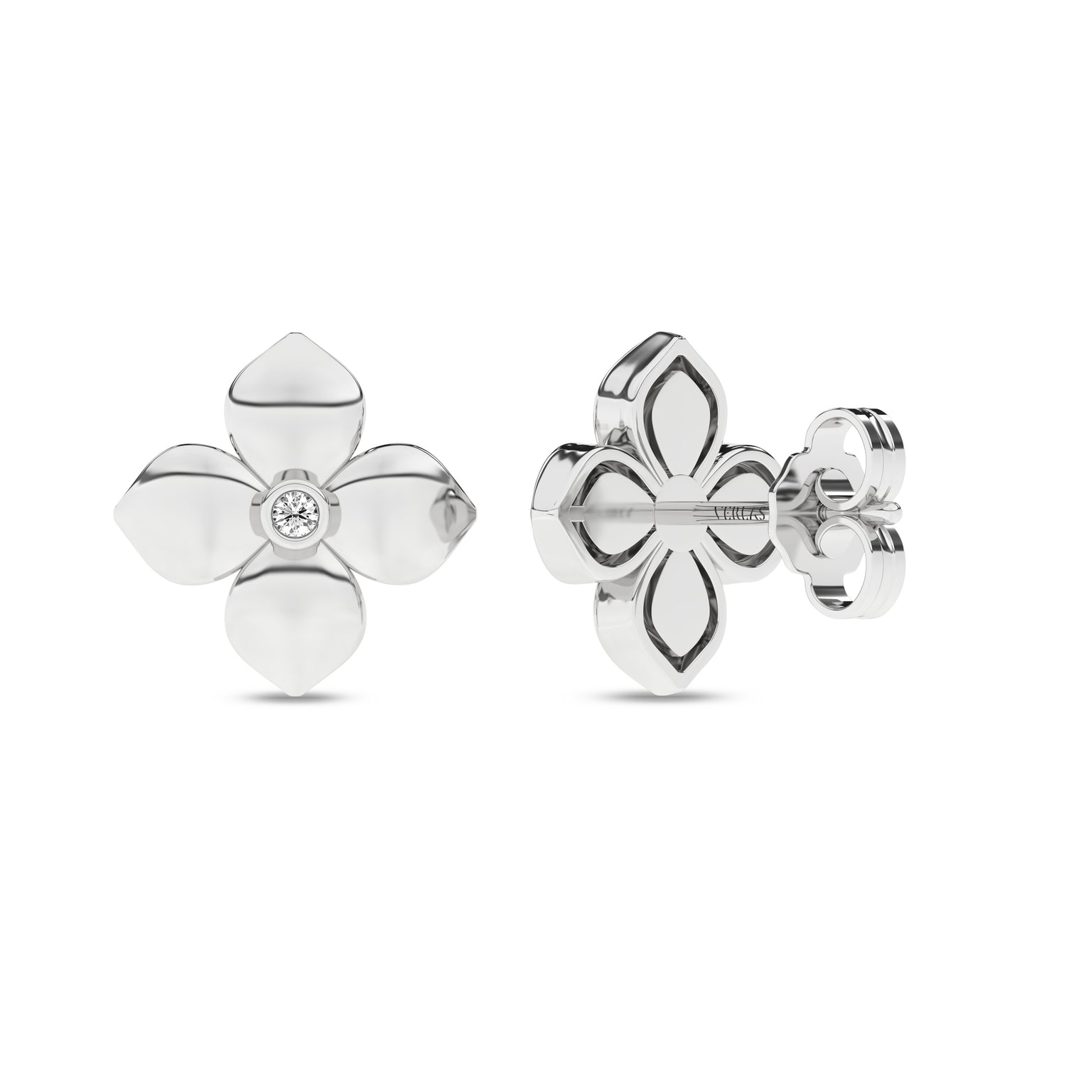 Elegant floral motif with a tiny diamond bezel set in the center, this pair of La Fleur Diamond Studs exudes radiance every step of the way. This diamond stud earrings design is inspired by the beauty and elegance of flowers with the center diamonds adding a touch of shine to it. It is a perfect gift for someone special, or a treat for yourself.