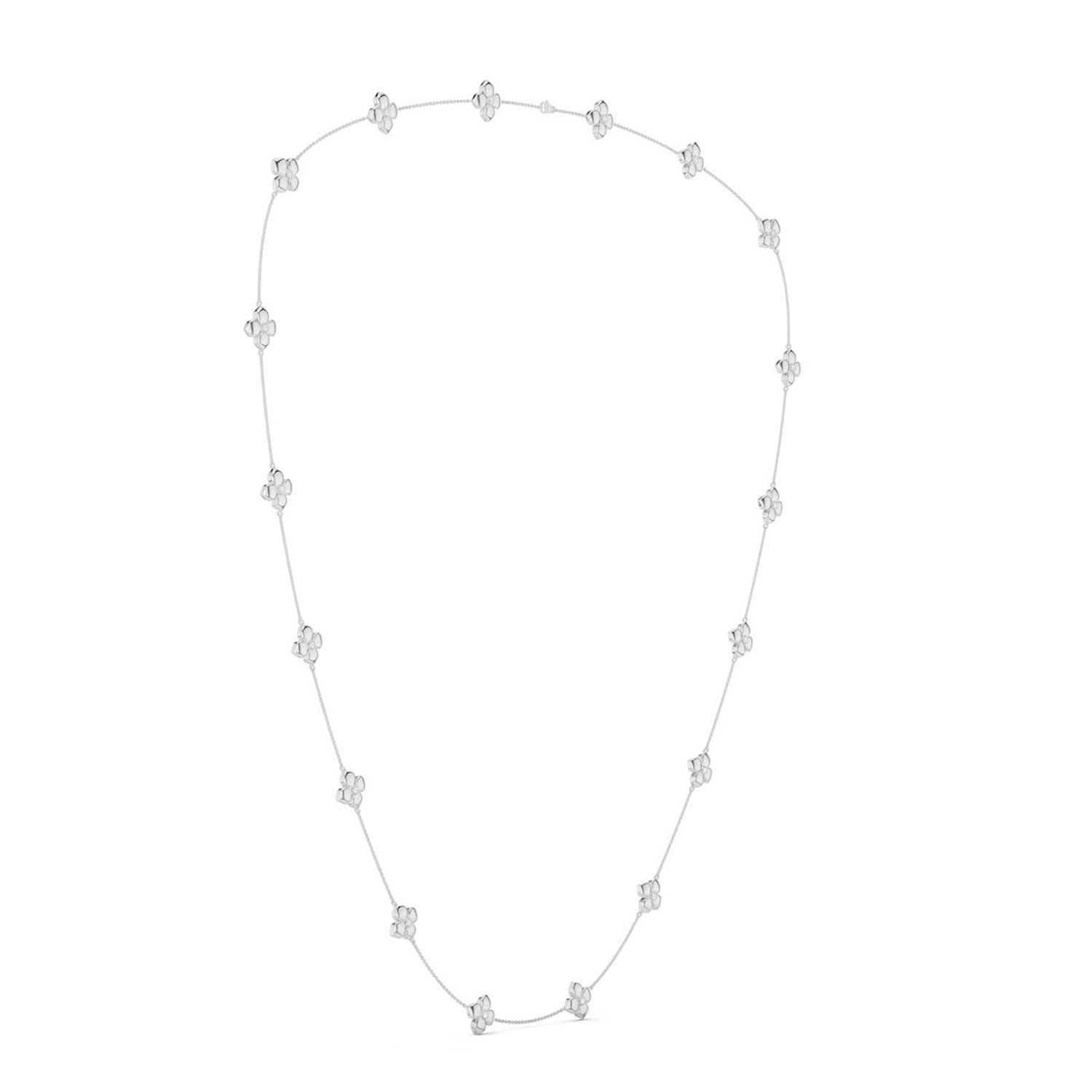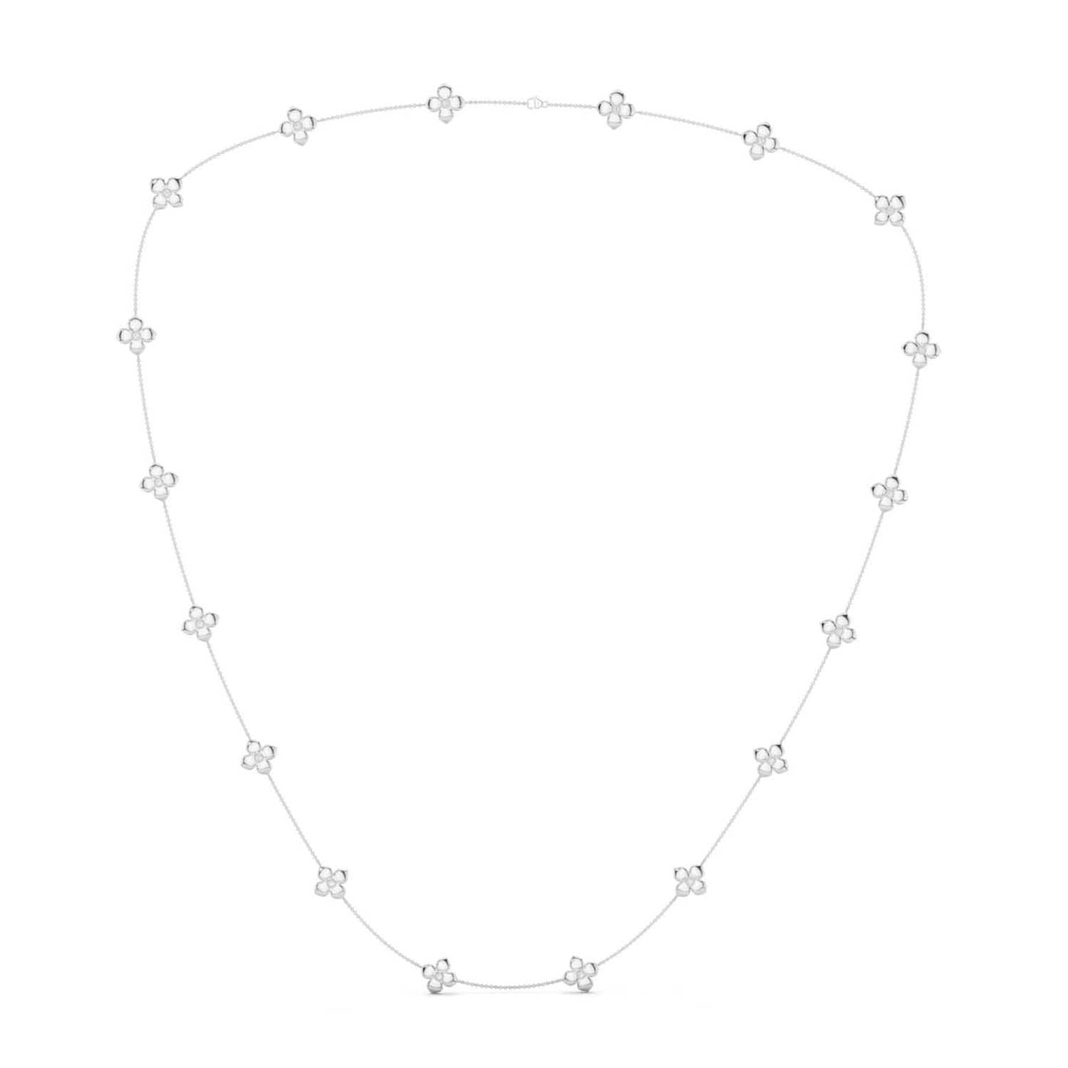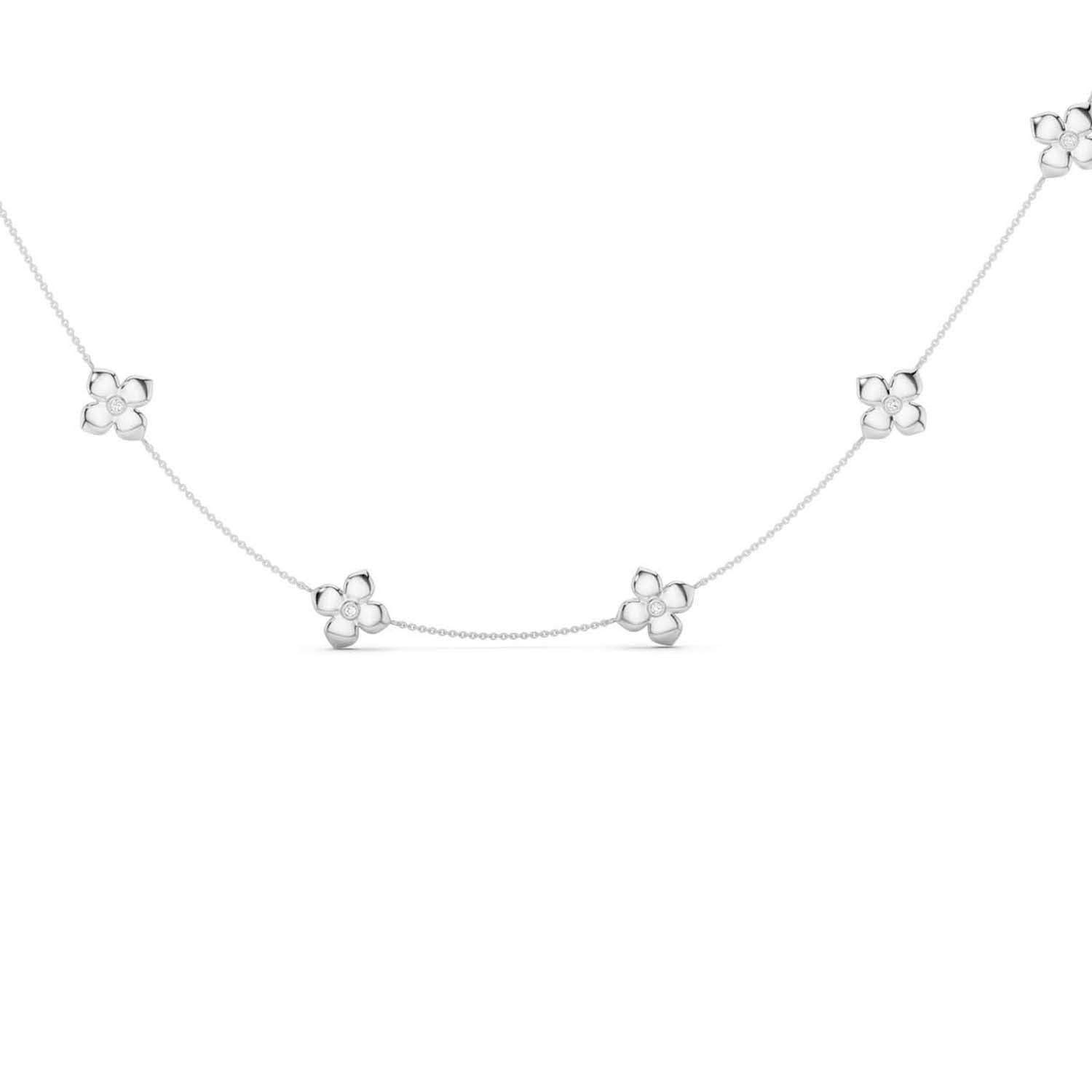 This stunning La Fleur Forever Diamond Stationed Necklace is a long necklace embellished with a row of delicate florals. These floral gold petals create a captivating contrast with the bezel-set diamond in the center, resembling the flower in full bloom. This gold diamo. . . Read More