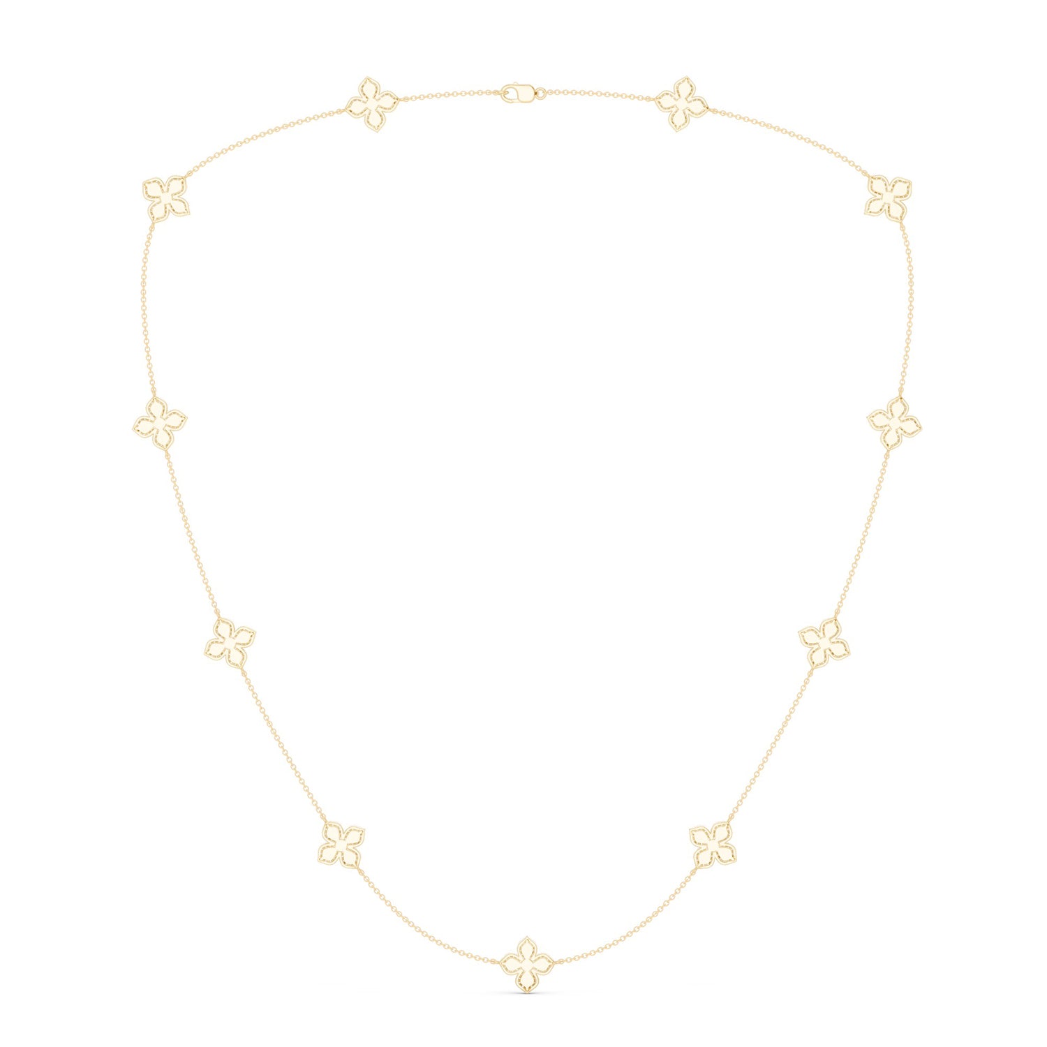 Gold is an elegant, classic metal that is resistant to discoloration, and slightly shinier than platinum. To optimize quality and durability, we blend our gold with other metals in varying amounts expressed in karats (18K is richer in gold than 14K). You can choose between elegant, vibrant, and delicate 18K or the ever-popular and always lasting 14K.