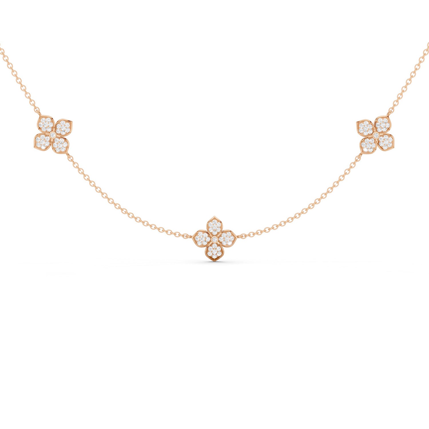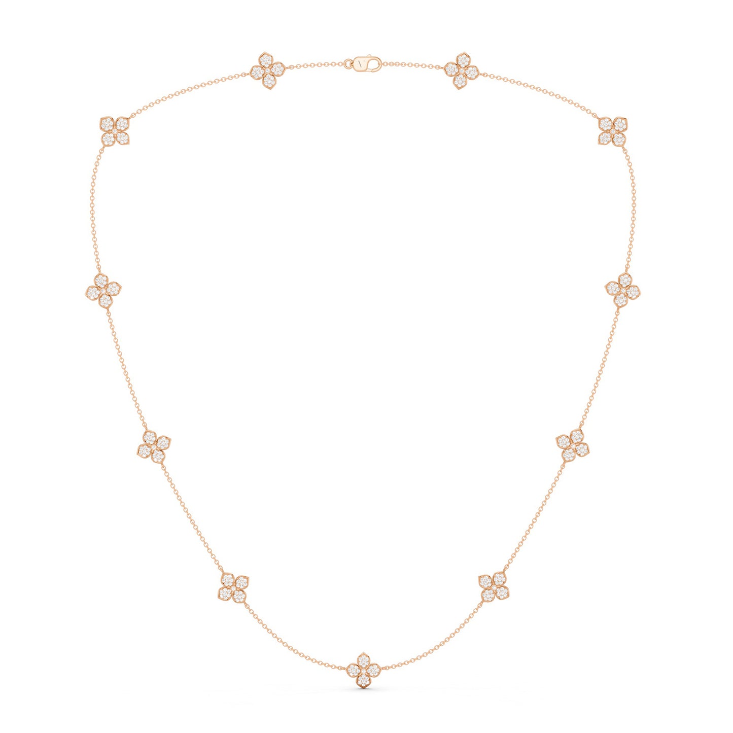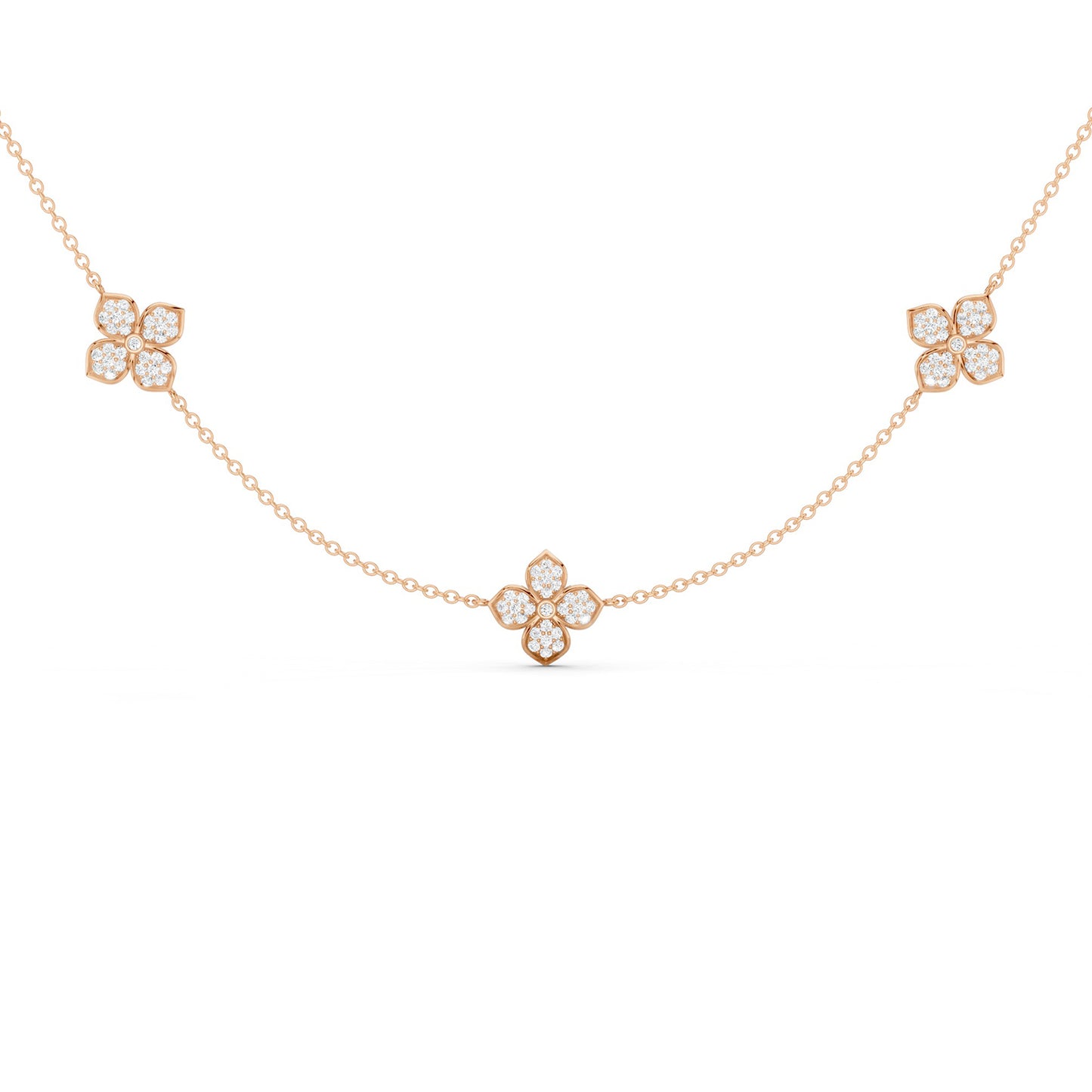 Elevating the allure of this La Fleur Petite Diamond Radiant Stationed Necklace are the dazzling diamond accents that grace its entire length. These brilliant diamonds are strategically stationed along the chain mirroring the elegance of the floral motifs. The petite yet impactful diamond necklace design is always ready to enhance your outfit with its timeless charm.