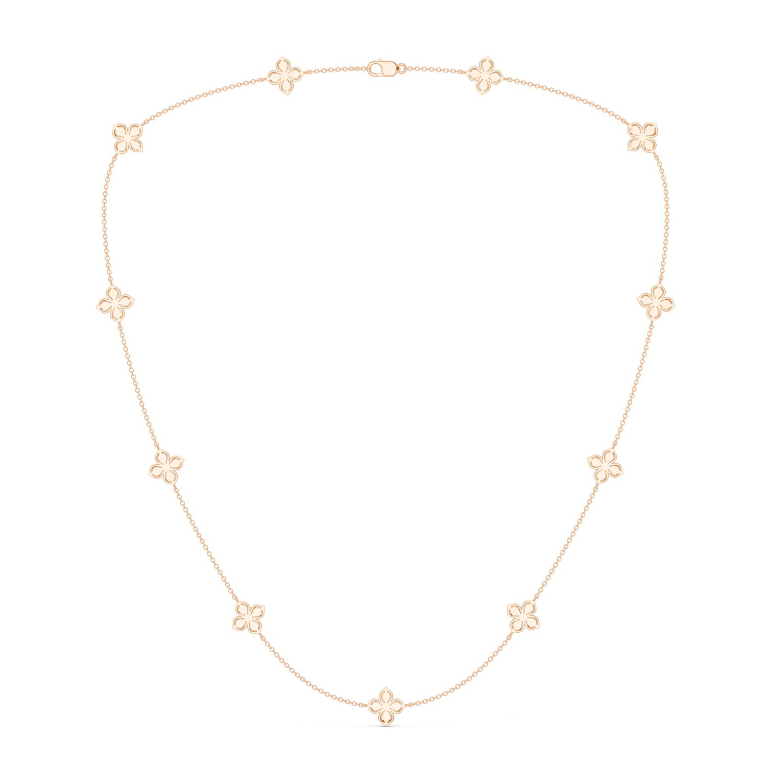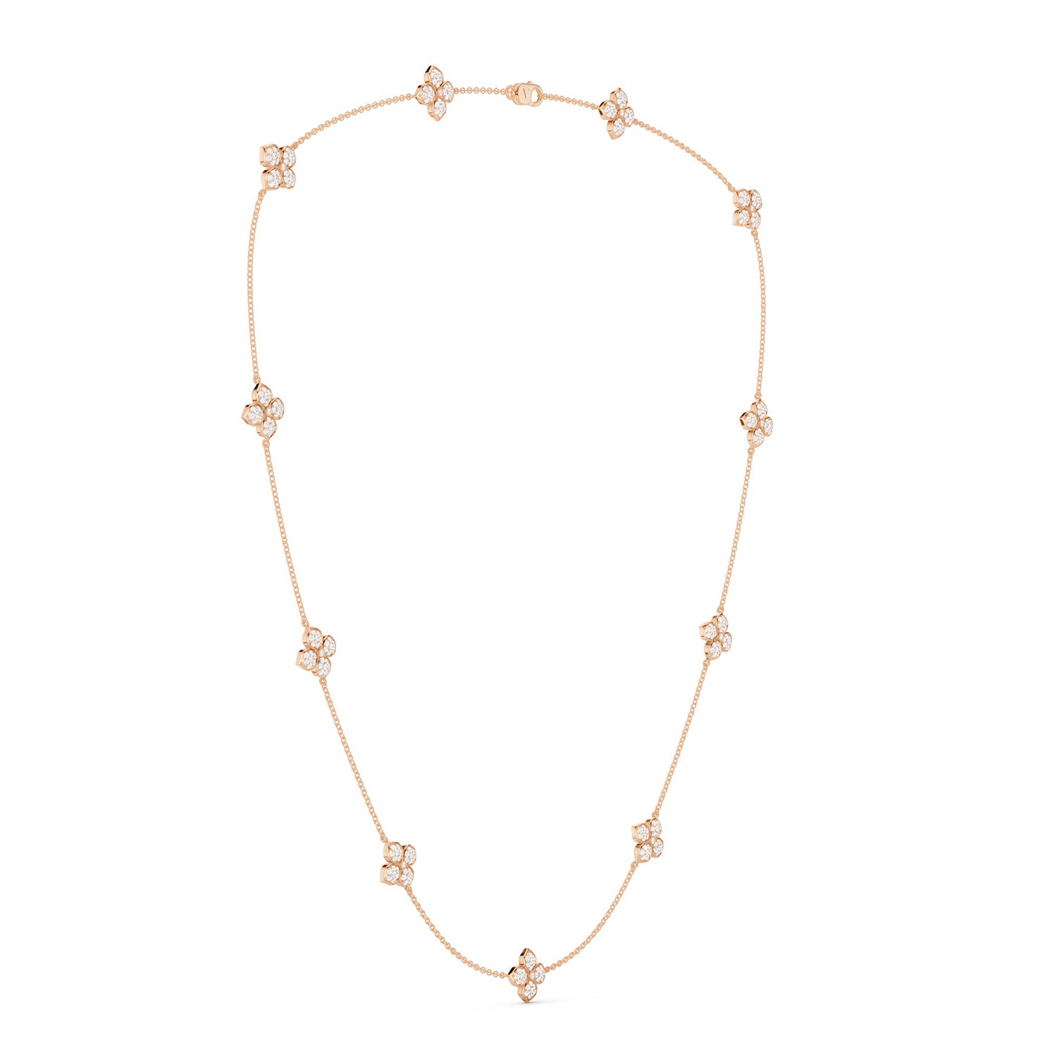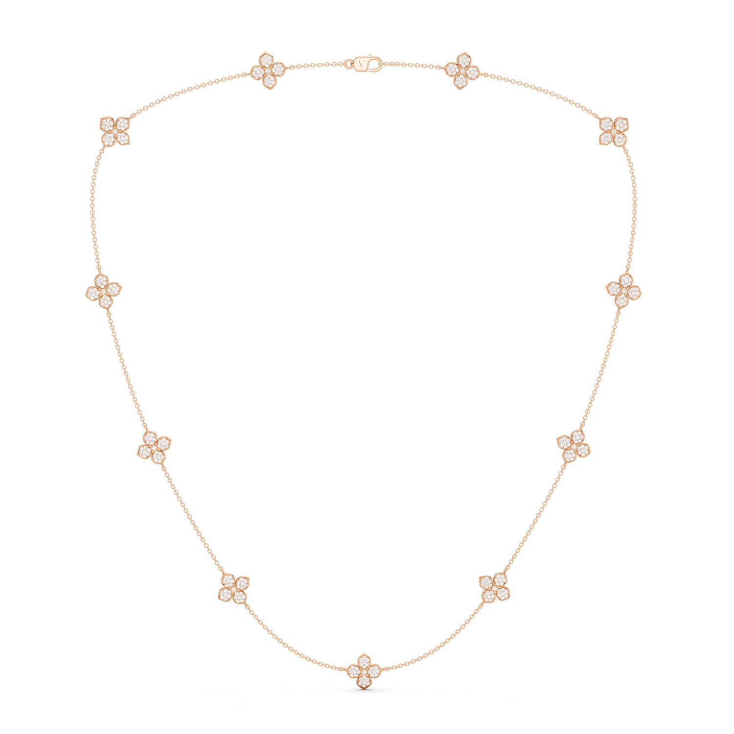 Elevating the allure of this La Fleur Petite Diamond Radiant Stationed Necklace are the dazzling diamond accents that grace its entire length. These brilliant diamonds are strategically stationed along the chain mirroring the elegance of the floral motifs. The petite yet impactful diamond necklace design is always ready to enhance your outfit with its timeless charm.